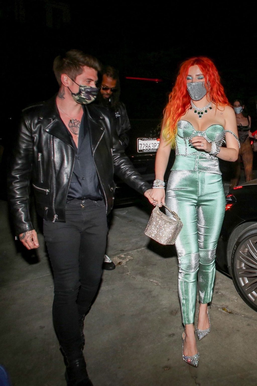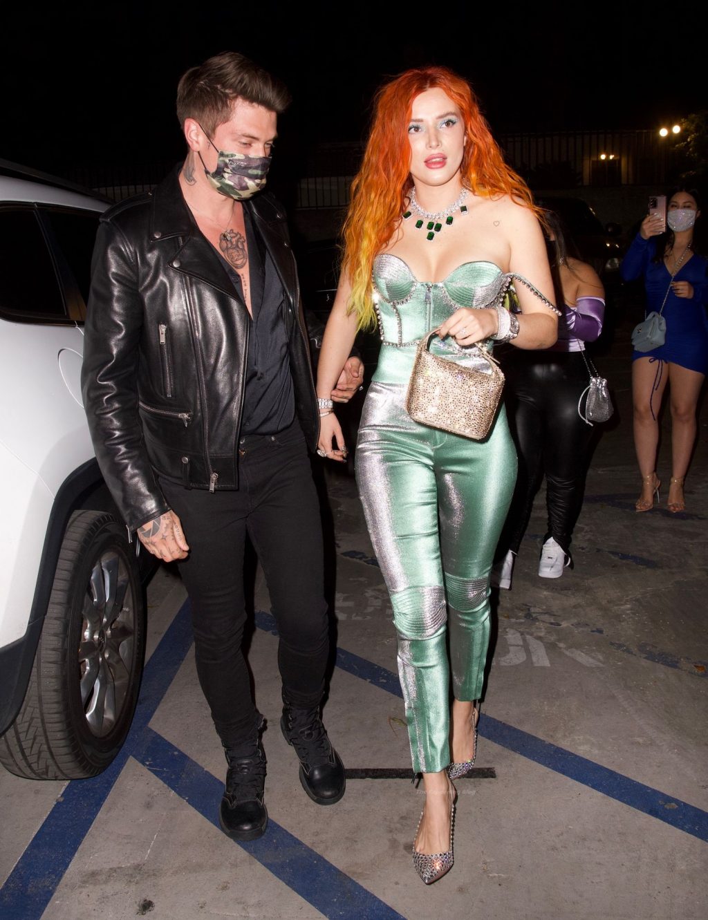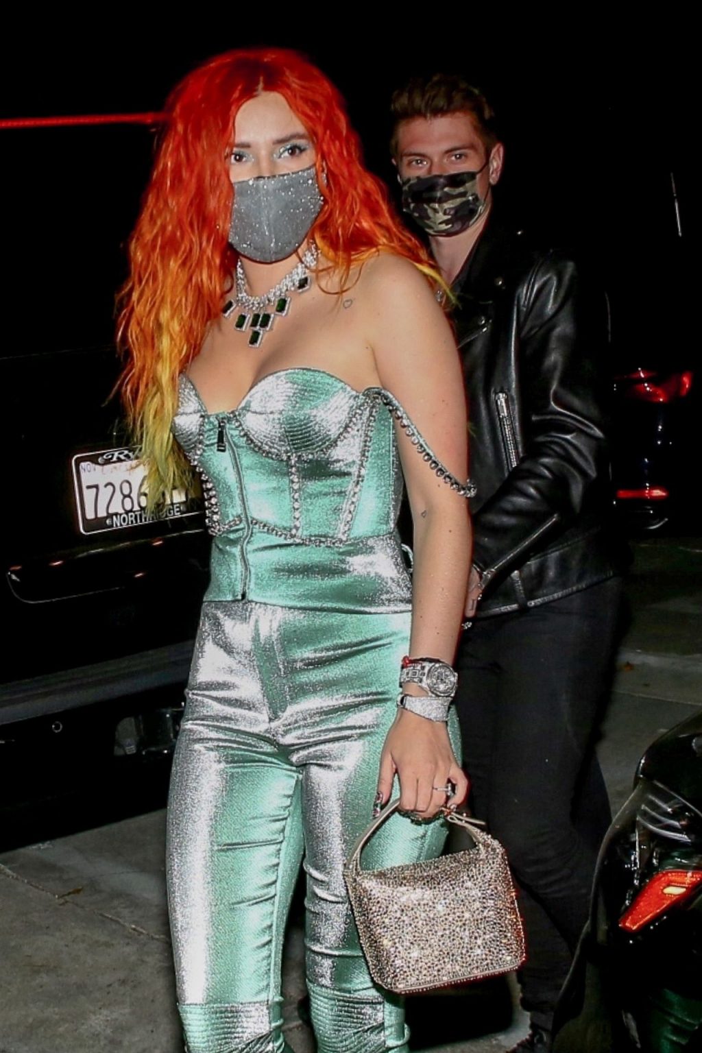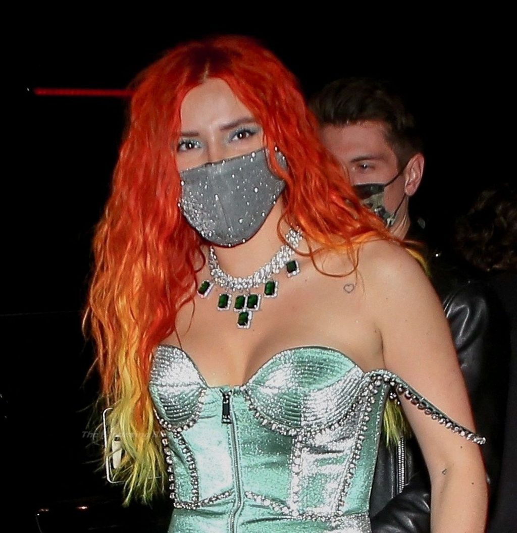 A estrela do Fappening Bella Thorne exibe seu anel de noivado com diamante enquanto celebra seu novo videoclipe com o noivo Benjamin Mascolo em Hollywood, 03/04/2021.