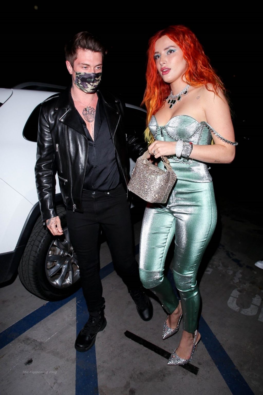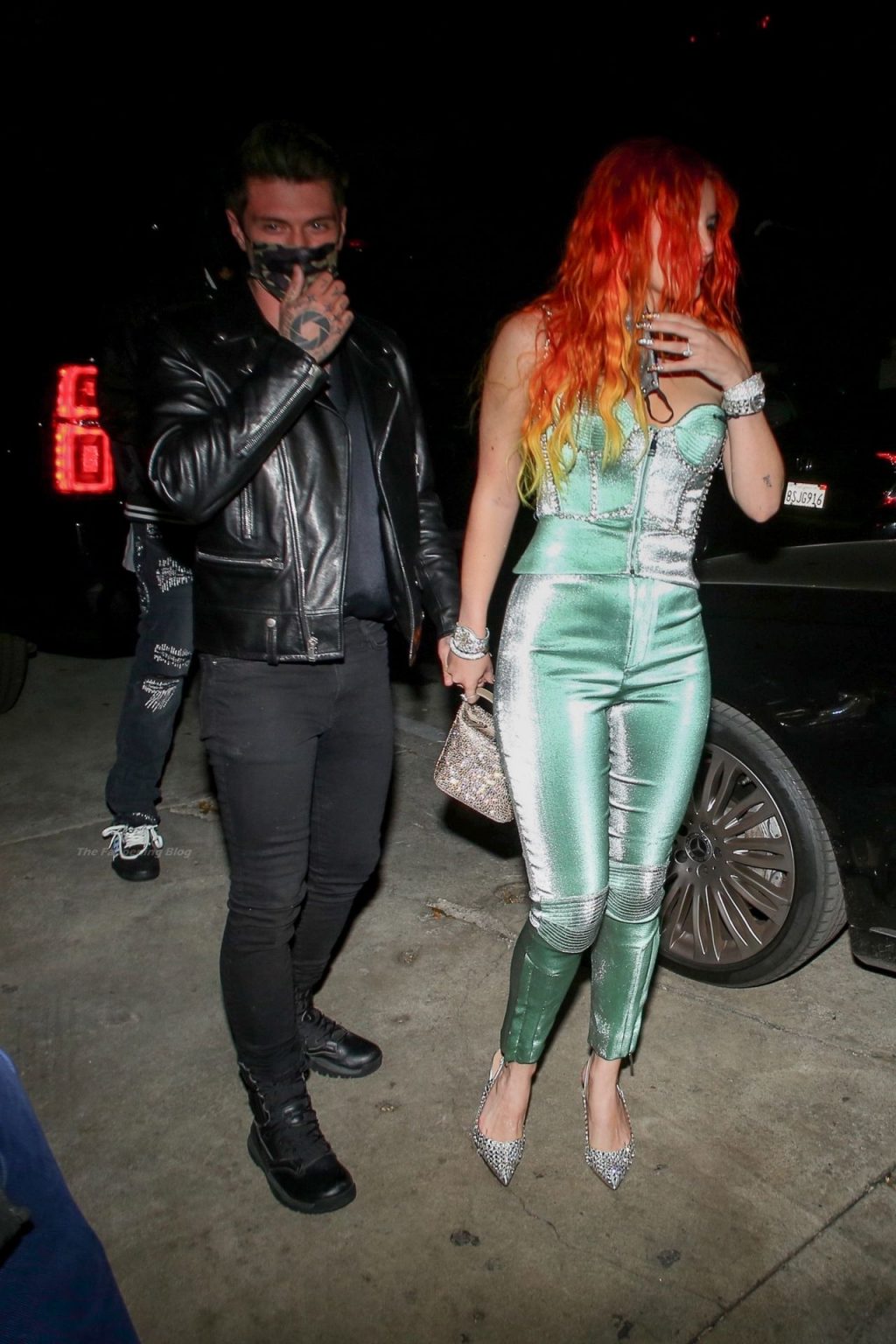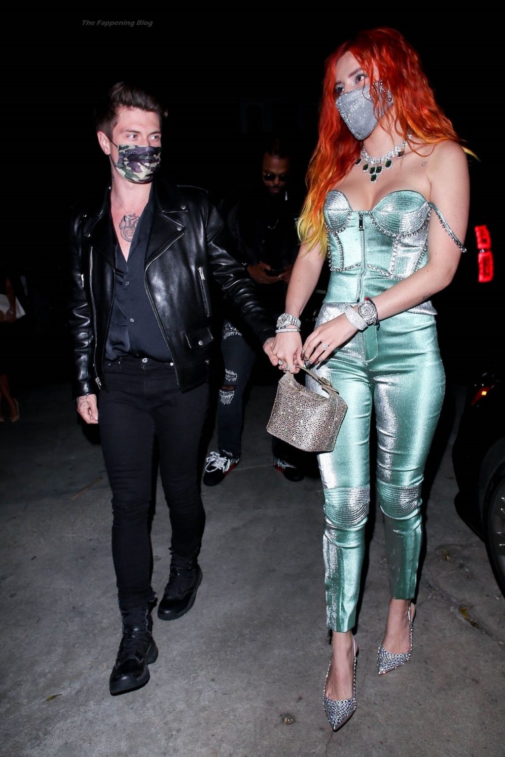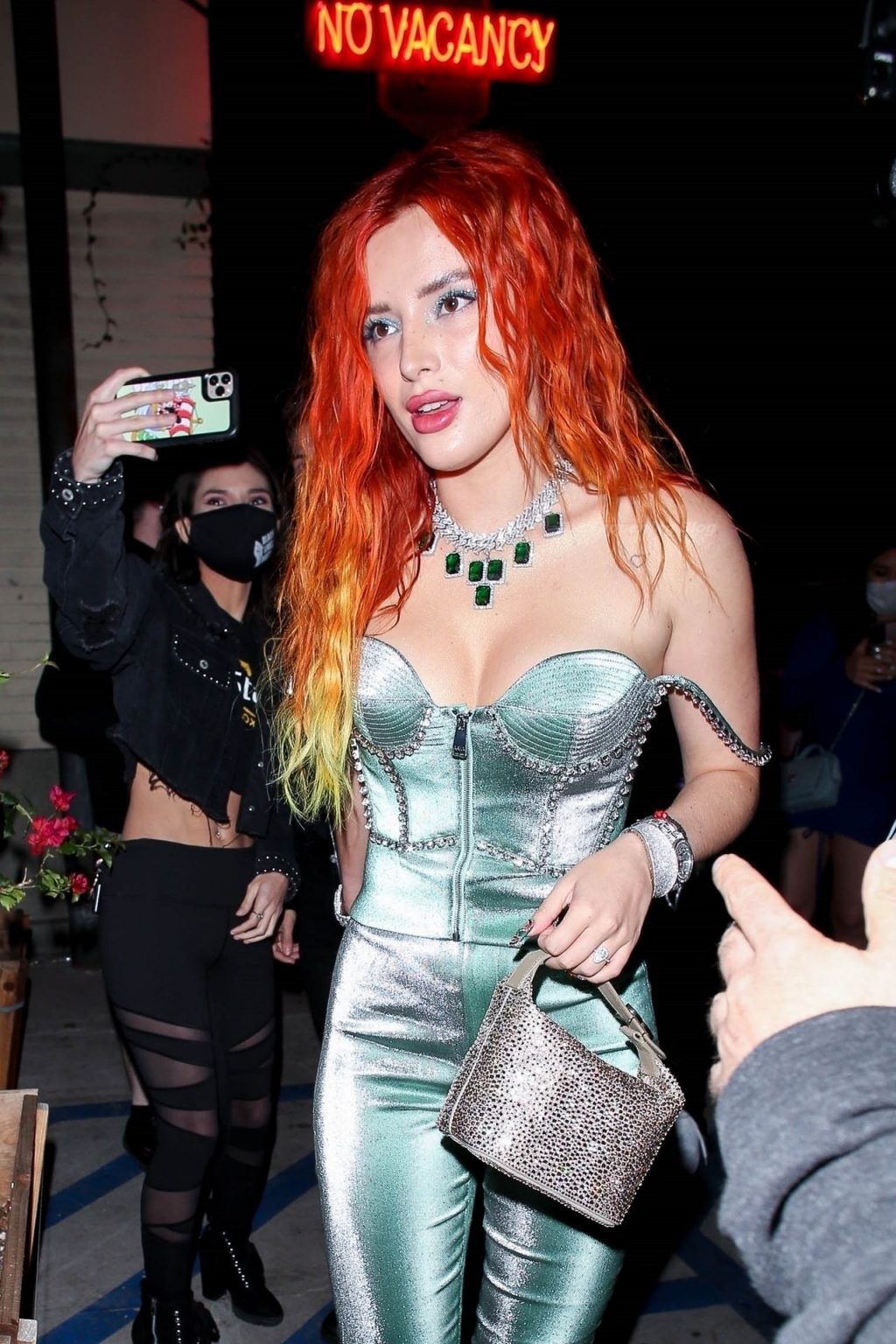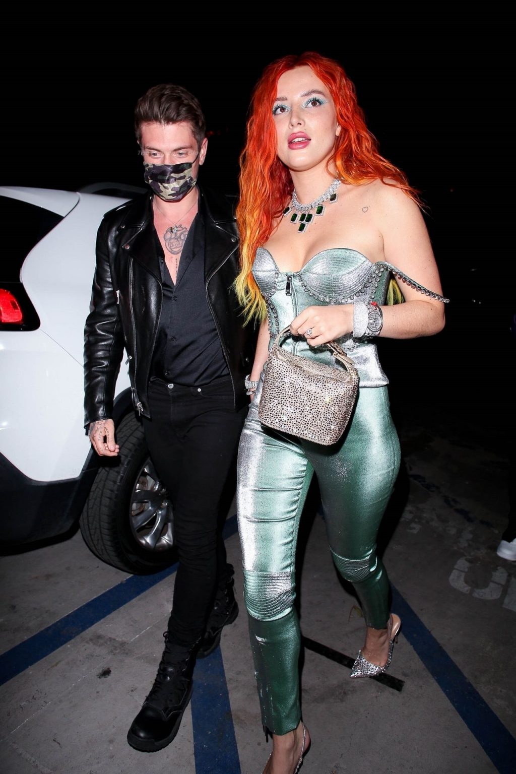 A estrela do Fappening Bella Thorne exibe seu anel de noivado com diamante enquanto celebra seu novo videoclipe com o noivo Benjamin Mascolo em Hollywood, 03/04/2021.