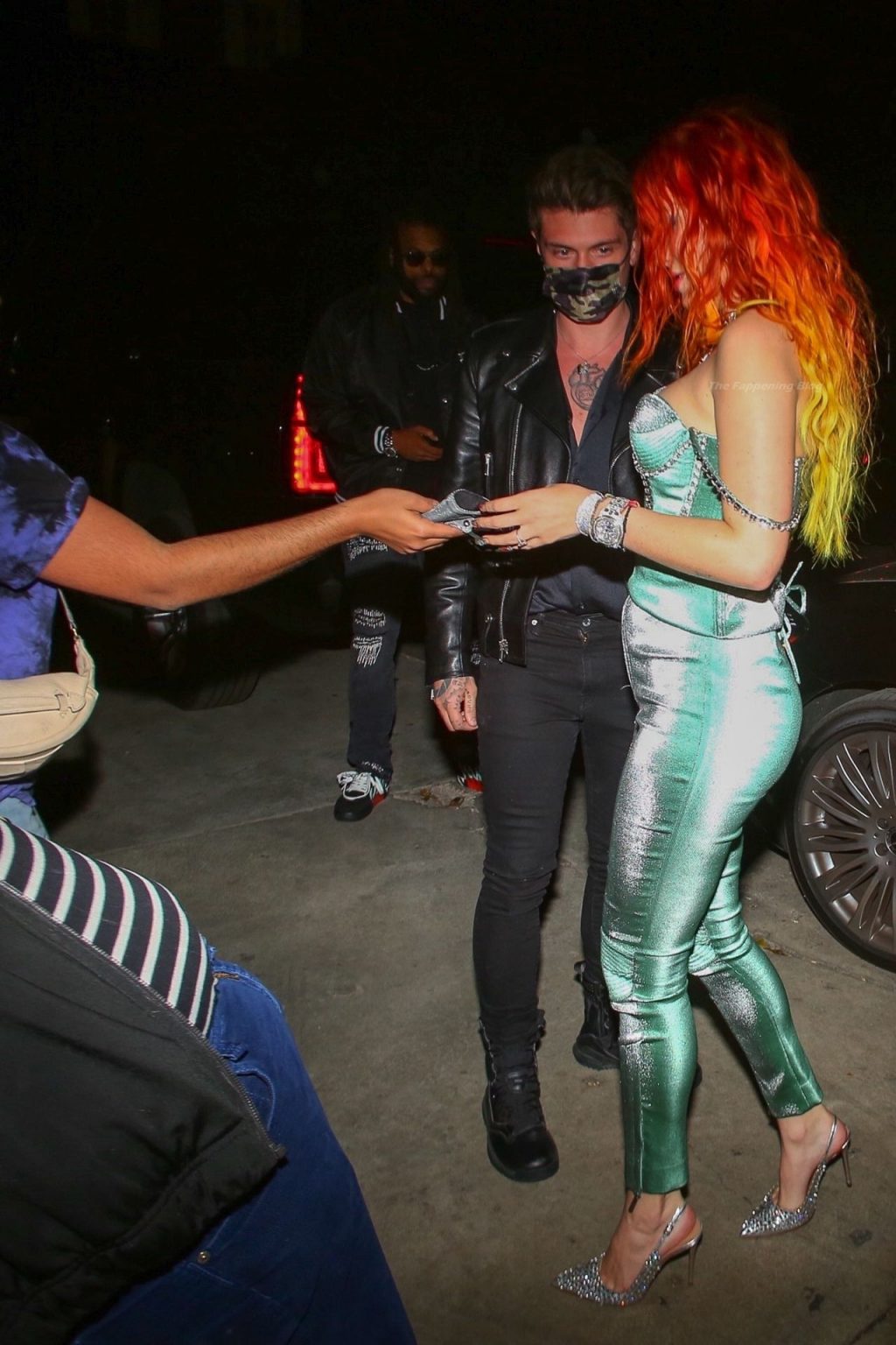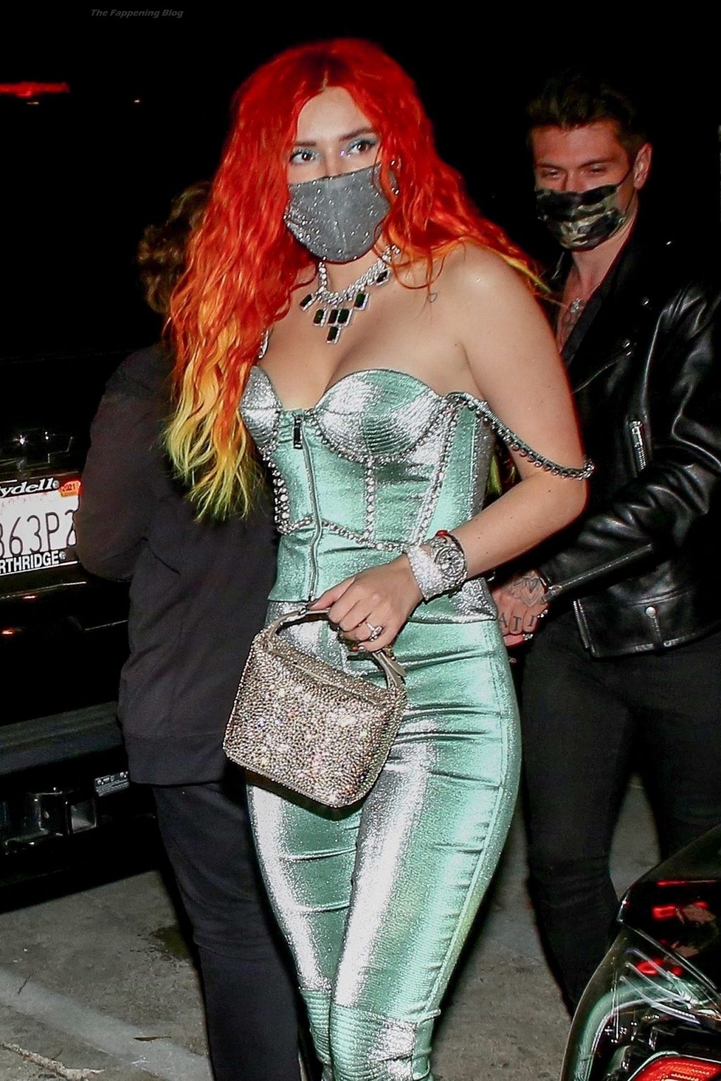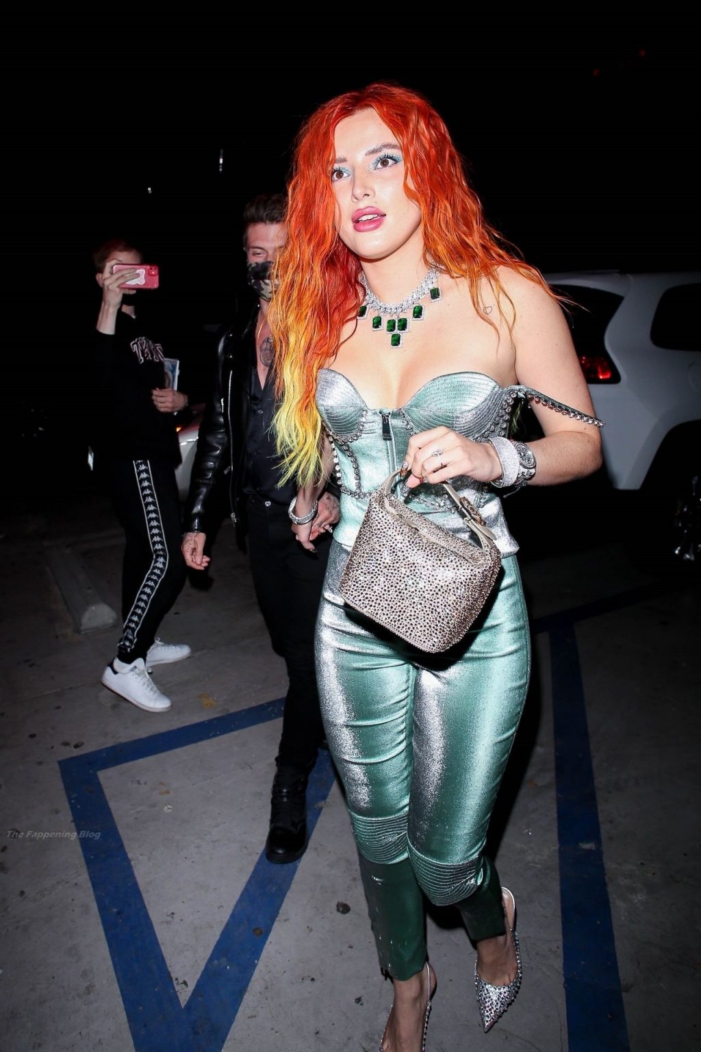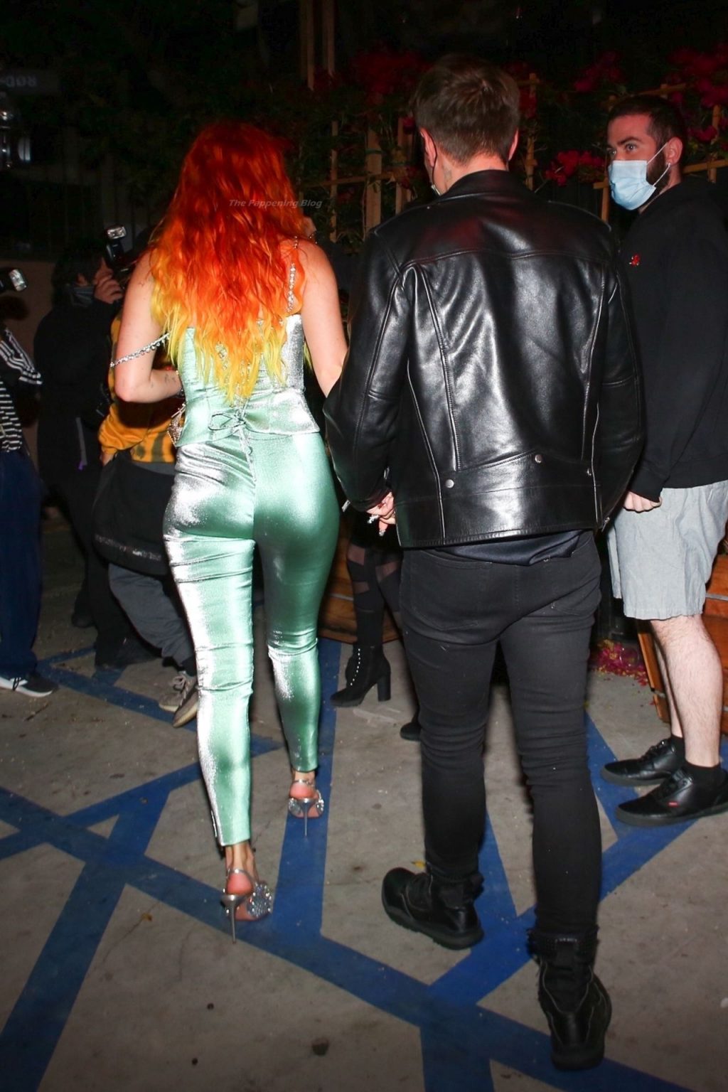A estrela do Fappening Bella Thorne exibe seu anel de noivado com diamante enquanto celebra seu novo videoclipe com o noivo Benjamin Mascolo em Hollywood, 03/04/2021.