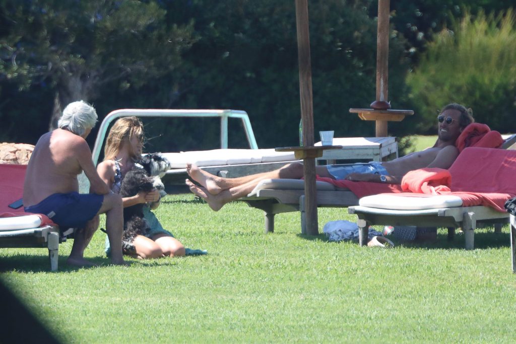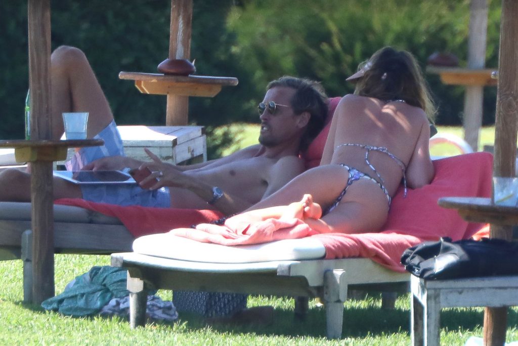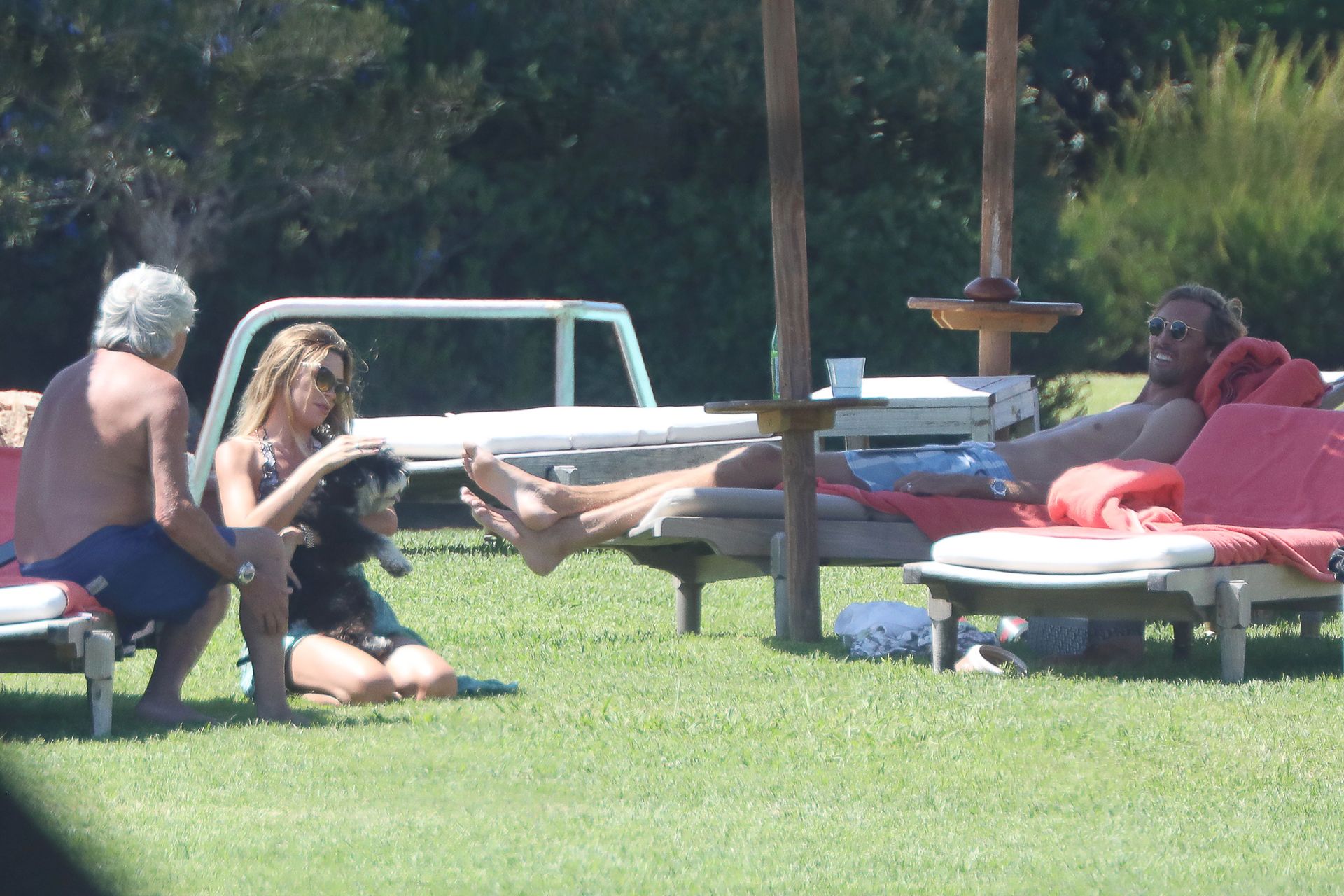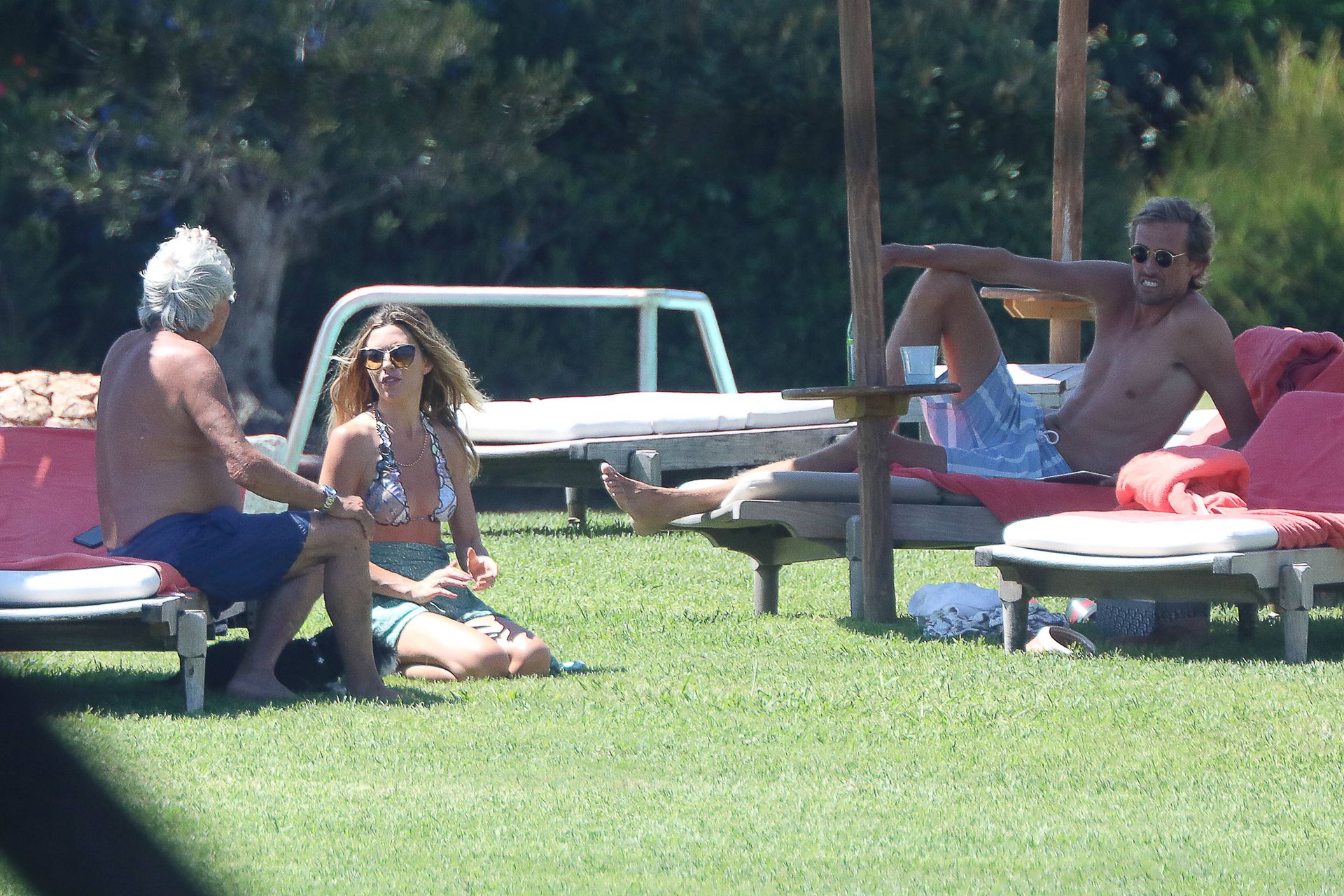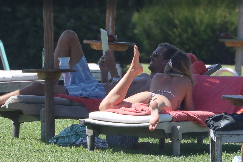 Abbey Clancy exibe seus abdominais definidos em um biquíni com babados enquanto relaxa nas férias com o marido Peter Crouch na Sardenha, 20/08/2020.