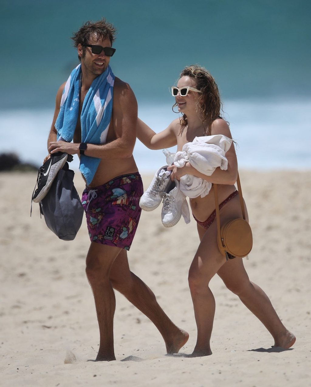 The Bachelor’s Abbie Chatfield exibe seus seios nus e bumbum de biquíni enquanto aproveita um dia na praia com Danny Clayton, 12/10/2020.