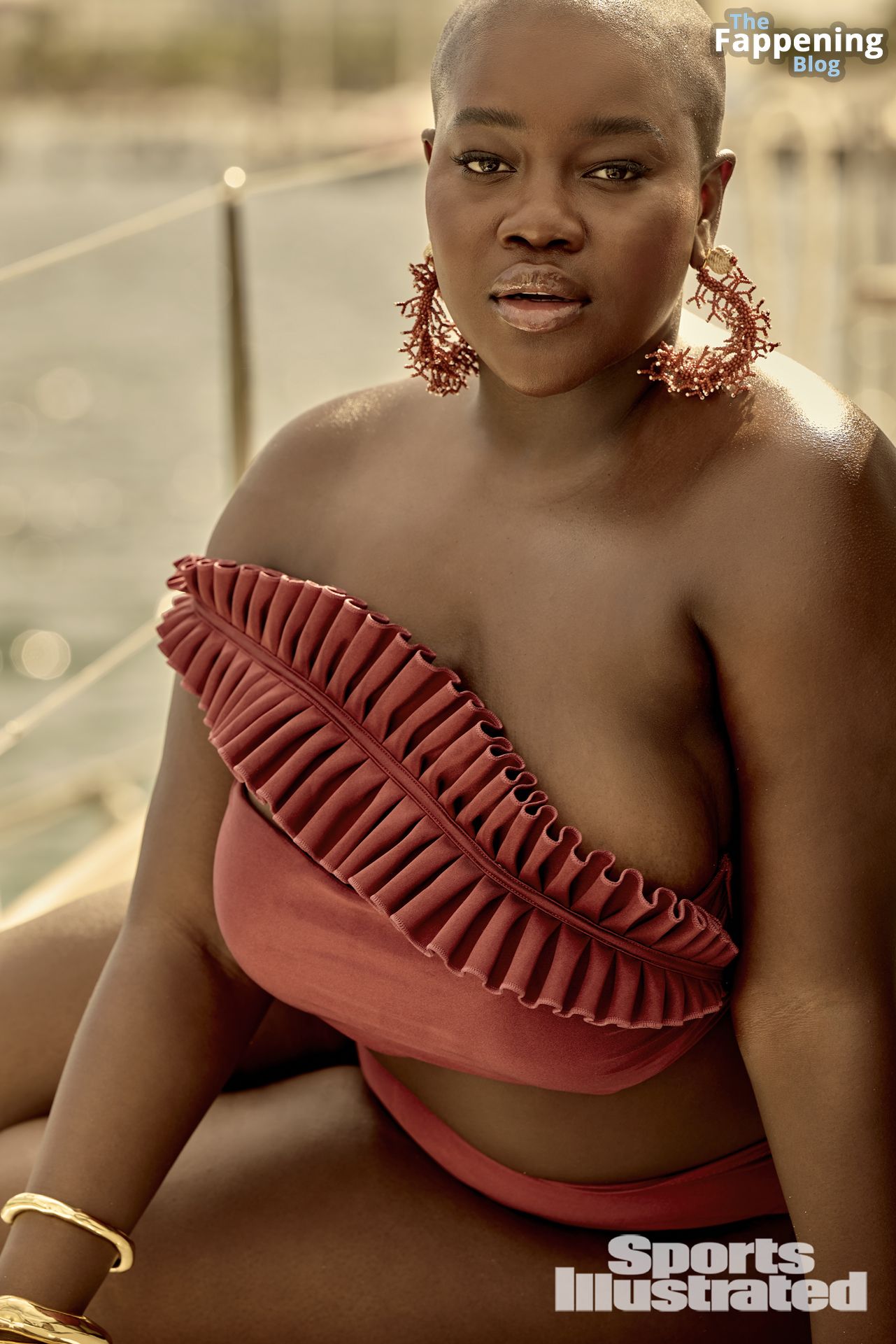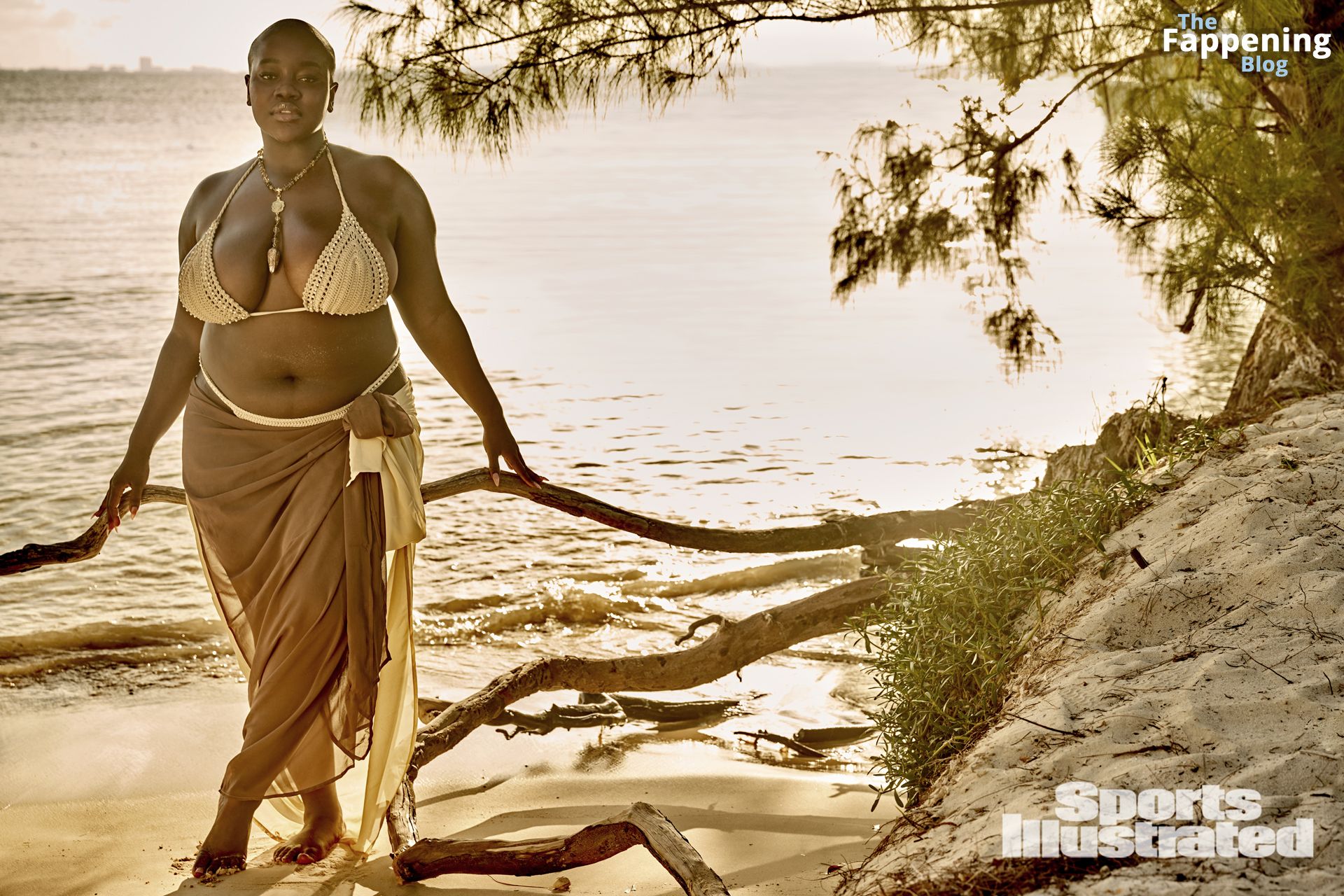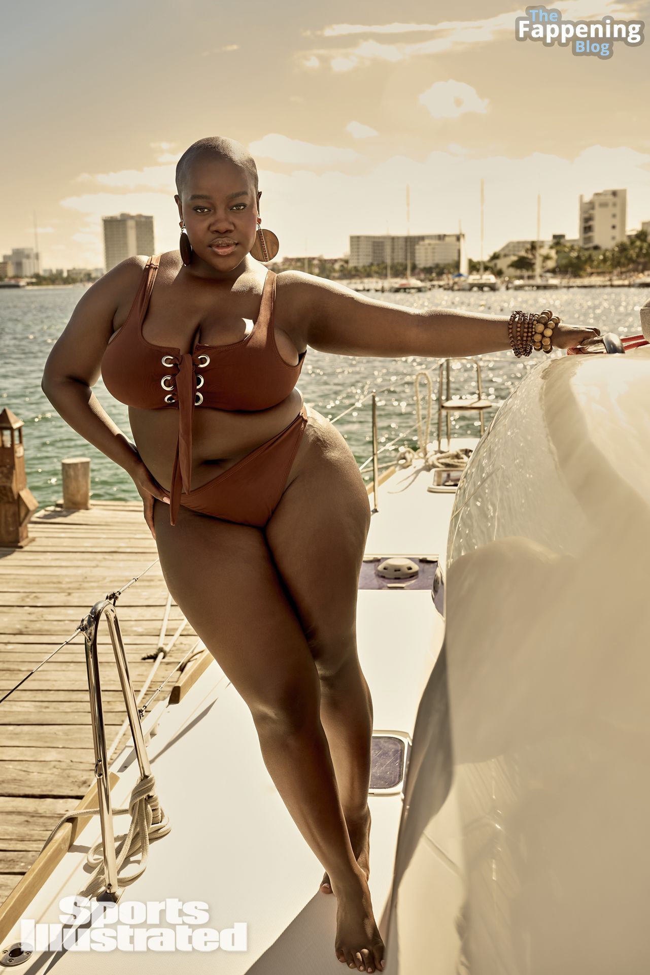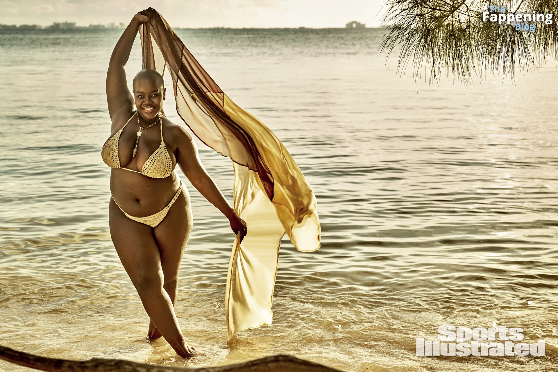 A modelo negra curvilínea Achieng Agutu foi fotografada por Yu Tsai no México para a edição de 2024 da SI Swimsuit.
