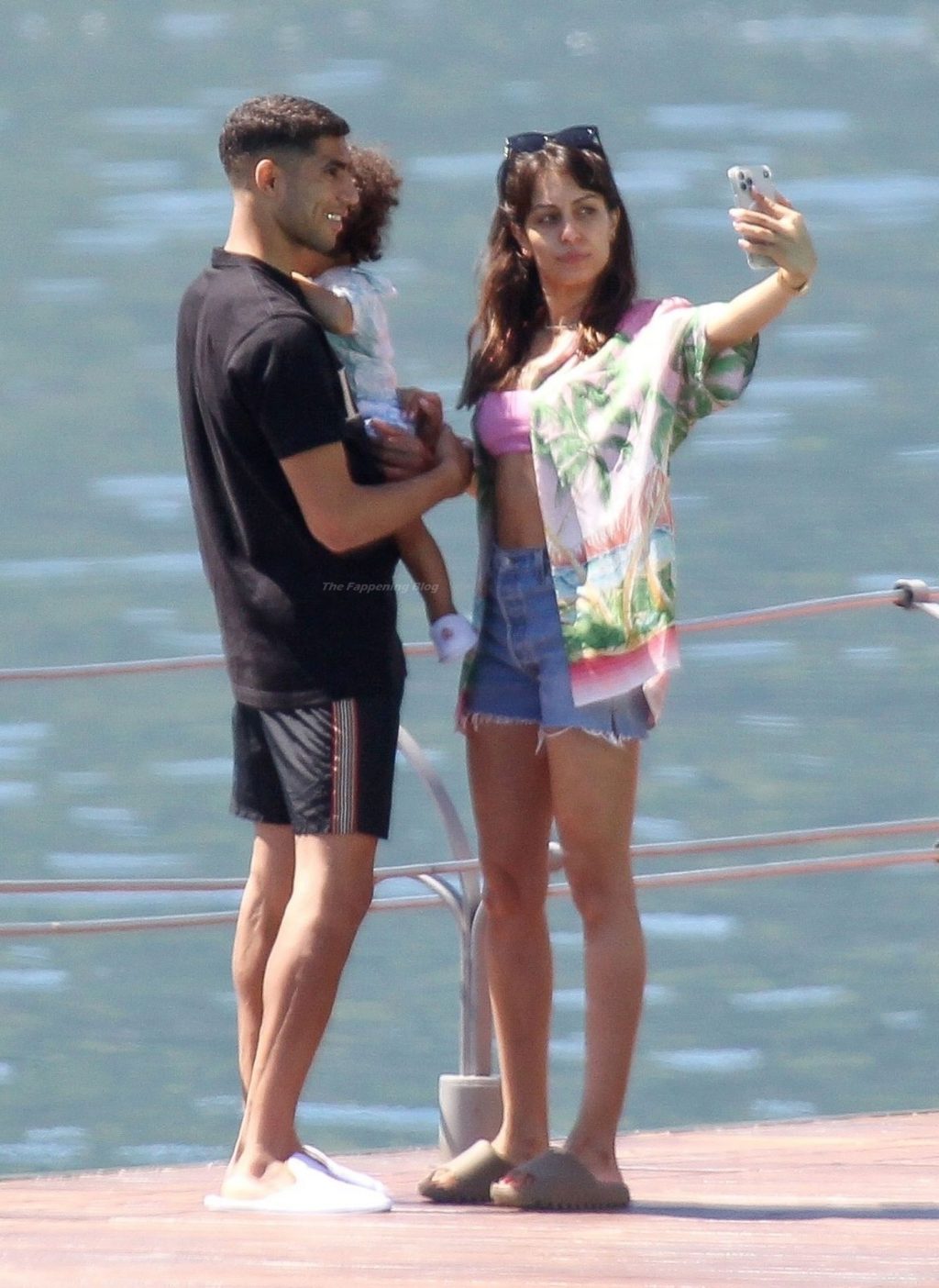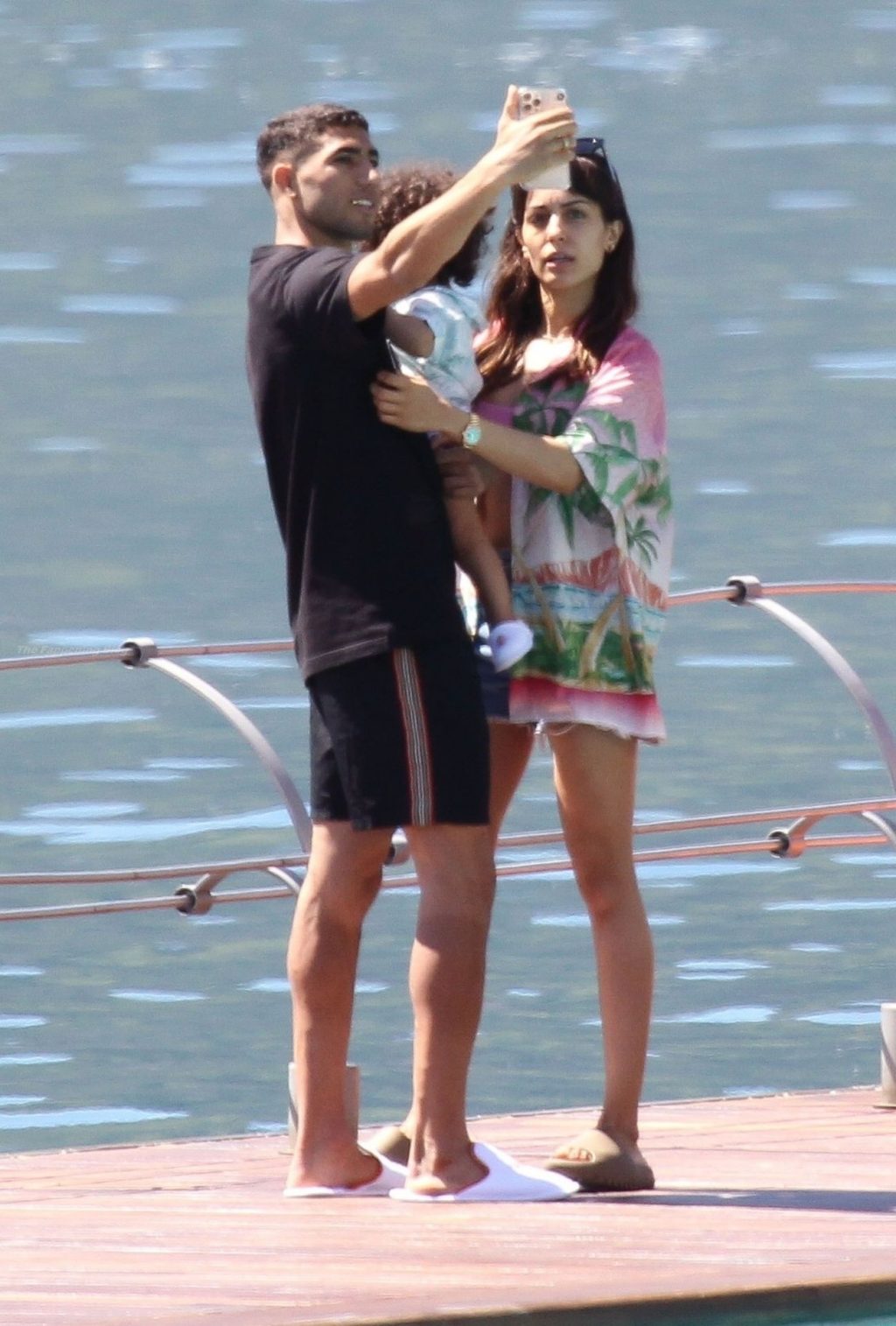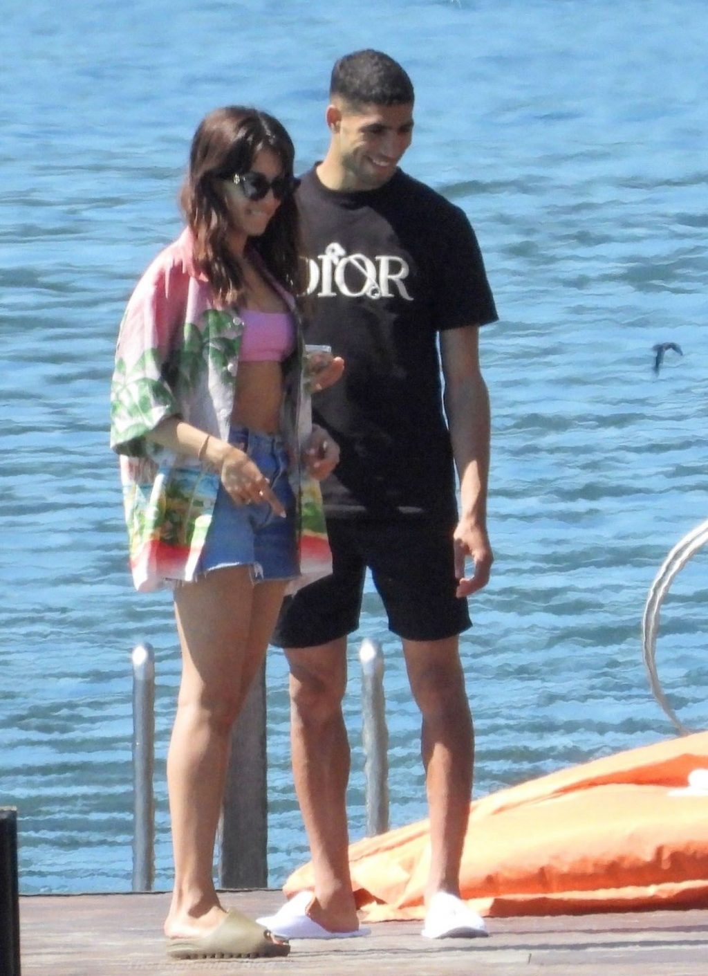 O futebolista marroquino Achraf Hakimi e sua esposa, a atriz espanhola Hiba Abouk, aproveitam umas adoráveis férias em família com seu filho no lago de Como, enquanto o Chelsea oferece 60 milhões pelo futebolista.