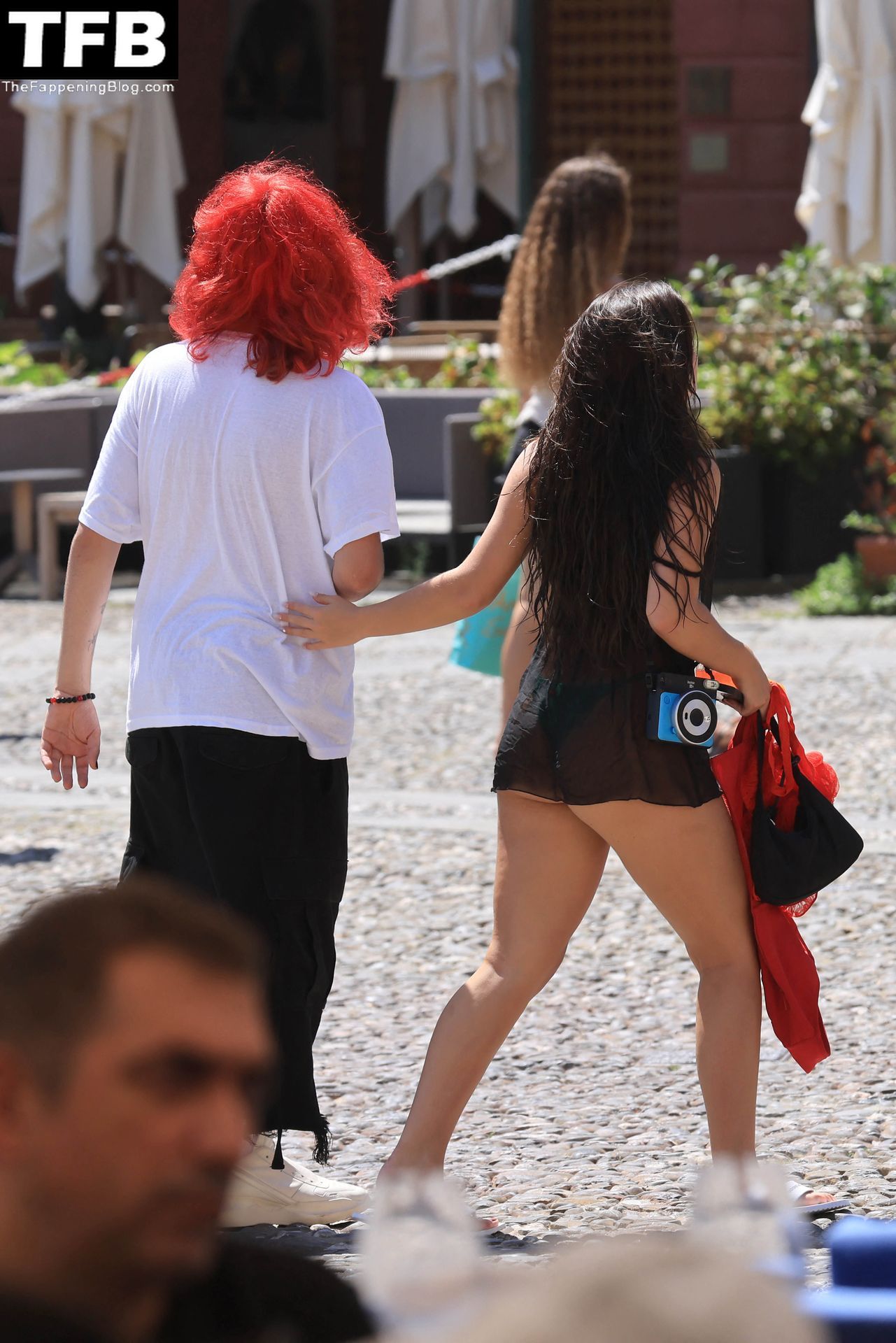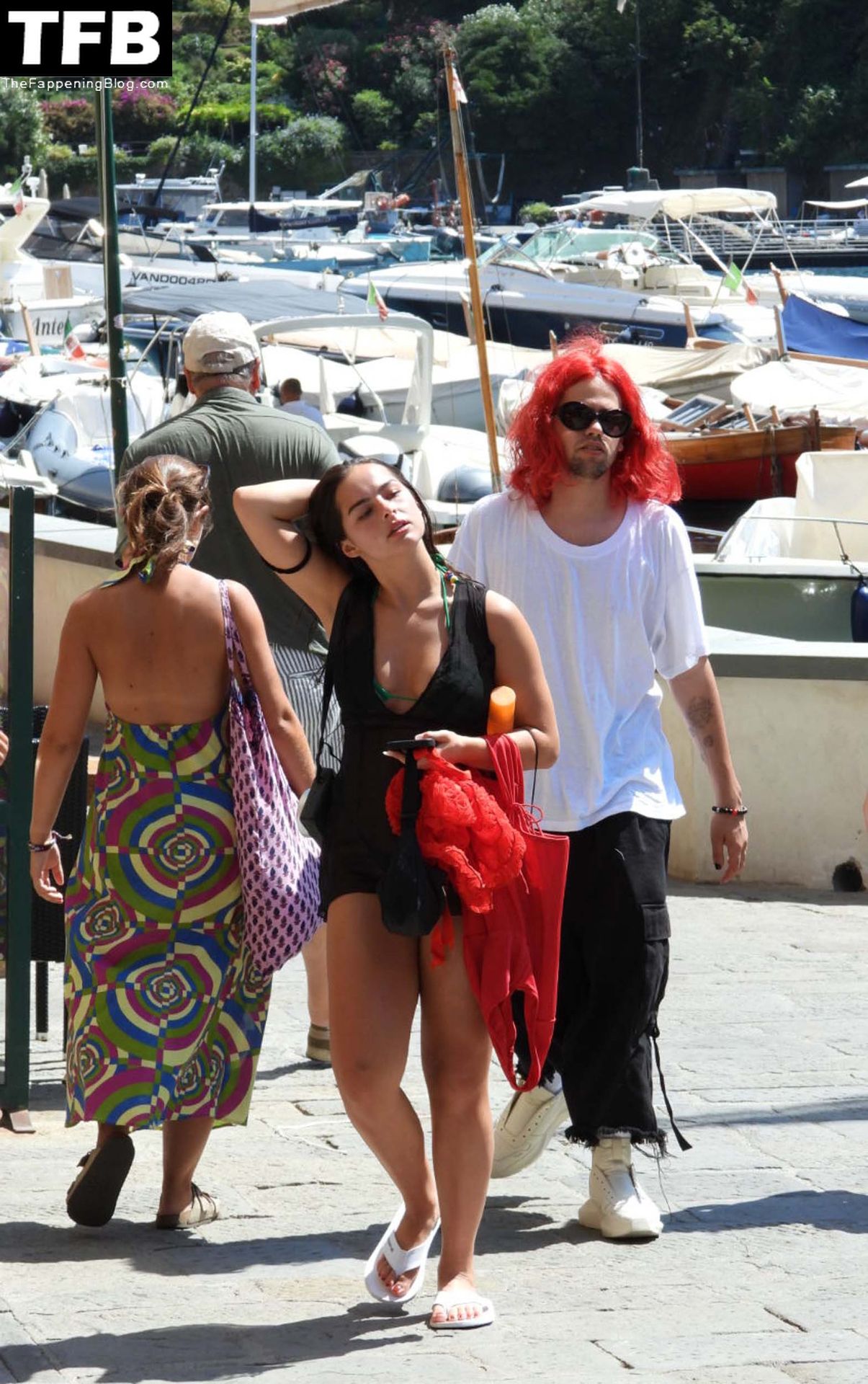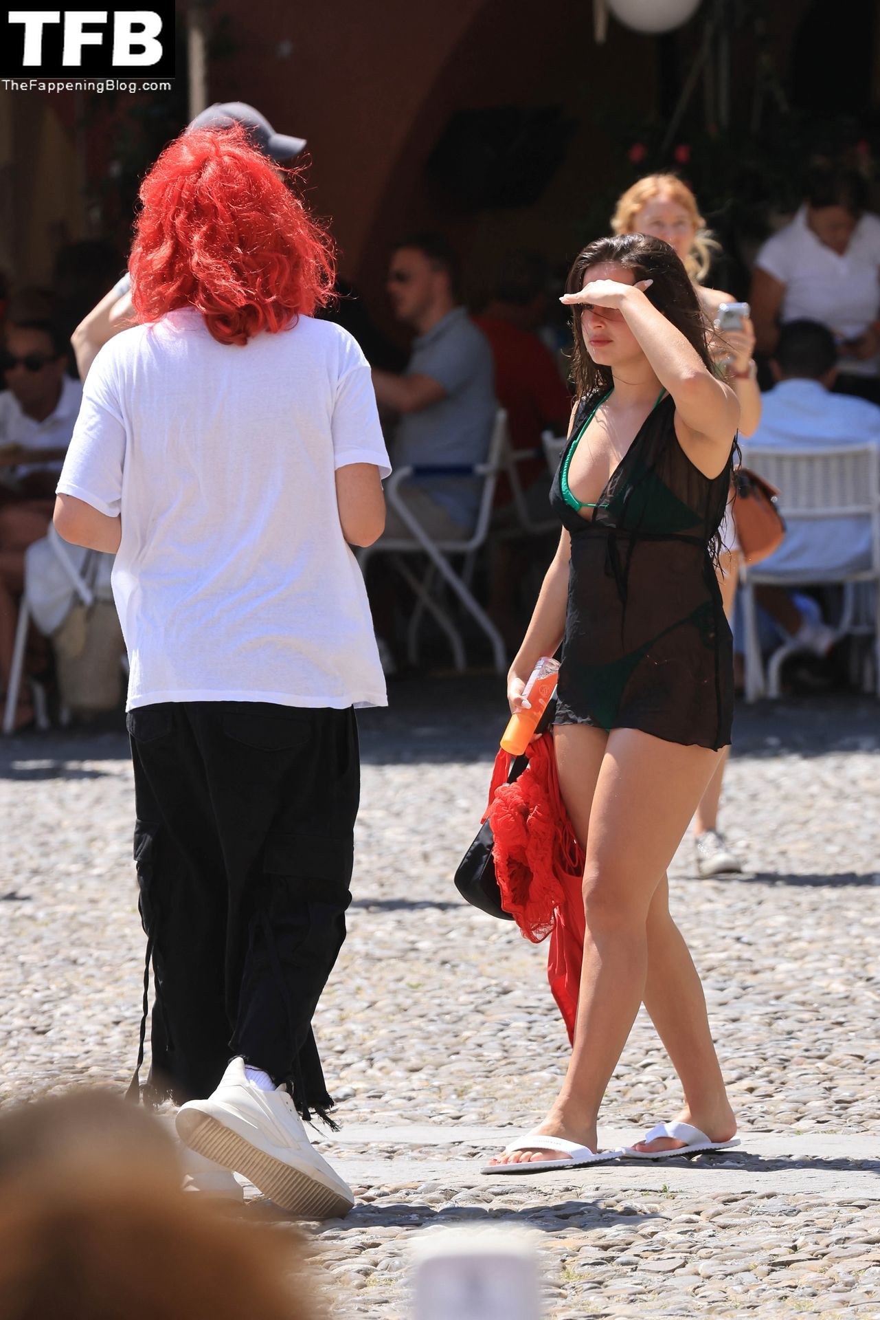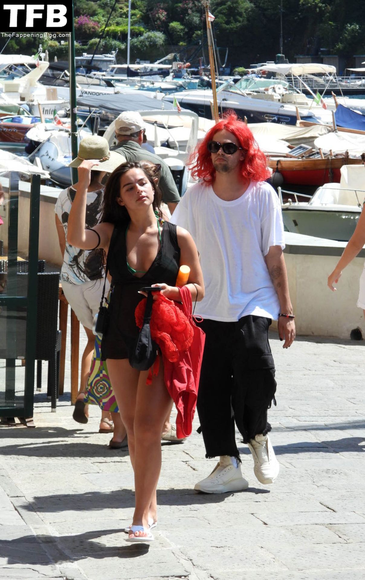 Addison Rae e seu namorado Omer Fedi são vistos de férias em Portofino, 16/08/2022. Addison foi vista exibindo sua figura invejável em um biquíni fio dental.