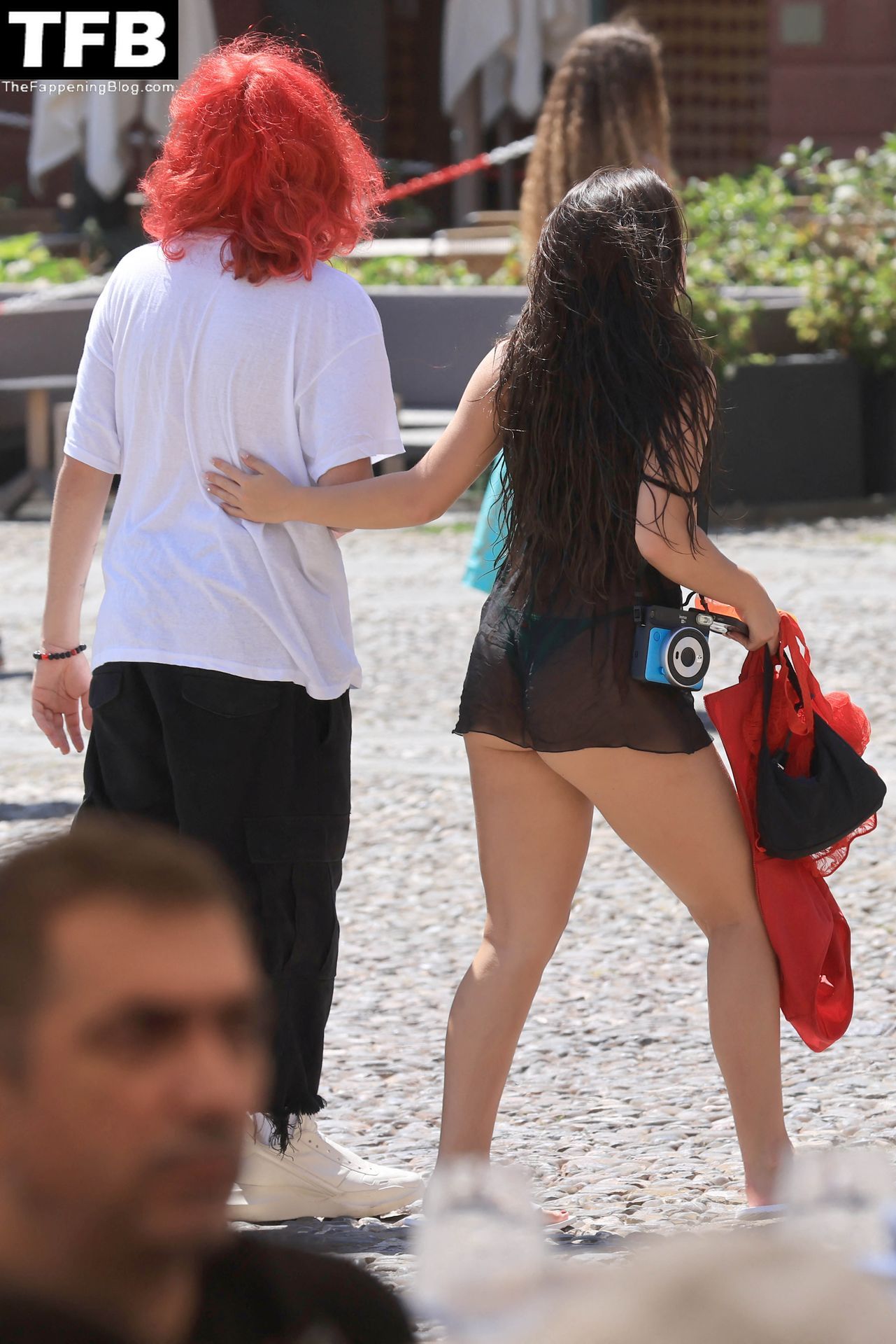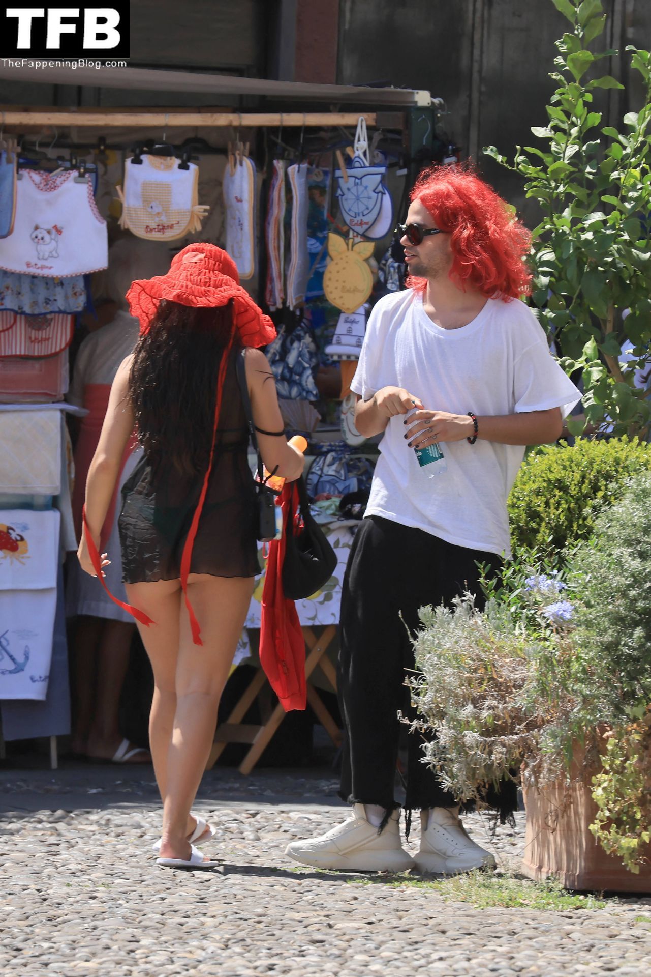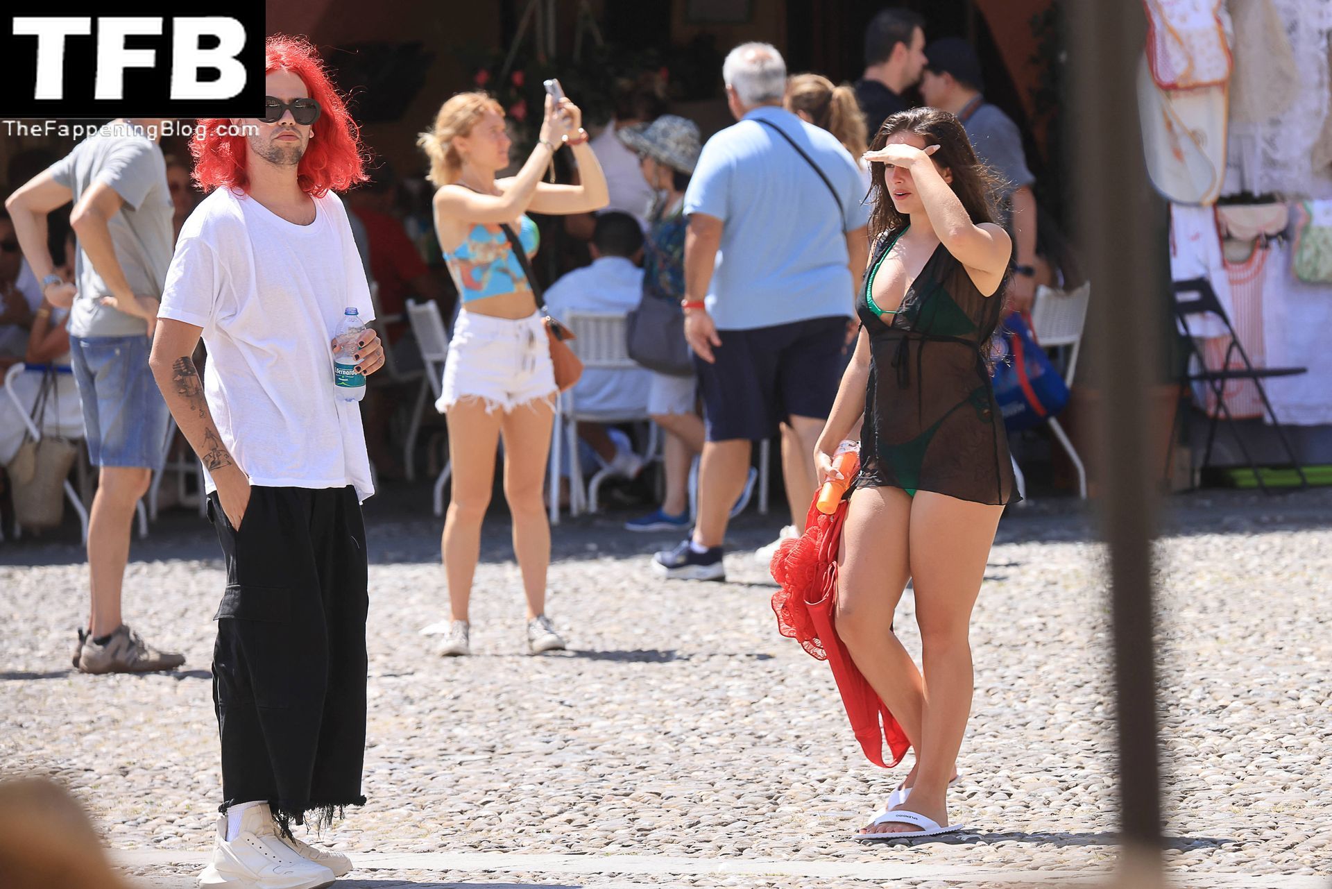 Addison Rae e seu namorado Omer Fedi são vistos de férias em Portofino, 16/08/2022. Addison foi vista exibindo sua figura invejável em um biquíni fio dental.
