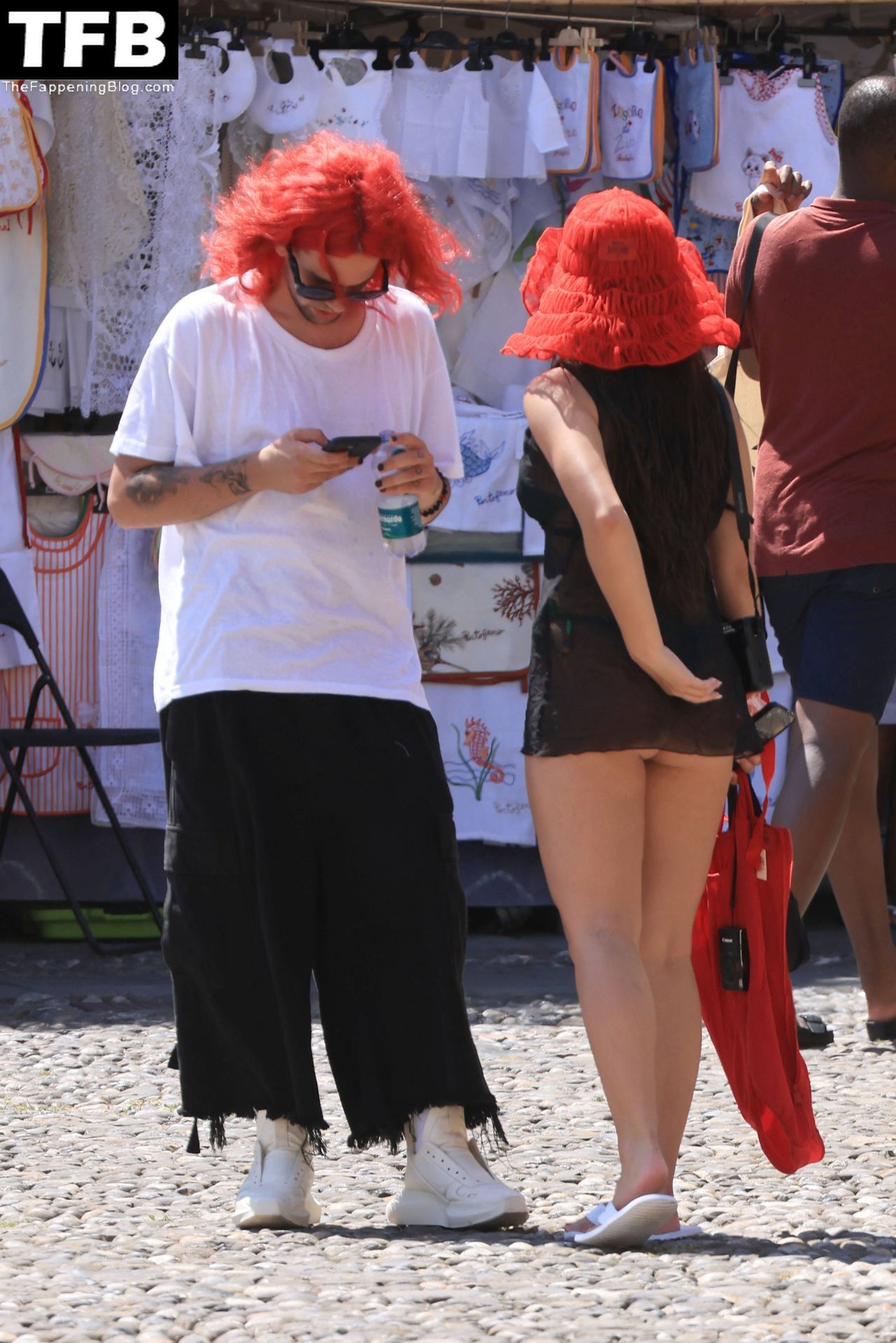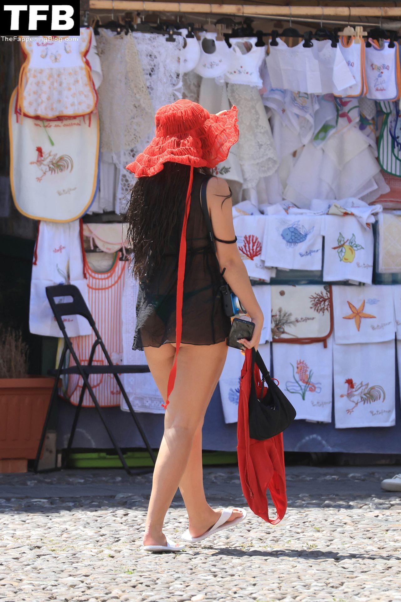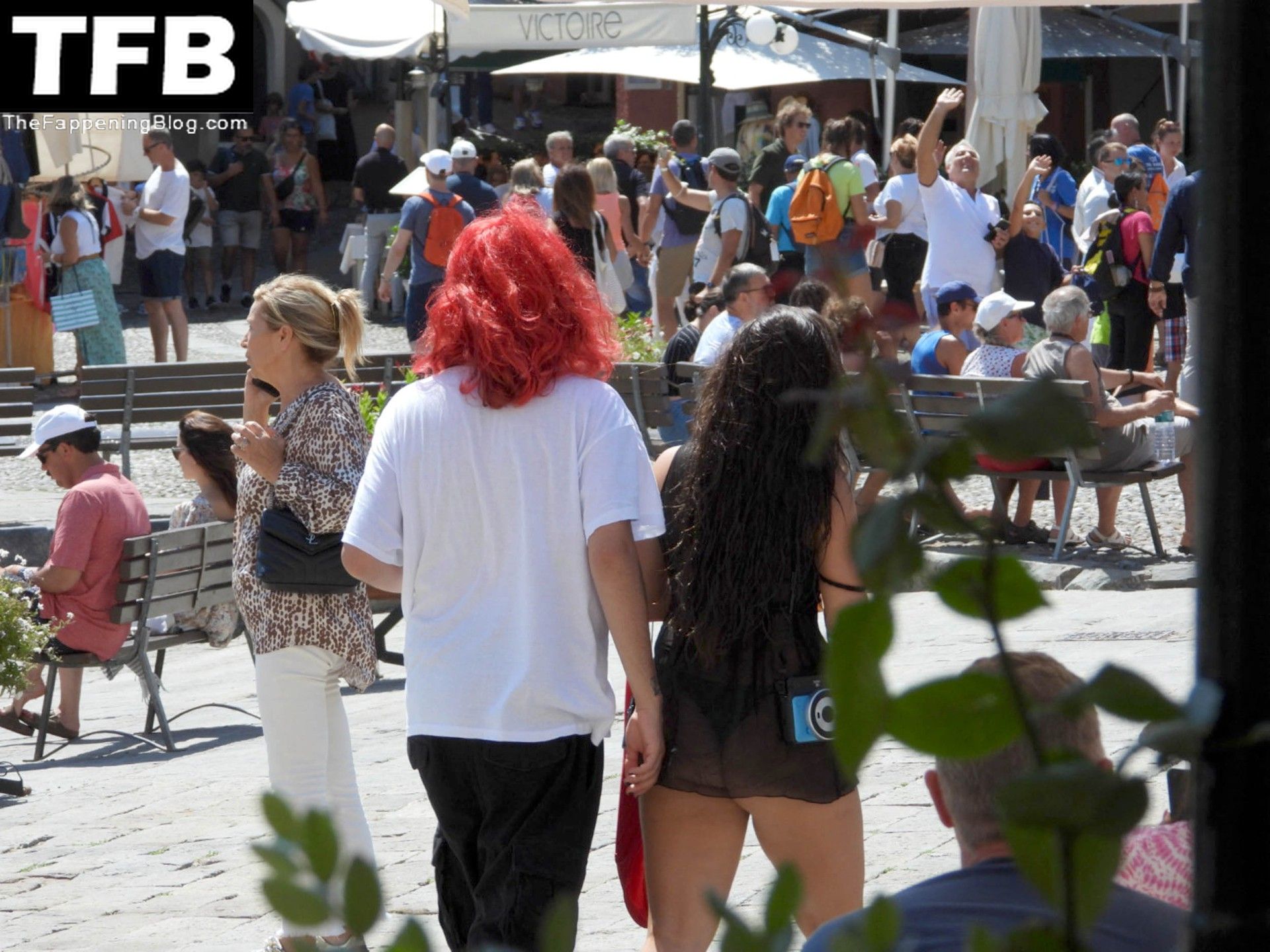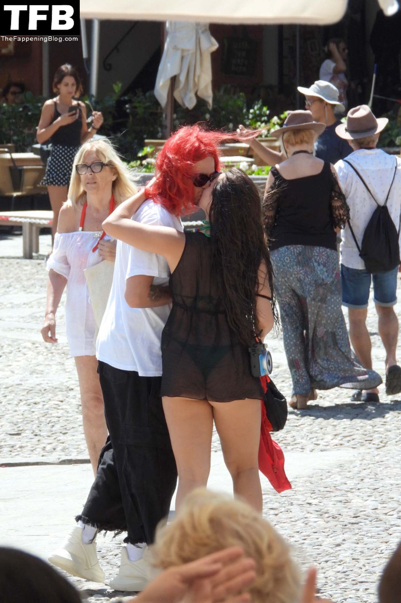 Addison Rae e seu namorado Omer Fedi são vistos de férias em Portofino, 16/08/2022. Addison foi vista exibindo sua figura invejável em um biquíni fio dental.