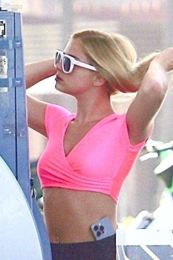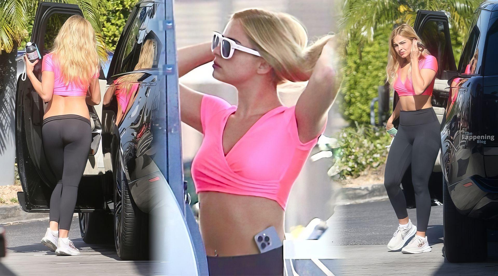Addison Rae é vista em West Hollywood, vestindo um top cropped rosa vibrante, exibindo seu bumbum sexy e abdômen definido.