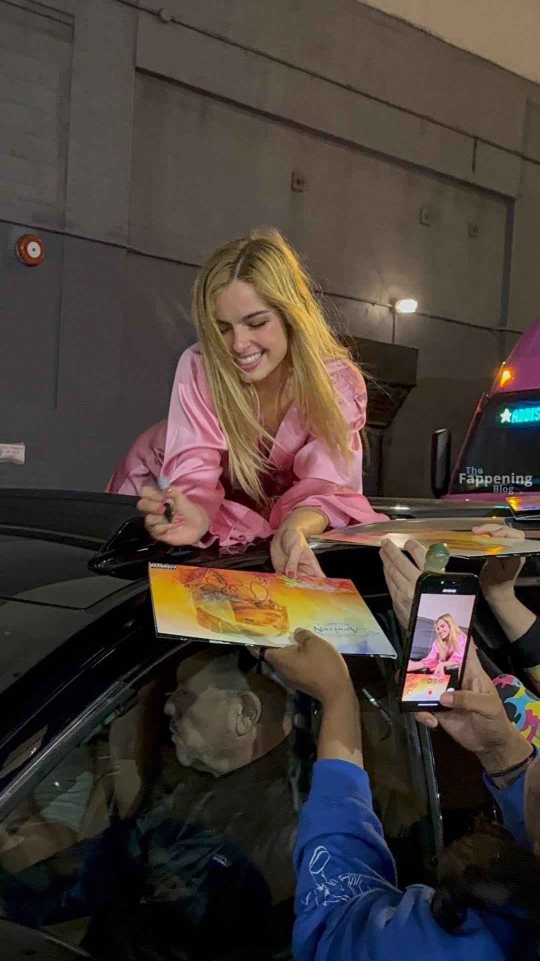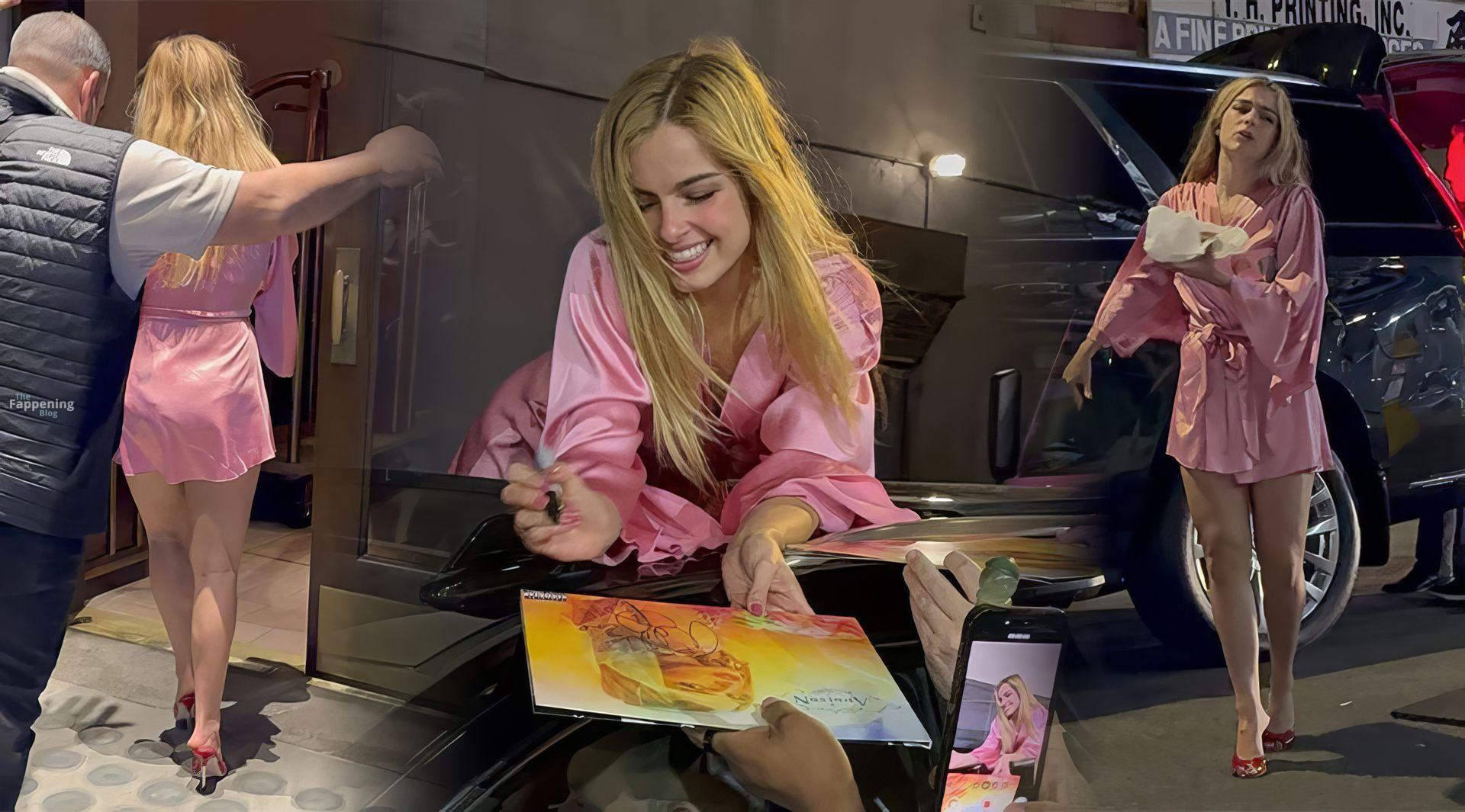Addison Rae impressionou os fãs em NYC com um mini vestido de cetim rosa sedoso. Ela estava assinando autógrafos e exibindo suas pernas tonificadas.