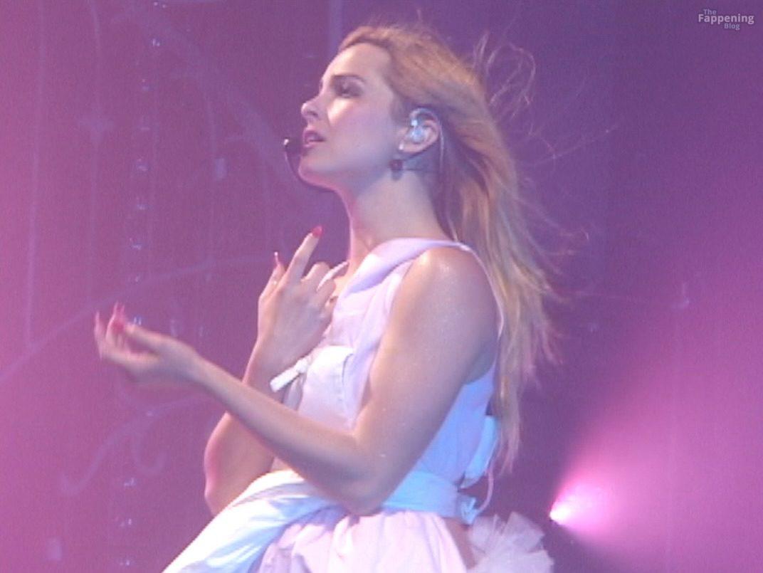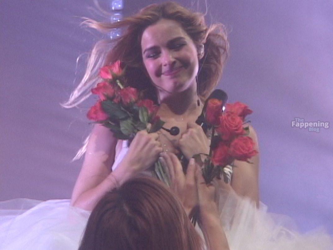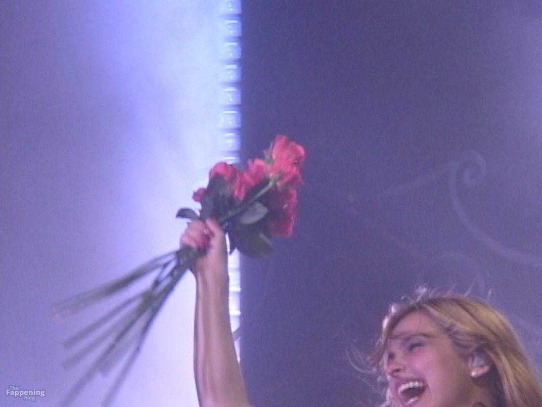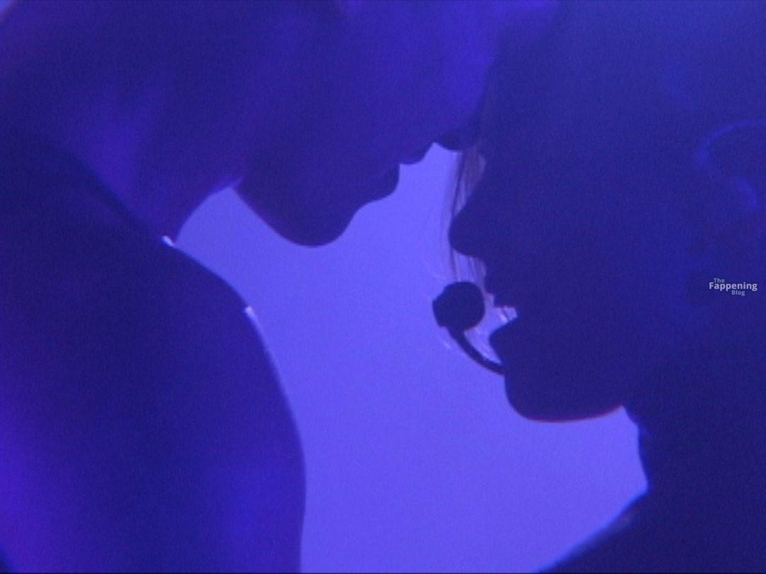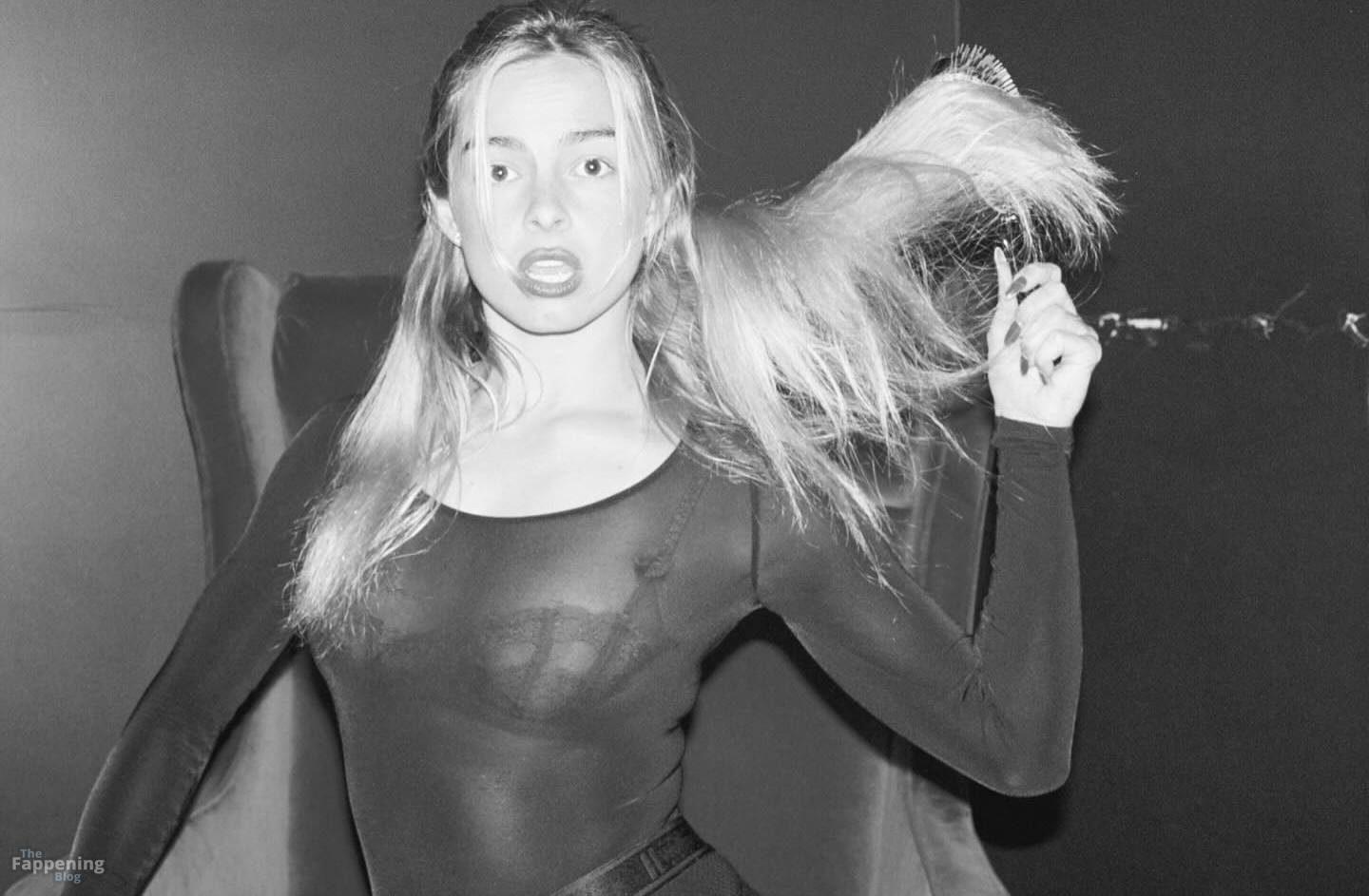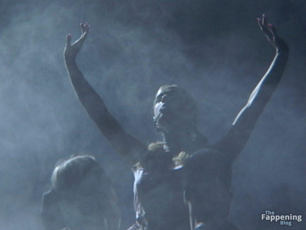Addison Rae domina o palco com um body preto transparente, meia-arrastão e outras roupas. Confira sua figura sexy nas fotos dos bastidores.