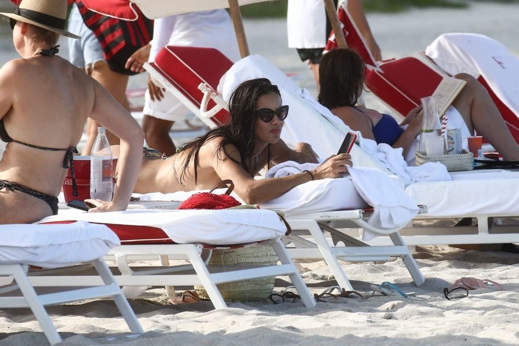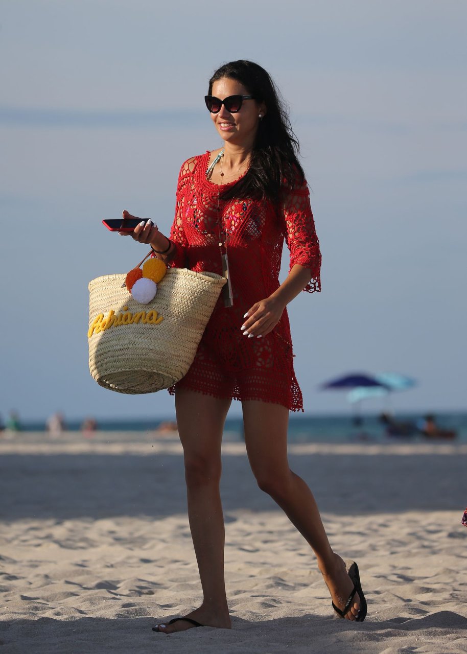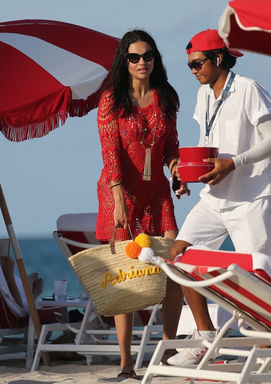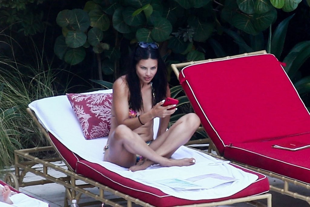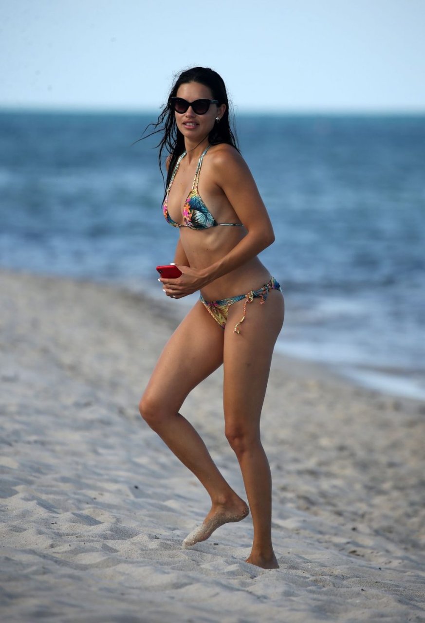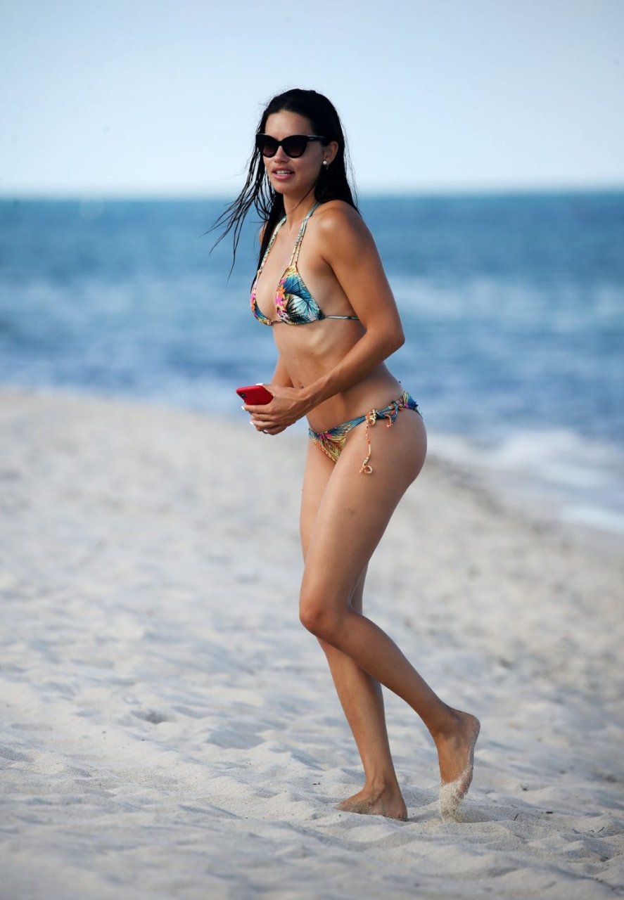 A modelo/atriz brasileira Adriana Lima está em Miami Beach aproveitando o sol com a família, 13/08/2019! Adriana usa um maiô estampado floral que realça a figura em forma da modelo. A beldade tira algumas fotos de um membro adorável da família enquanto relaxa à beira da praia.