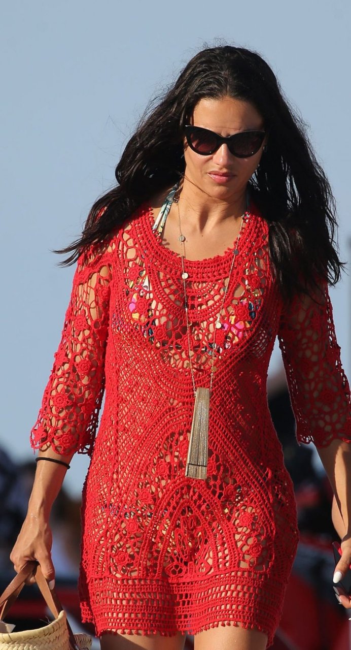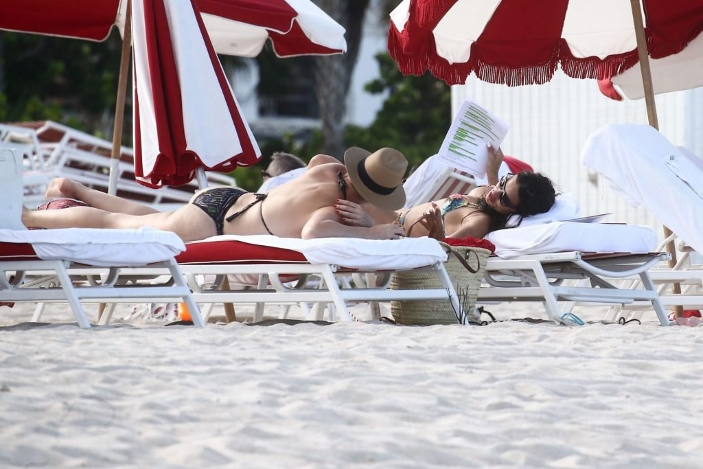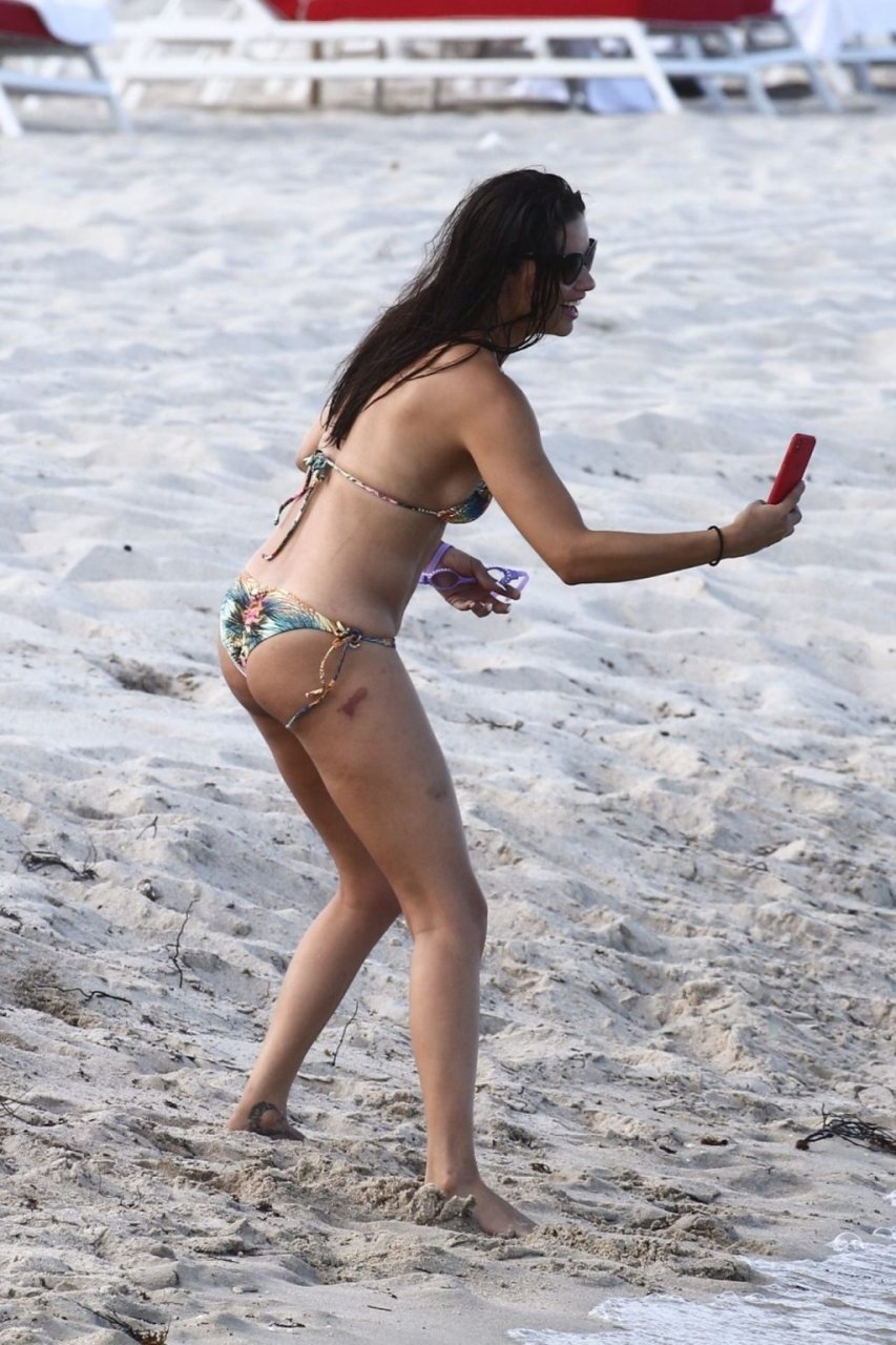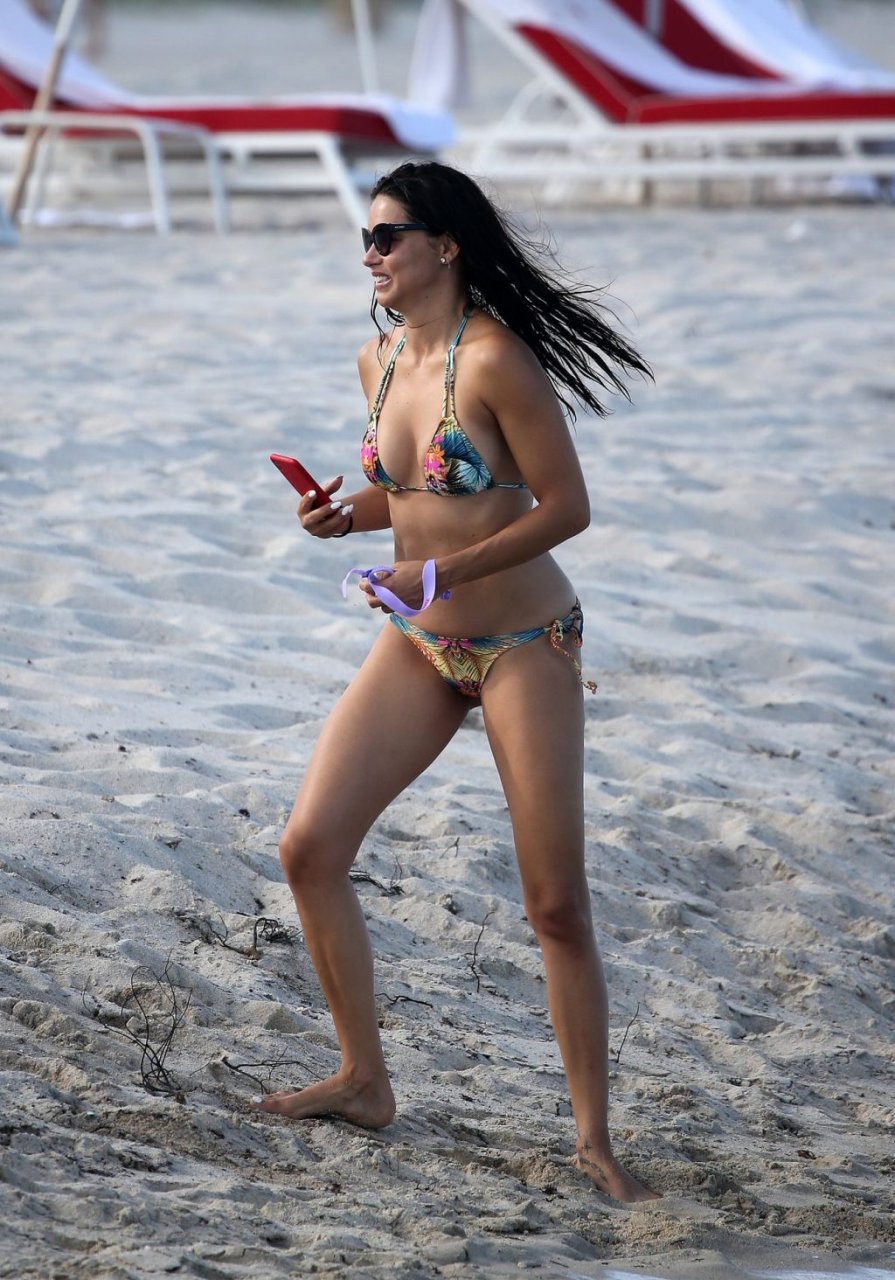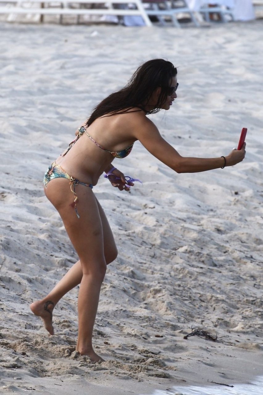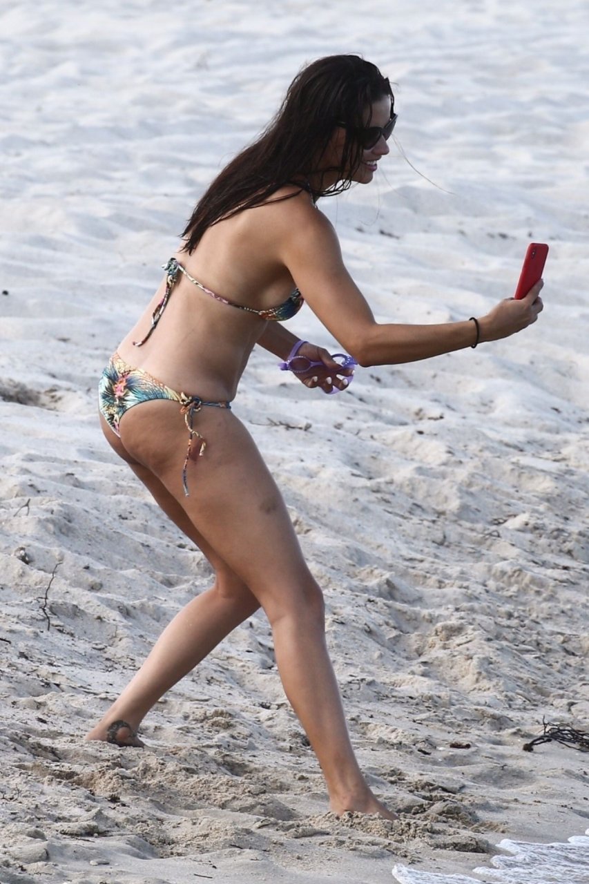 A modelo/atriz brasileira Adriana Lima está em Miami Beach aproveitando o sol com a família, 13/08/2019! Adriana usa um maiô estampado floral que realça a figura em forma da modelo. A beldade tira algumas fotos de um membro adorável da família enquanto relaxa à beira da praia.