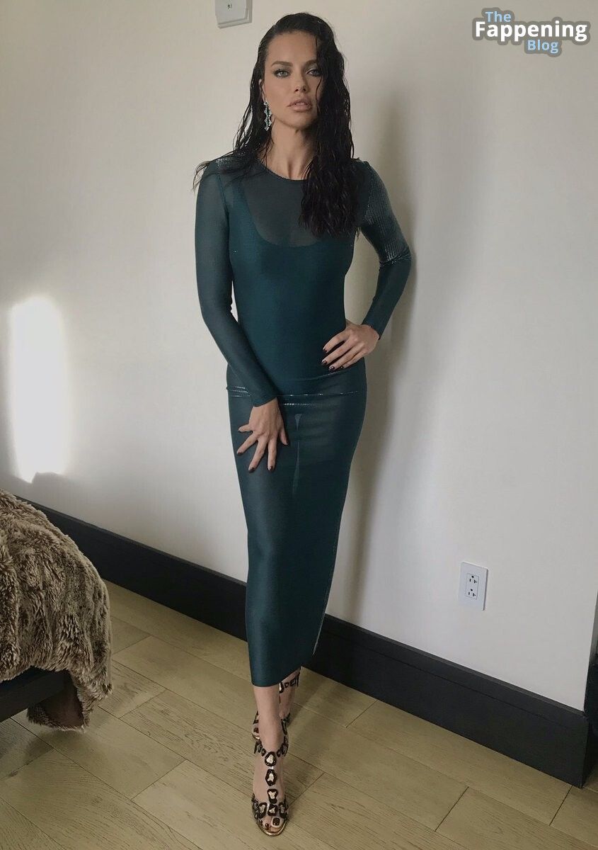 Mas o destaque do seu visual foi o vestido “sereia” de Sally LaPointe, favorito entre as estrelas de Hollywood. O vestido, em um tom azul água da coleção de 2020, era feito de um tecido prateado transparente que abraçava o corpo impecável de Adriana como uma segunda pele. Por baixo, ela usava um body verde-mar. Para completar o conjunto, ela usava brincos longos com esmeraldas verdes e sapatos transparentes com detalhes dourados. A cor do vestido acentuava perfeitamente seus olhos, que eram tão profundos e misteriosos quanto o oceano.