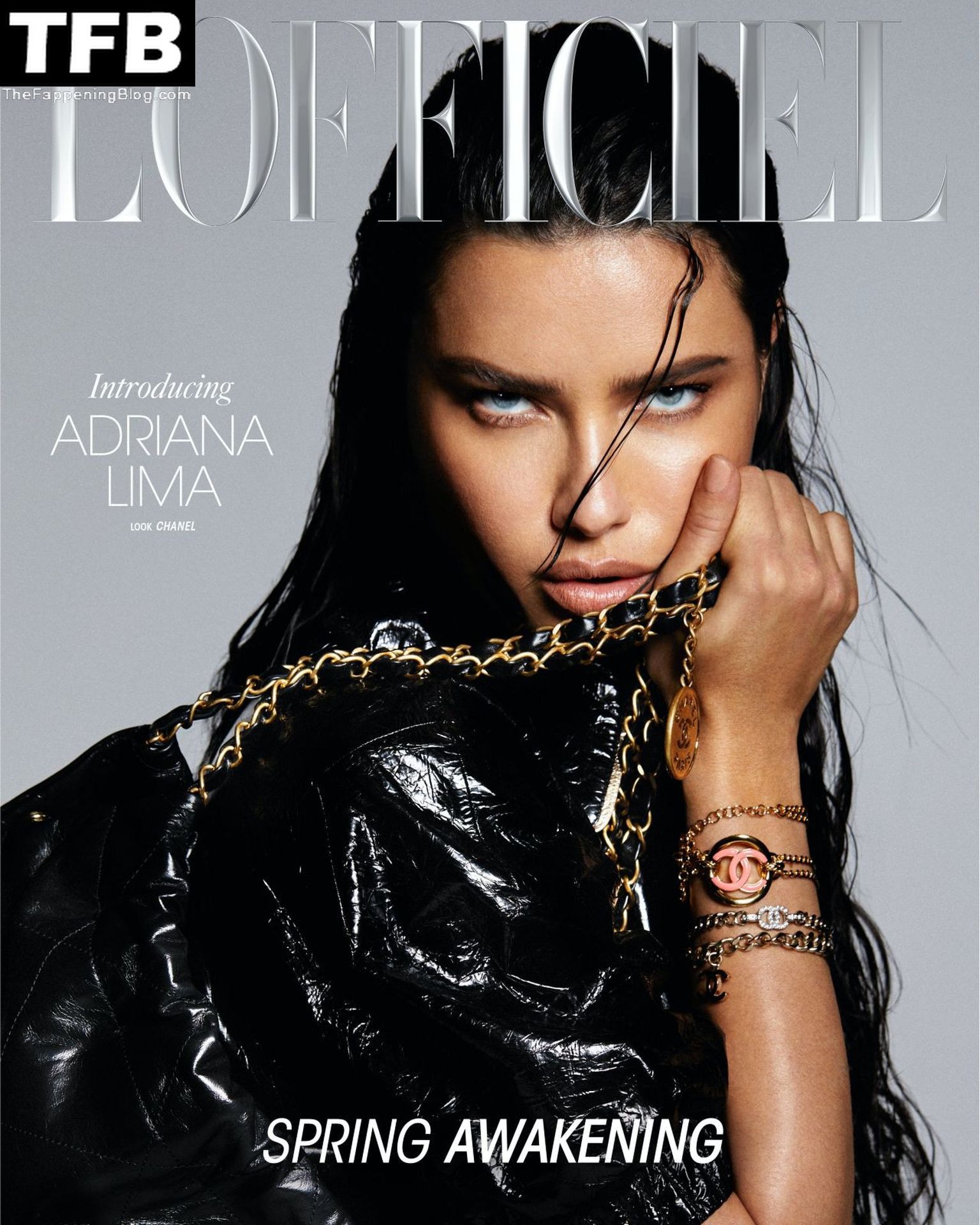 A supermodelo Adriana Lima exibe seu belo decote em um novo ensaio fotográfico de Marcus Cooper para a edição Primavera 2022 da revista L’Officiel.