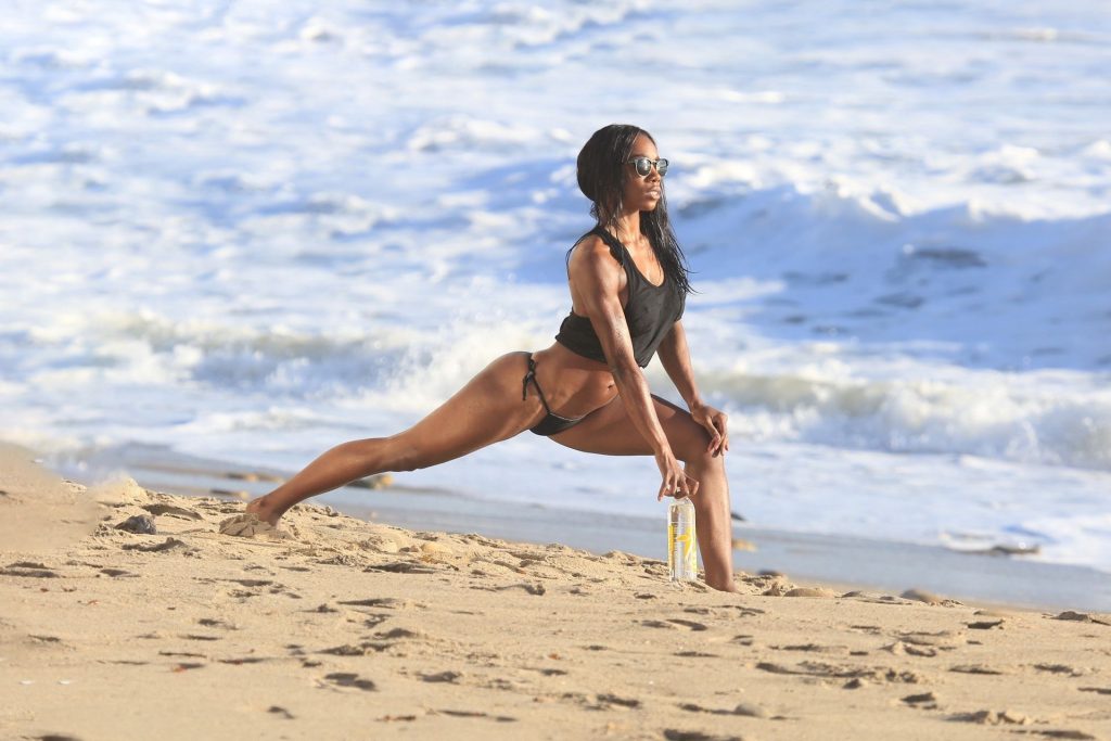 Adrianne Nina fica topless no set de uma sessão de fotos da 138 Water Beach para celebrar as festas, alguns dias antes do Dia de Ação de Graças em Malibu, 26/11/2019.