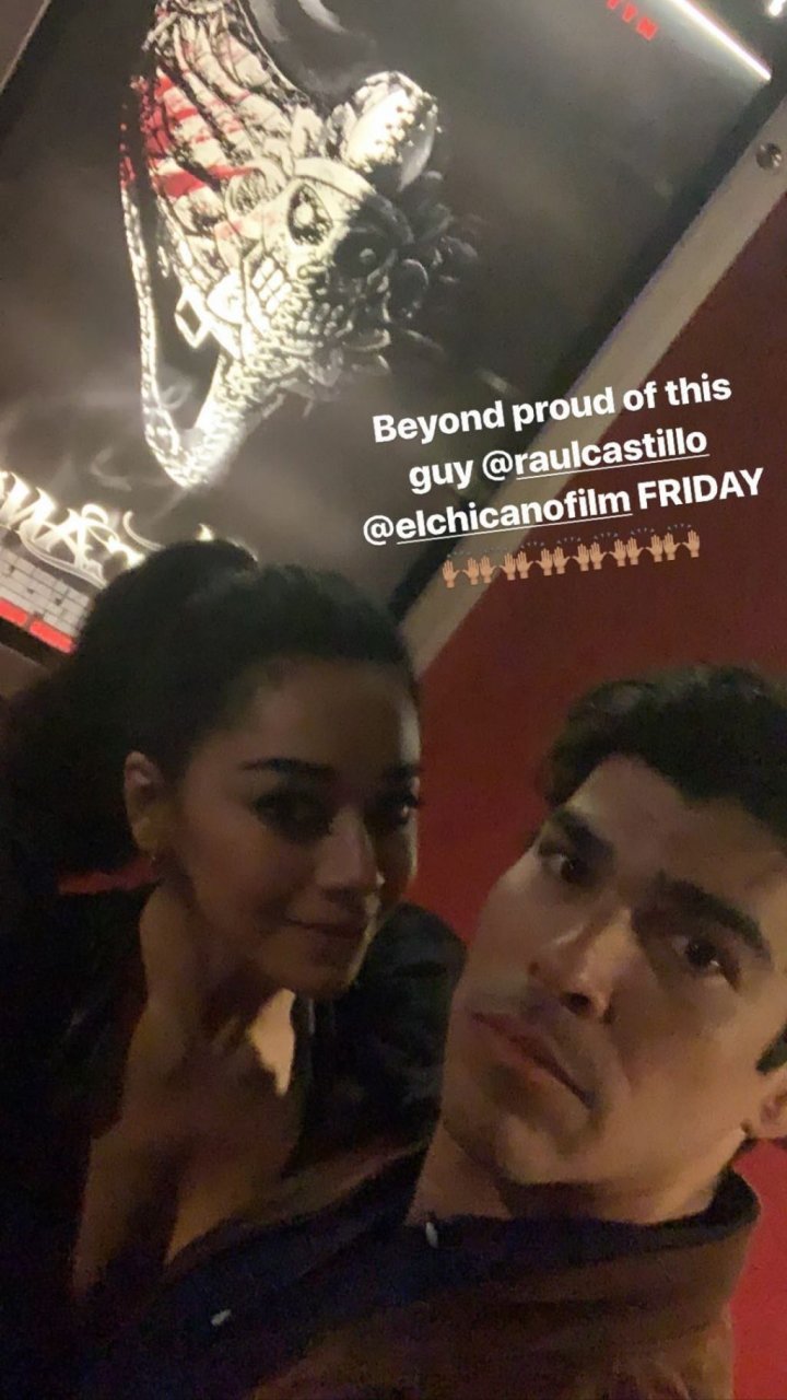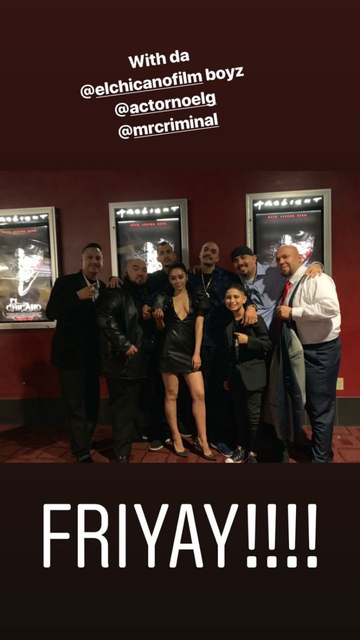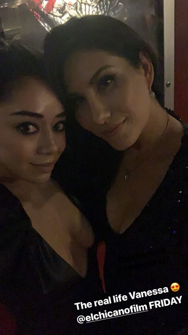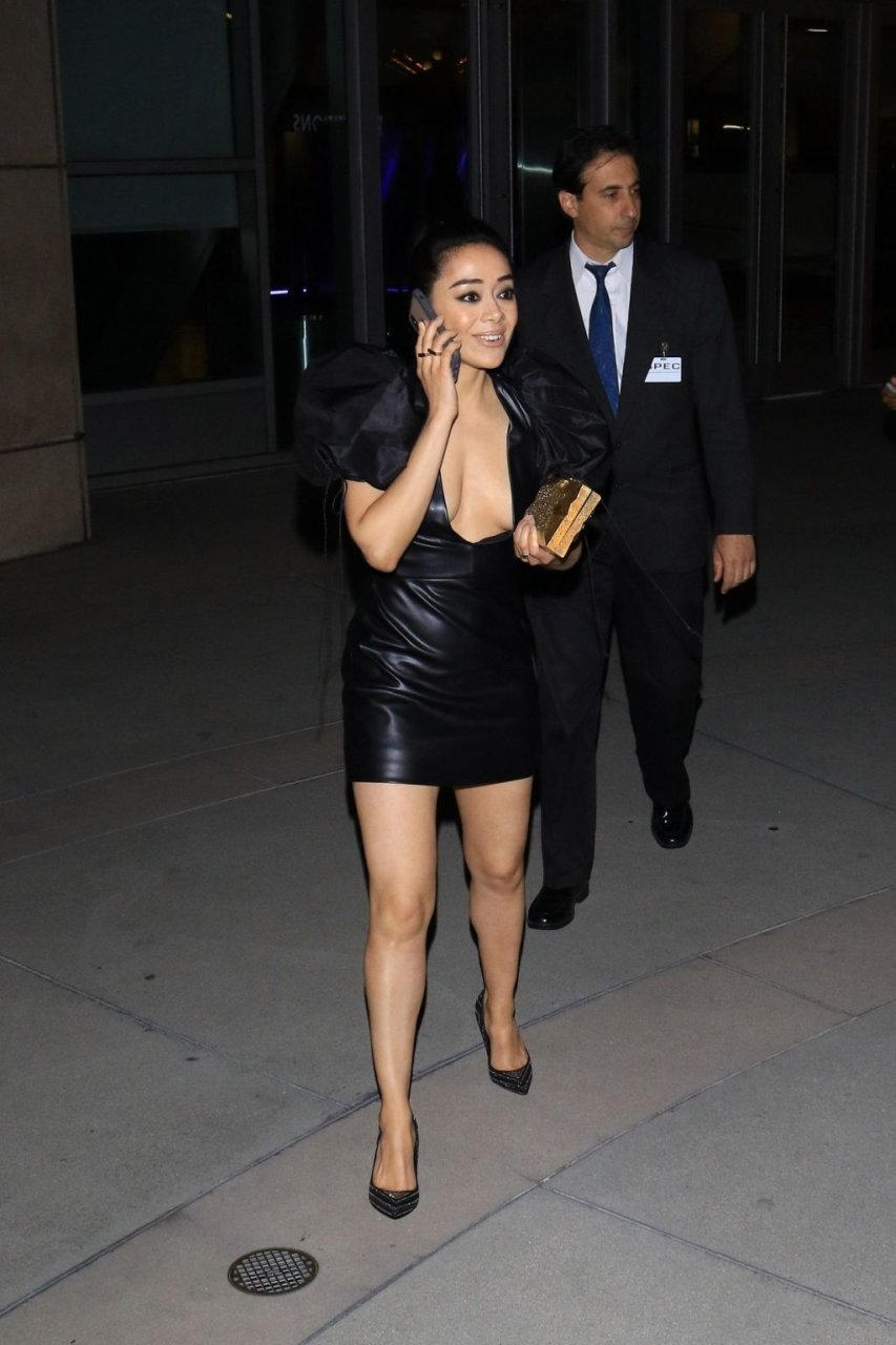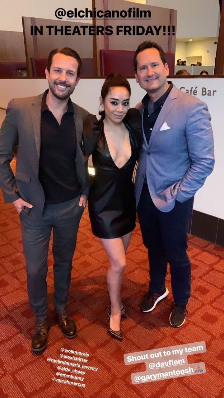 Aimee Garcia chega a uma exibição especial de “El Chicano” no ArcLight Cinemas em Hollywood, 30/04/2019. A atriz de 40 anos exibiu seu decote usando um vestido de couro preto.