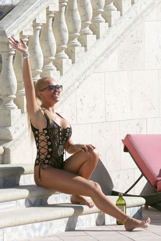 Aisleyne Horgan-Wallace aproveita um dia na piscina em Los Angeles, 26/01/2018. Aisleyne Horgan-Wallace é uma estrela de reality show (Big Brother), designer, modelo, atriz, colunista de revista. Idade: 39 anos.