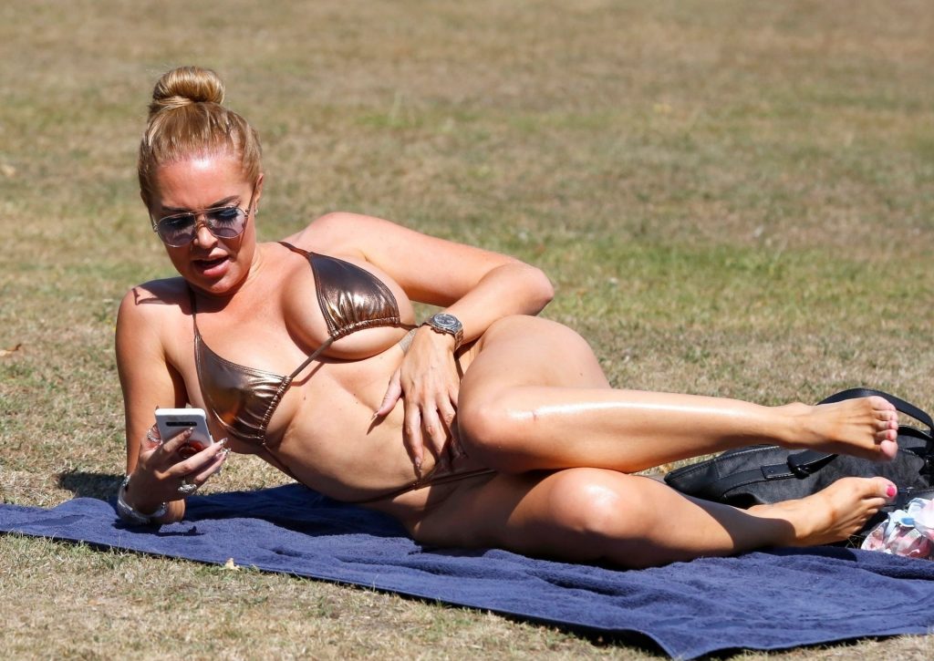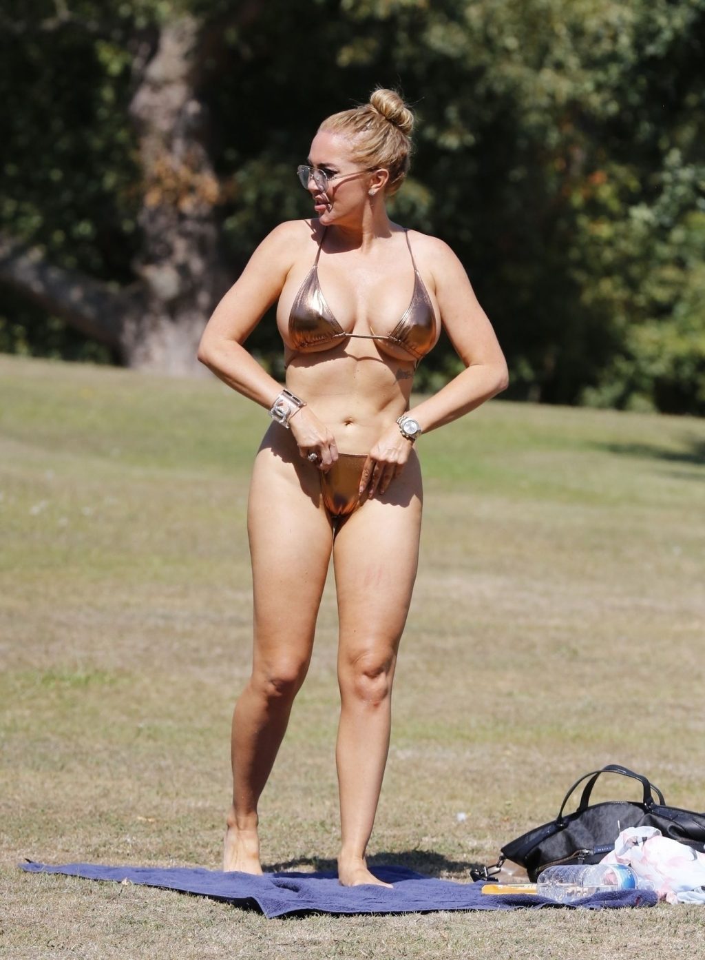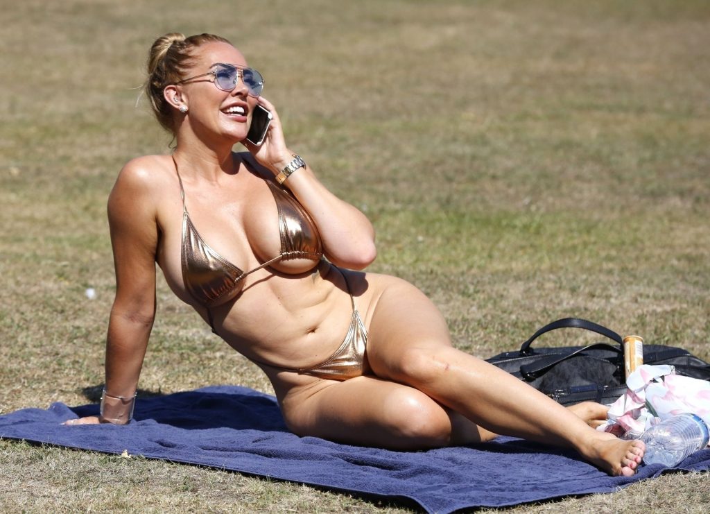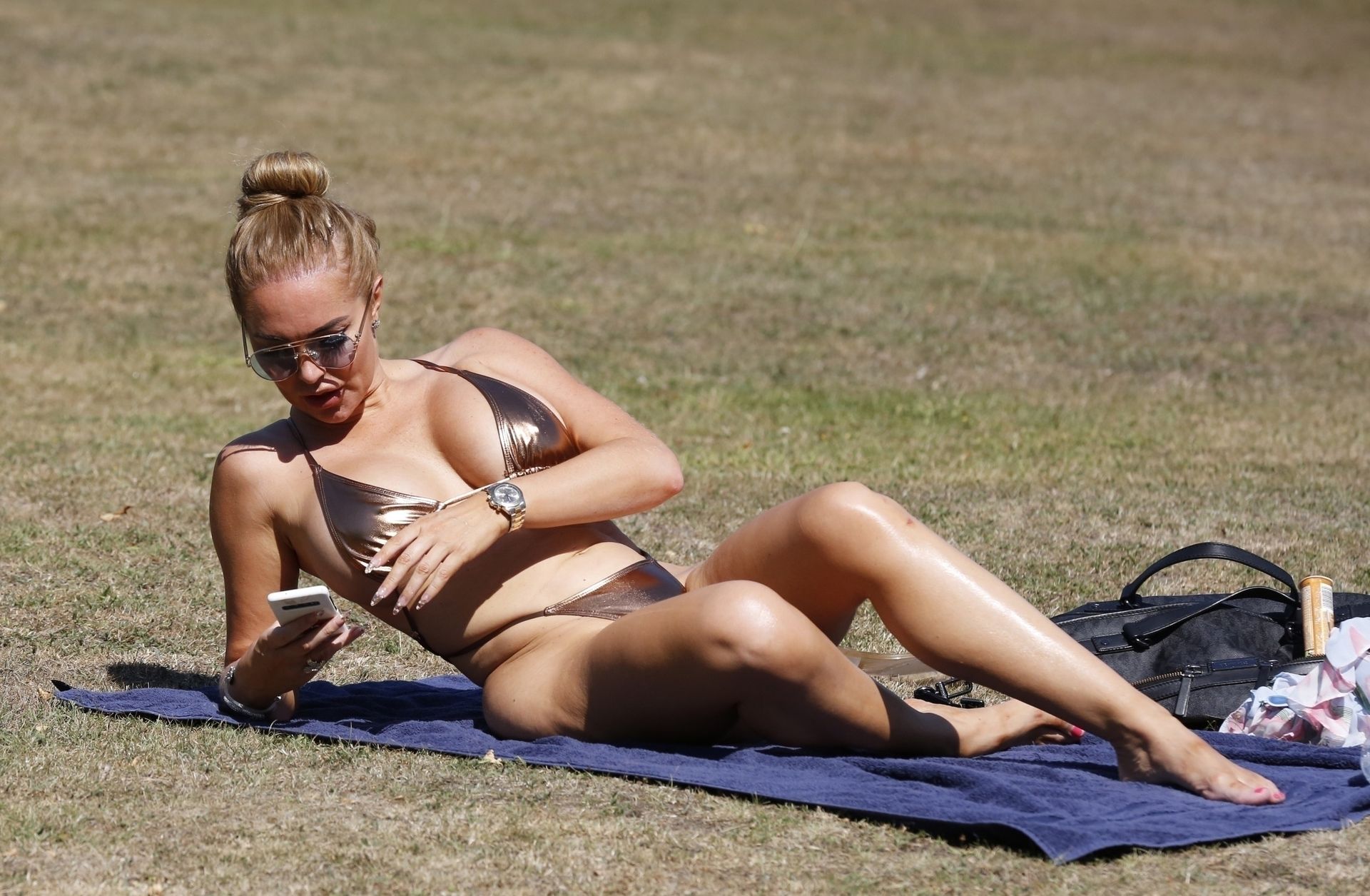 Personalidade de TV, modelo, empresária e participante do Big Brother Aisleyne Horgan-Wallace aproveita a onda de calor de agosto despindo-se e mostrando seu incrível corpo curvilíneo em um biquíni que deixa pouco para a imaginação – Londres, 07/08/2020.