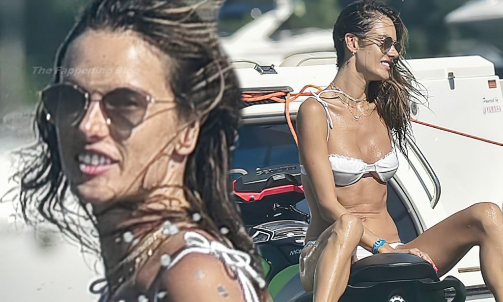 Confira as fotos sensuais em colagem de Alessandra Ambrosio. A supermodelo aproveita suas férias com um biquíni branco, mostrando suas pernas esbeltas.