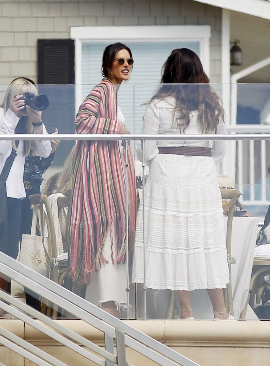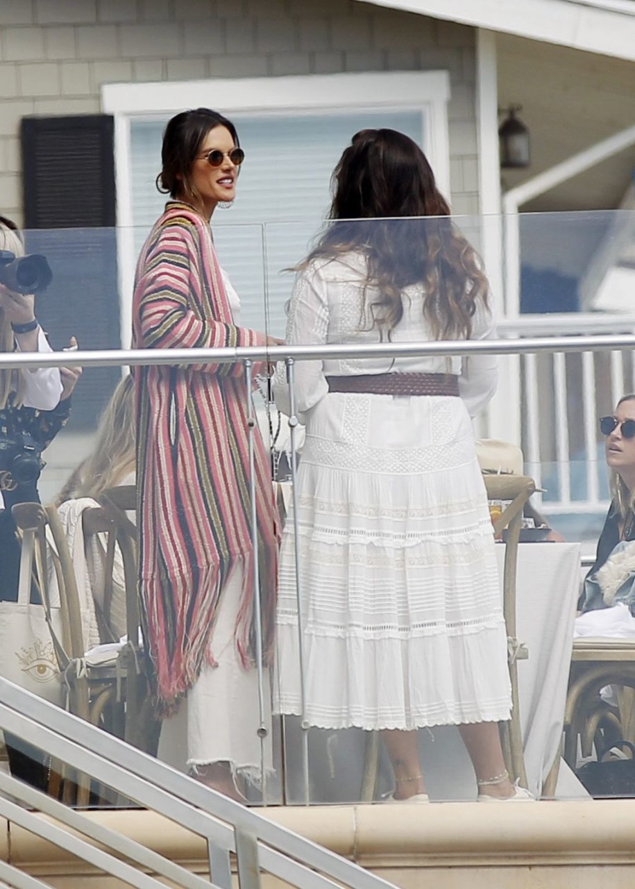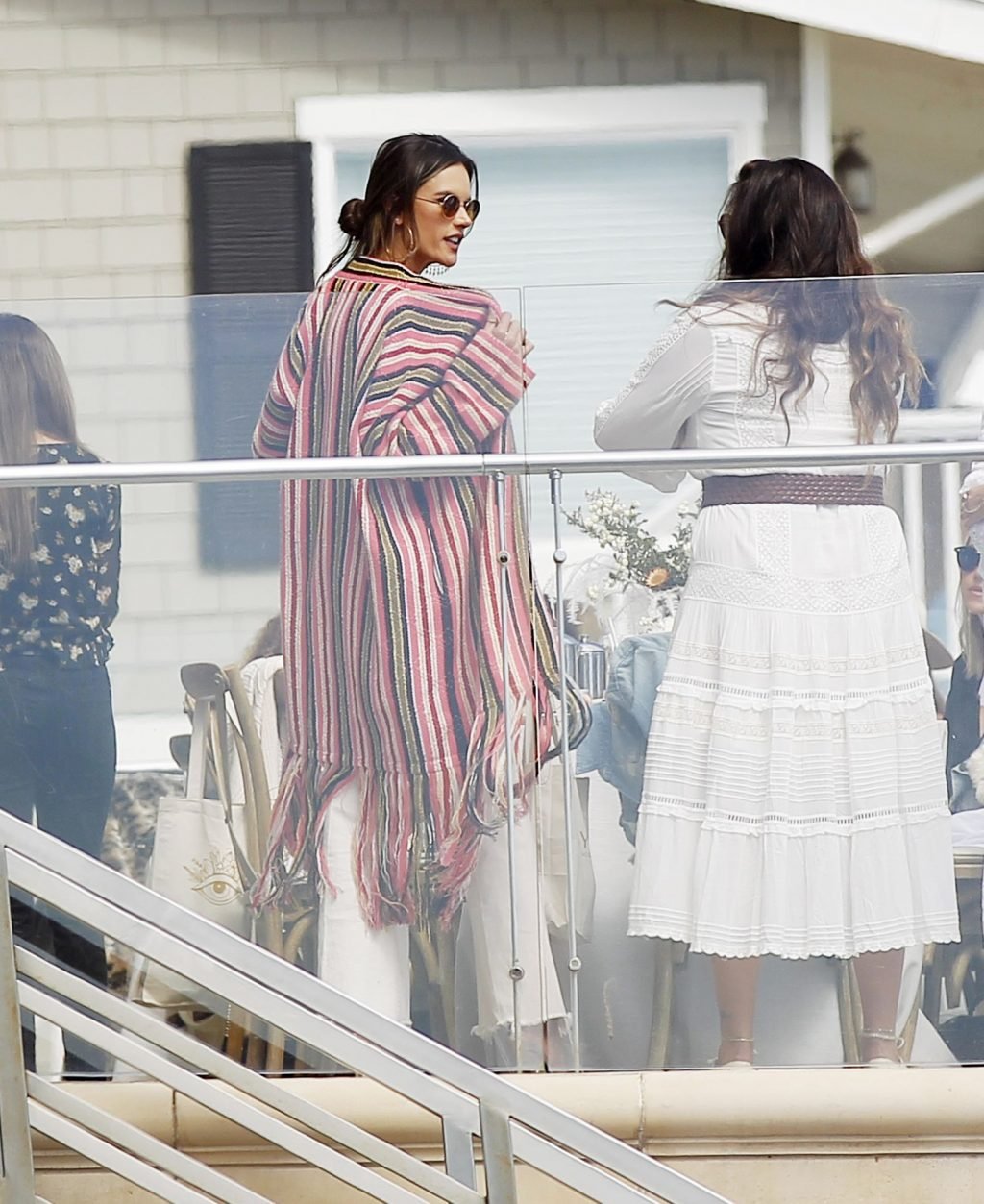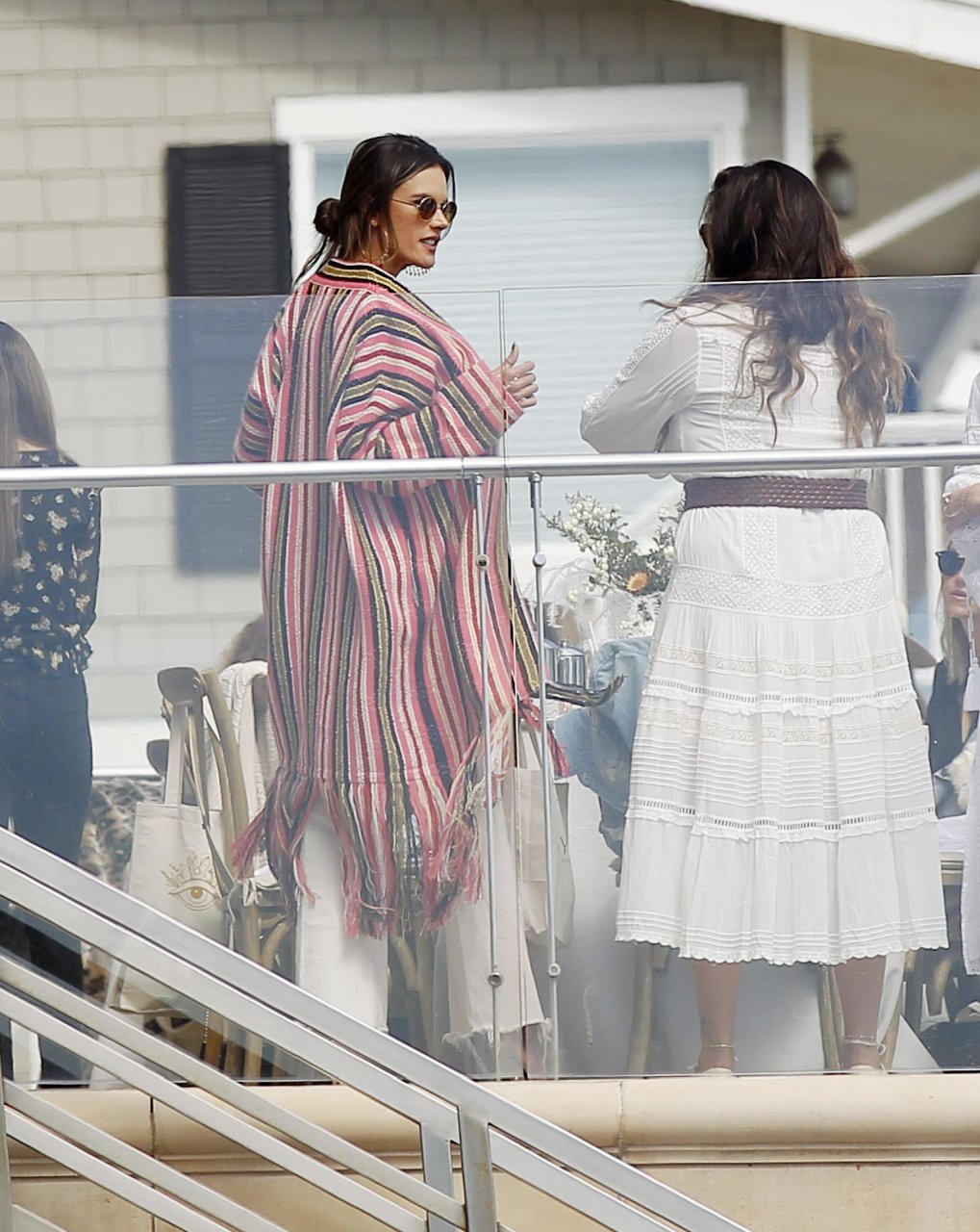 Alessandra Ambrosio tira algumas fotos com amiga após participar do Brunch Cigano de Jacquie Aiche no Malibu Beach Inn para celebrar o lançamento das novas coleções de joias finas feitas à mão, 21/03/2019.
