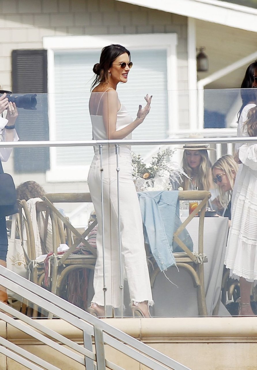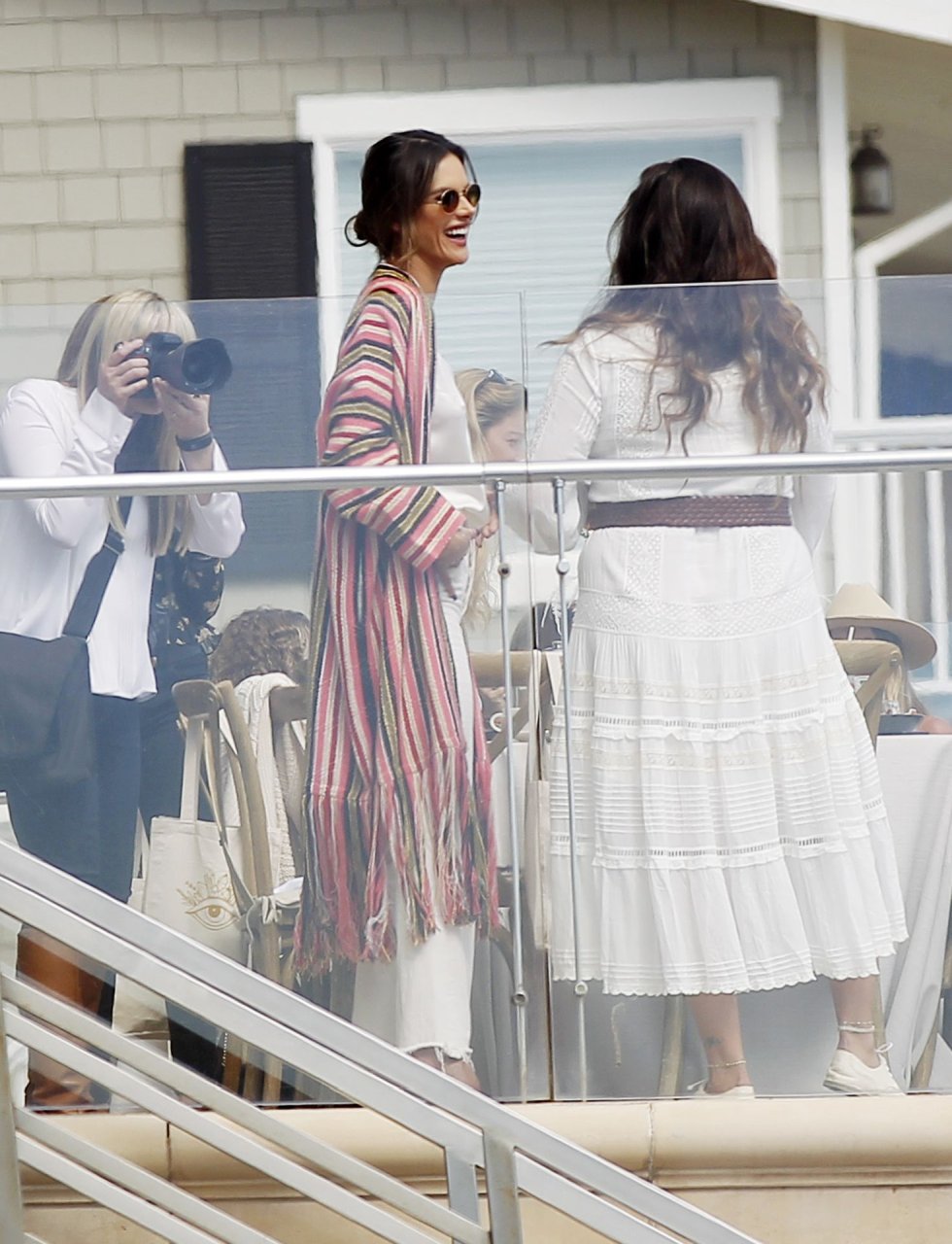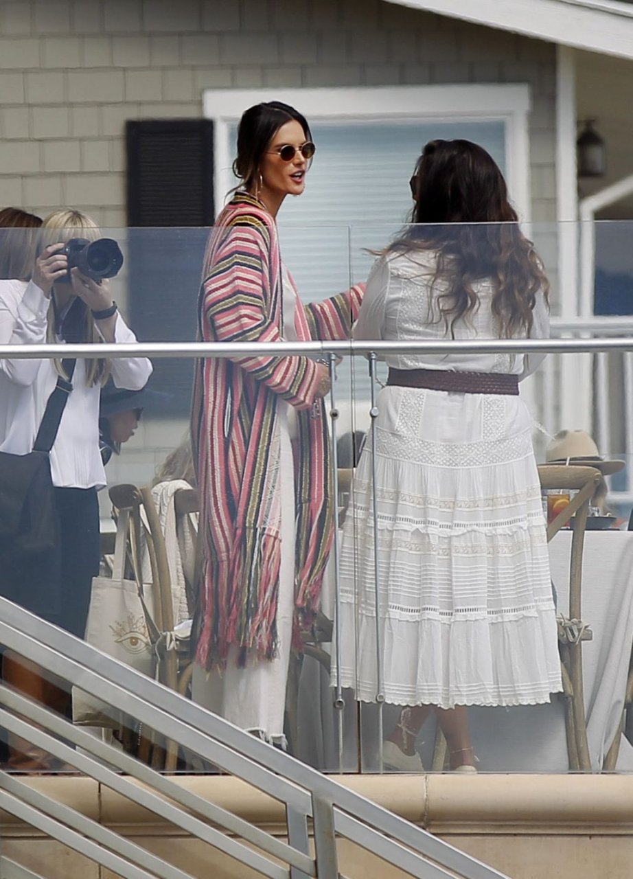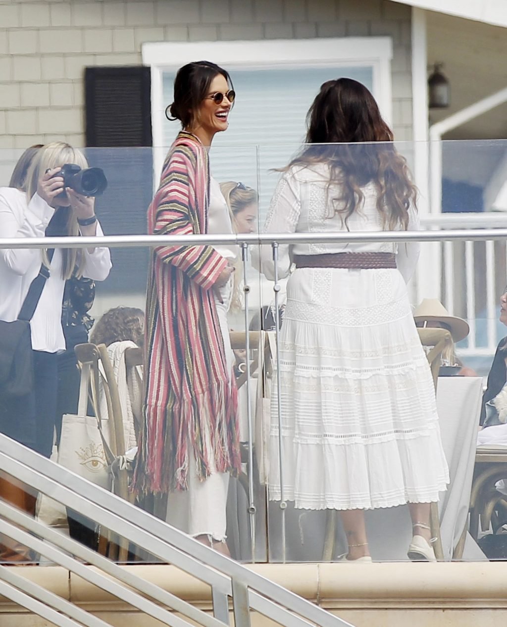 Alessandra Ambrosio tira algumas fotos com amiga após participar do Brunch Cigano de Jacquie Aiche no Malibu Beach Inn para celebrar o lançamento das novas coleções de joias finas feitas à mão, 21/03/2019.