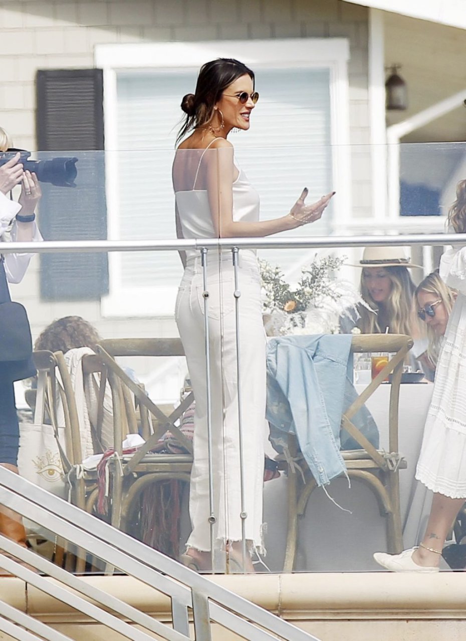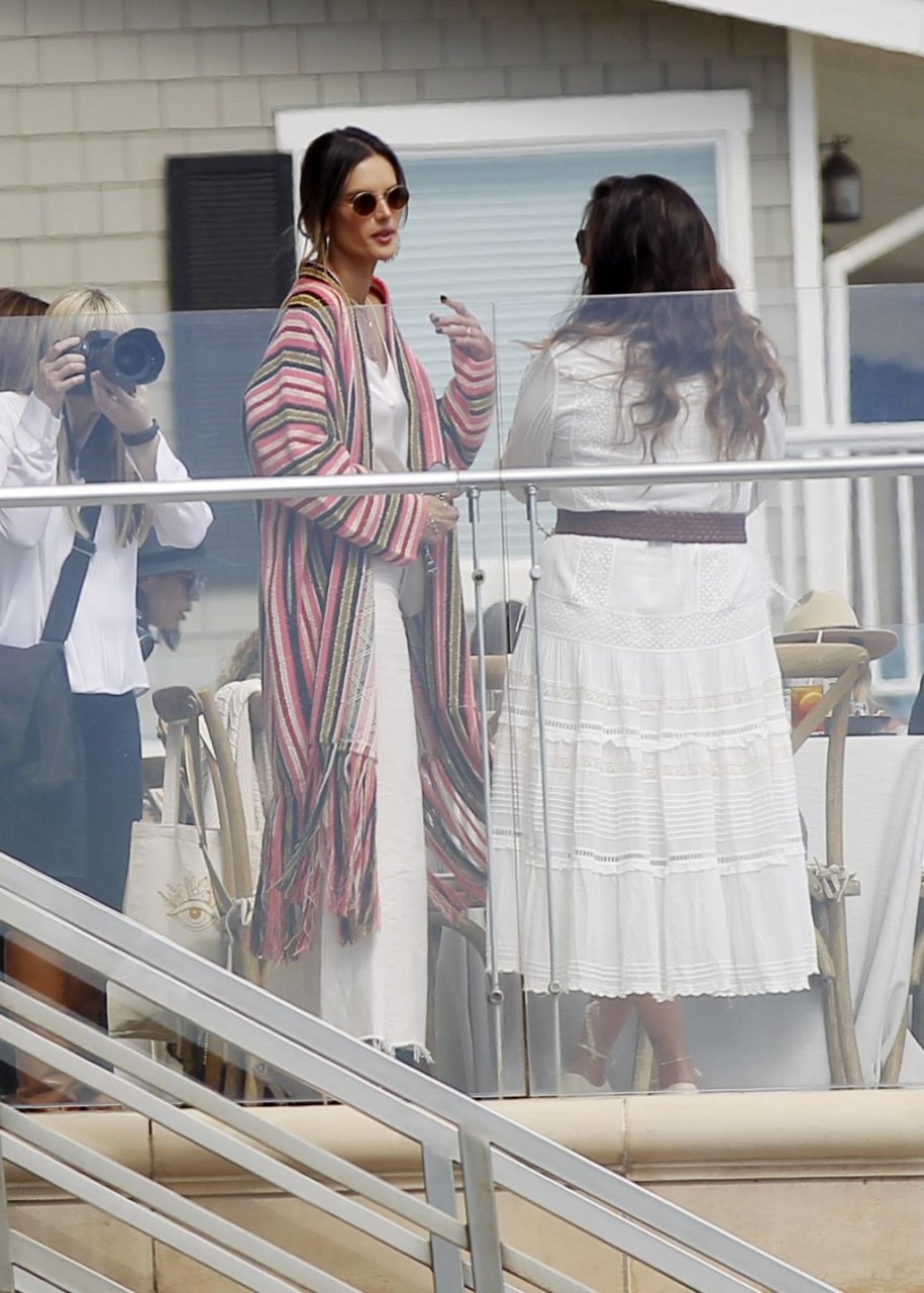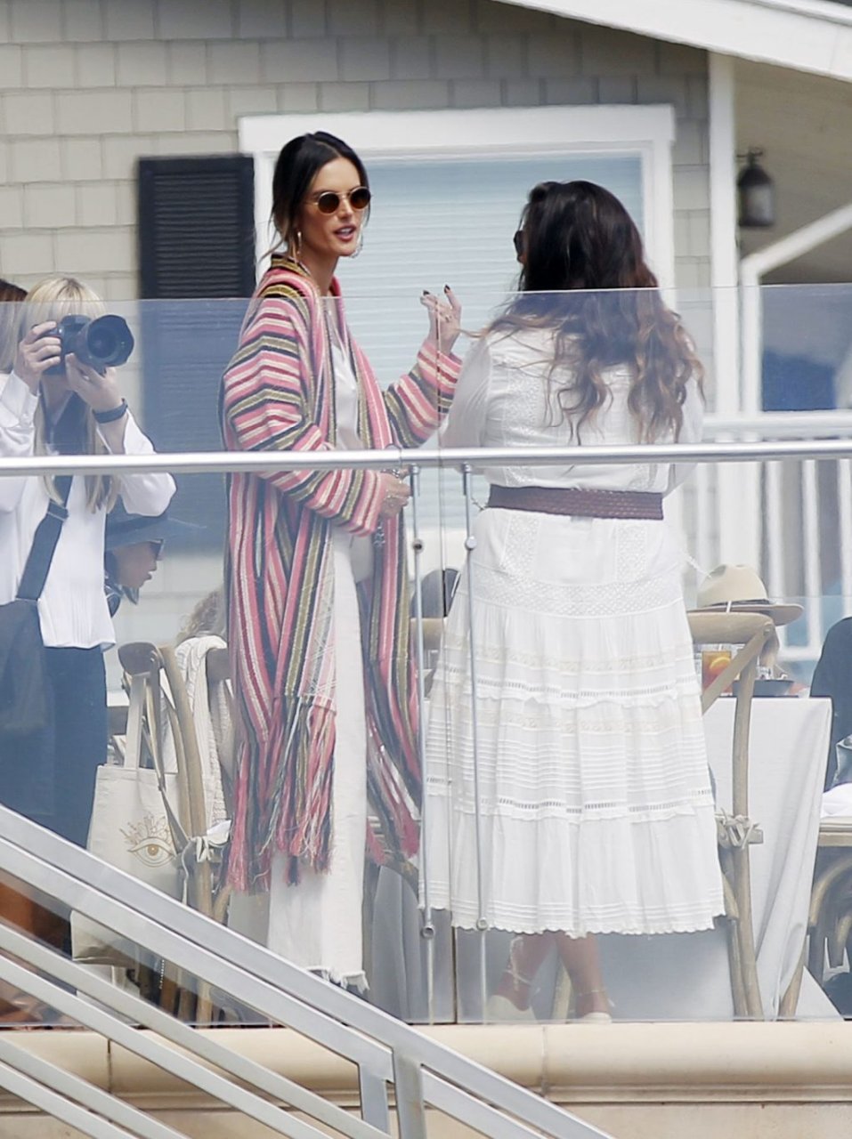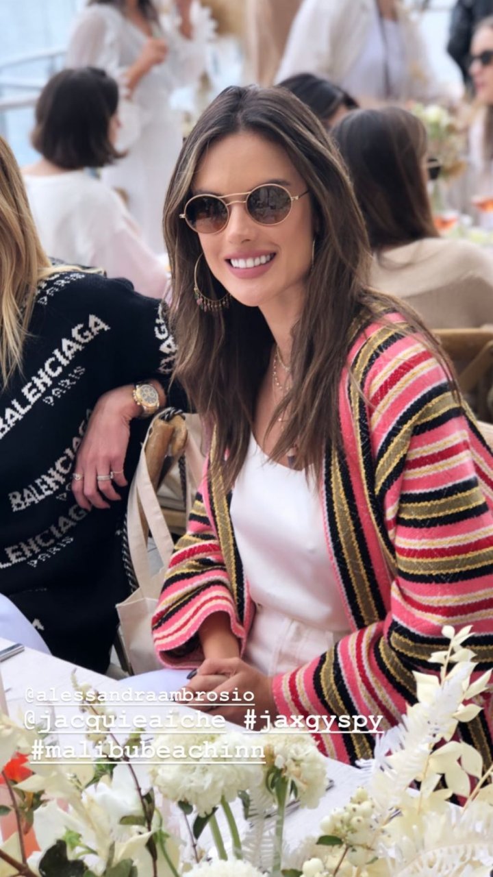 Alessandra Ambrosio tira algumas fotos com amiga após participar do Brunch Cigano de Jacquie Aiche no Malibu Beach Inn para celebrar o lançamento das novas coleções de joias finas feitas à mão, 21/03/2019.