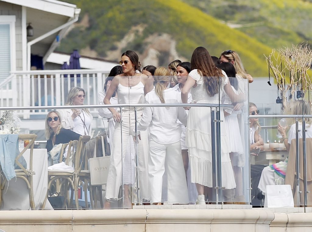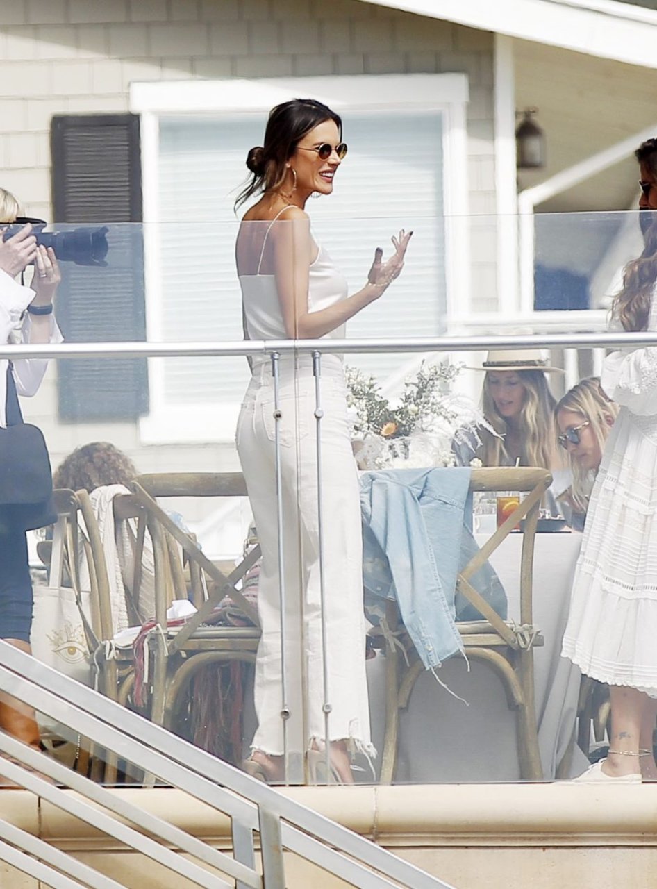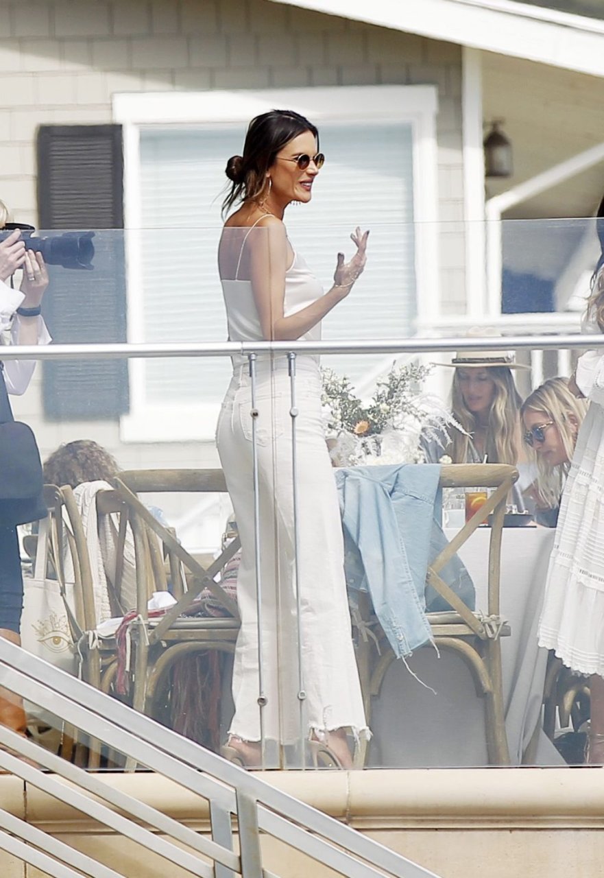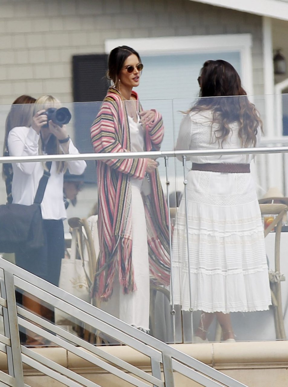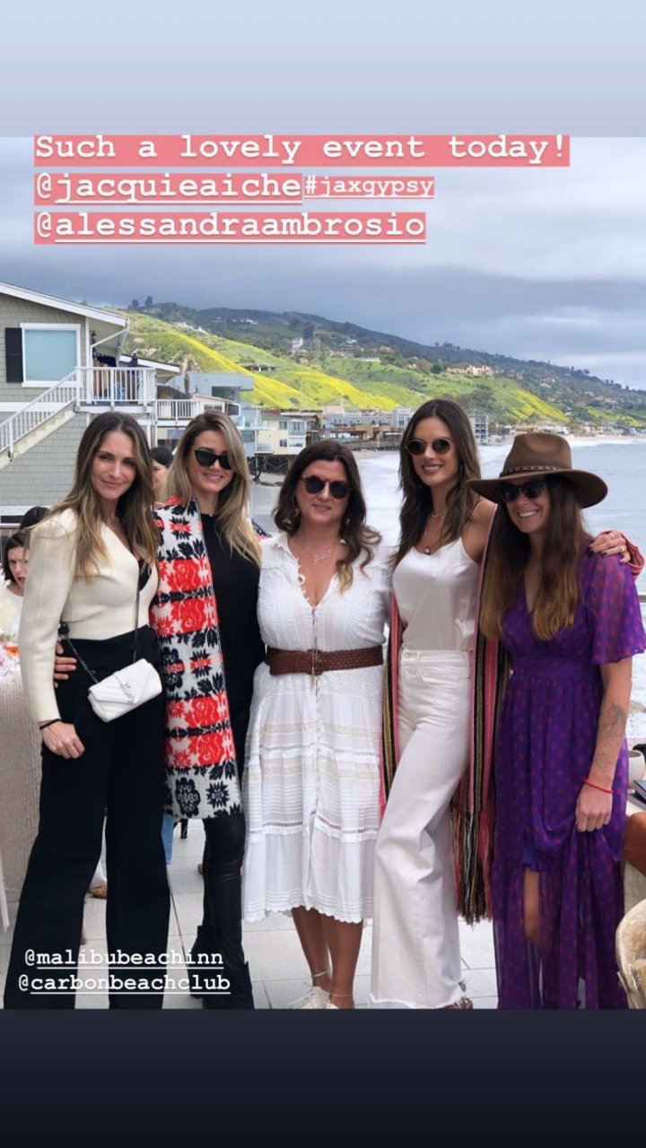 Alessandra Ambrosio tira algumas fotos com amiga após participar do Brunch Cigano de Jacquie Aiche no Malibu Beach Inn para celebrar o lançamento das novas coleções de joias finas feitas à mão, 21/03/2019.