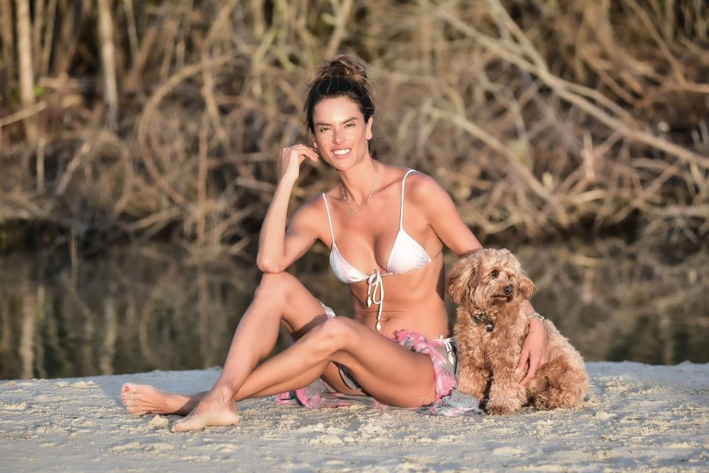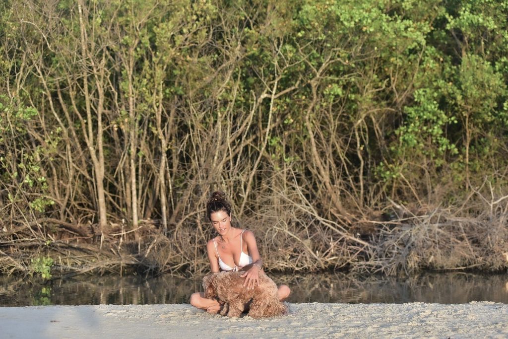 Alessandra Ambrosio posa em um ensaio fotográfico usando um biquíni pequeno de duas peças em Florianópolis, Brasil, 03/02/2021.