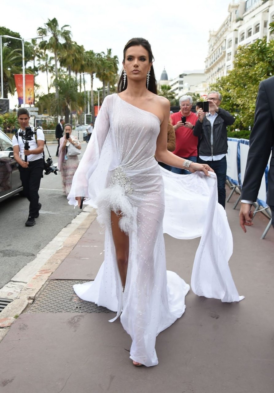 A supermodelo brasileira de pernas longas Alessandra Ambrosio foi vista em um vestido lindo no 72º Festival de Cinema de Cannes na França, 14/05/2019.
