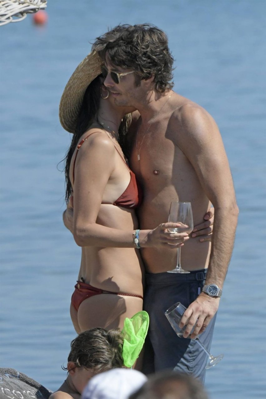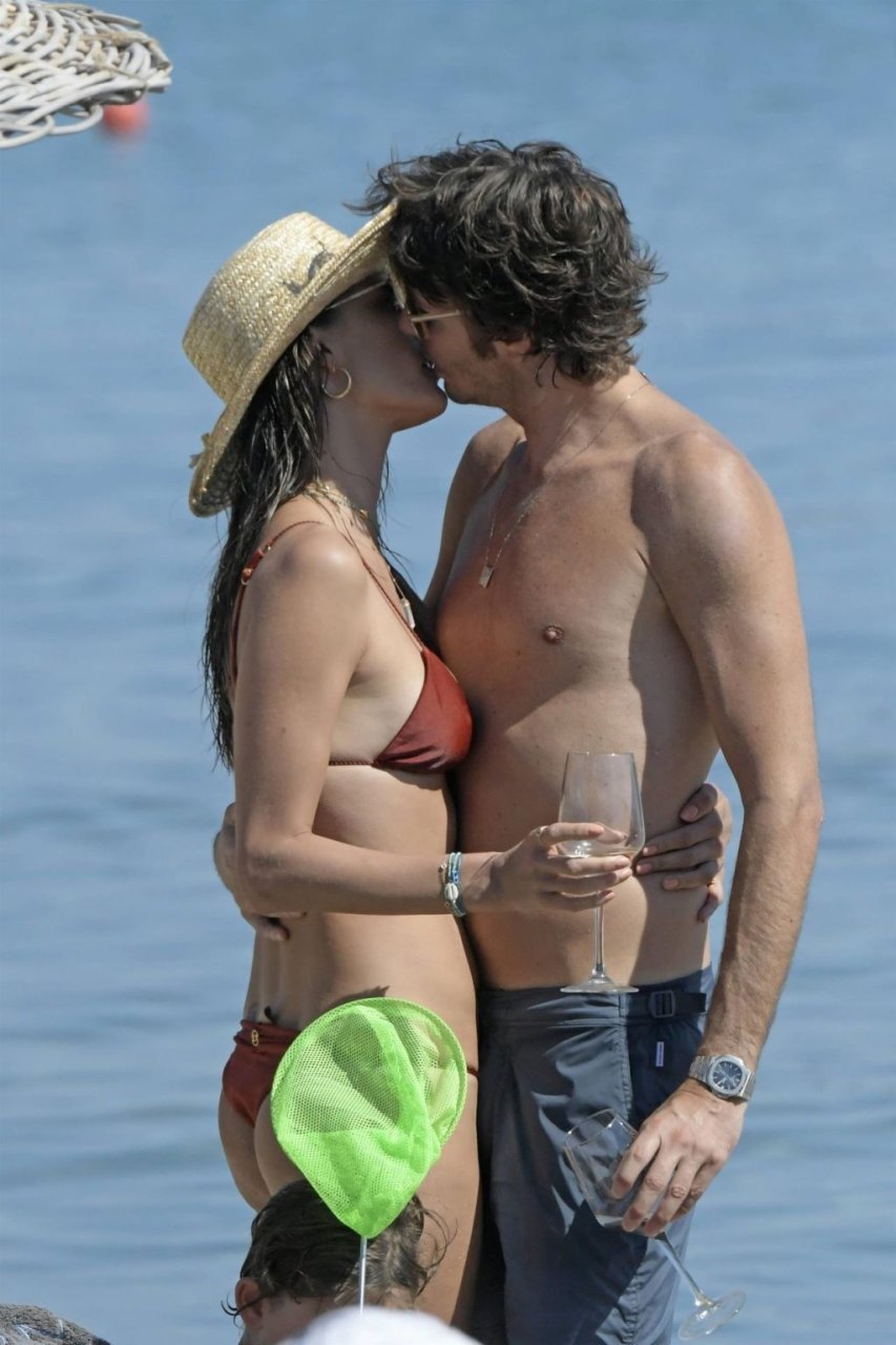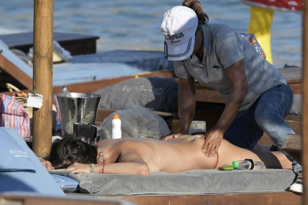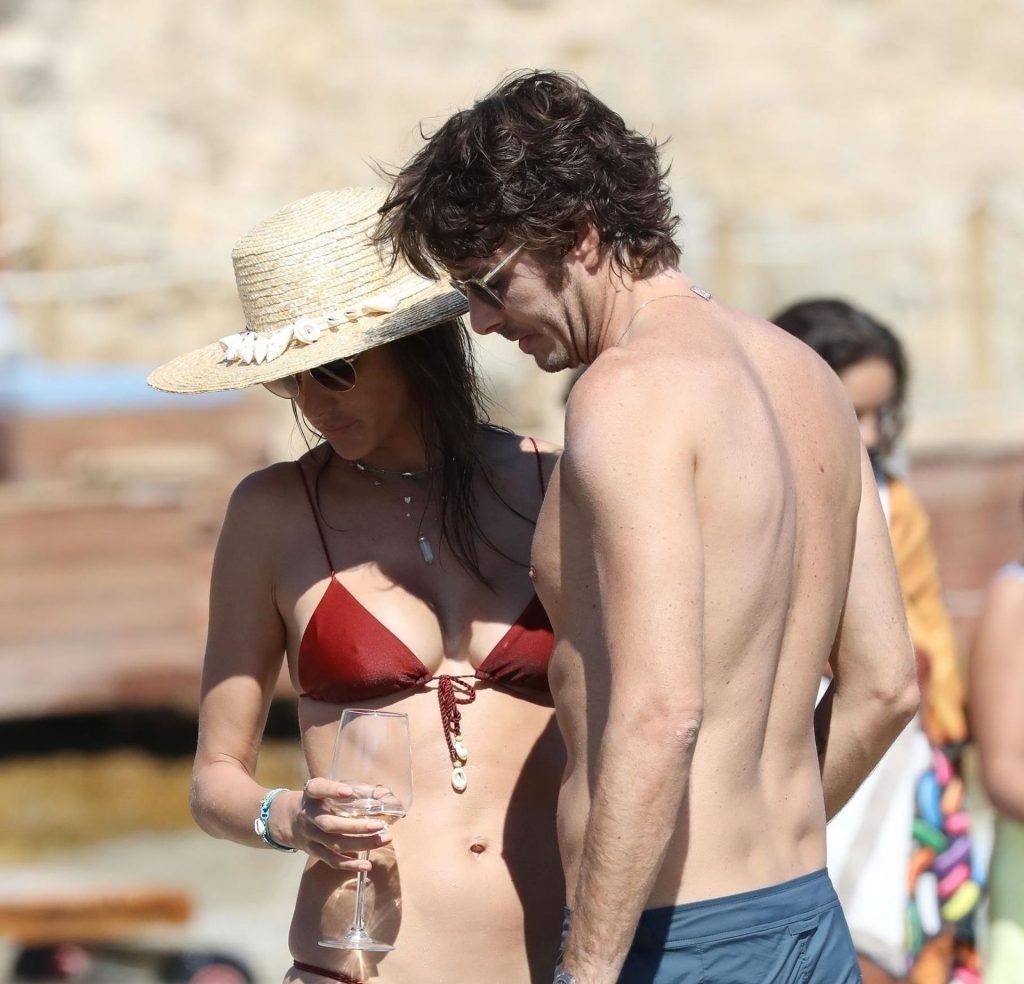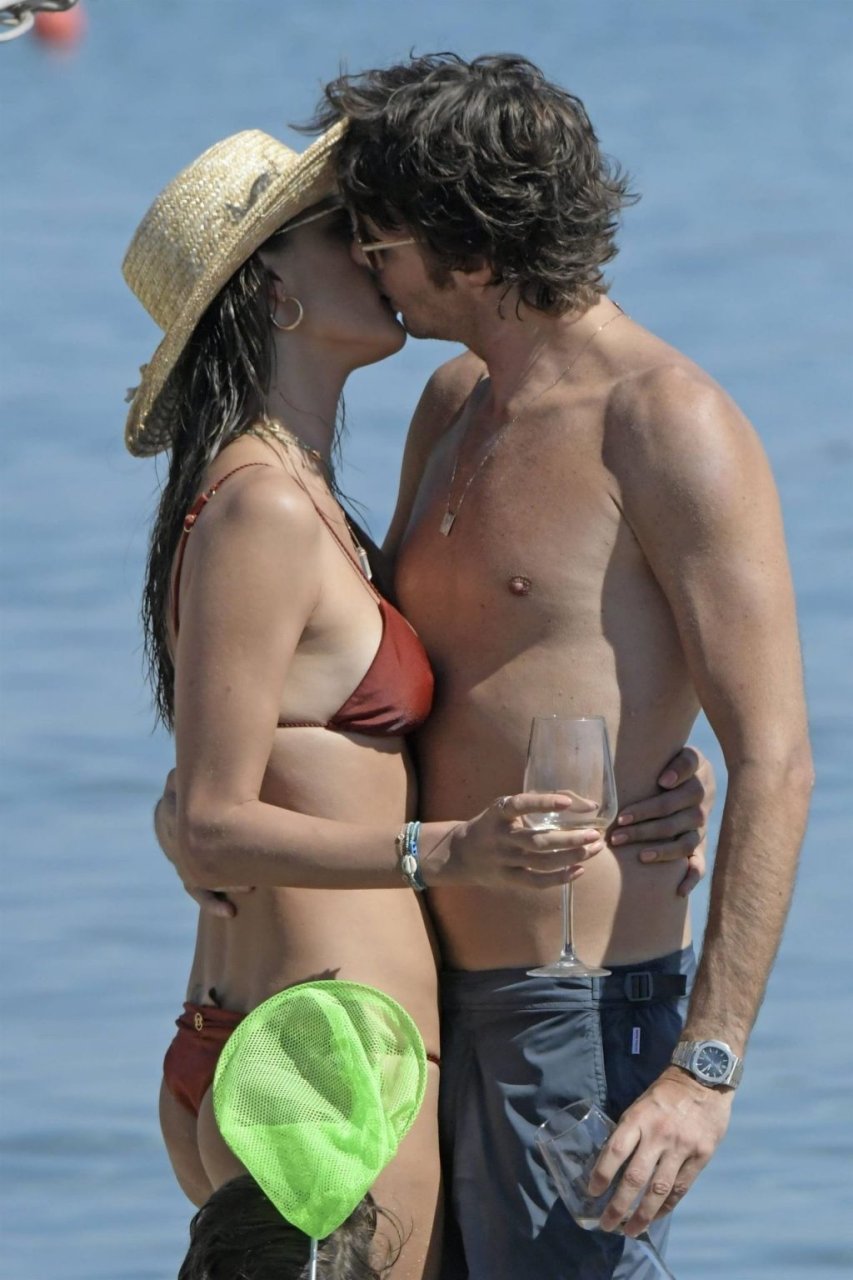 A supermodelo Alessandra Ambrosio e seu novo namorado Nicolo Oddi foram vistos em Mykonos junto com seus amigos Ana Beatriz Barros e seu marido empresário Karim El Chiaty, além do ex-noivo de Ambrosio, Jamie Mazur, e seus filhos Anja e Noah, em 13/07/2019.
