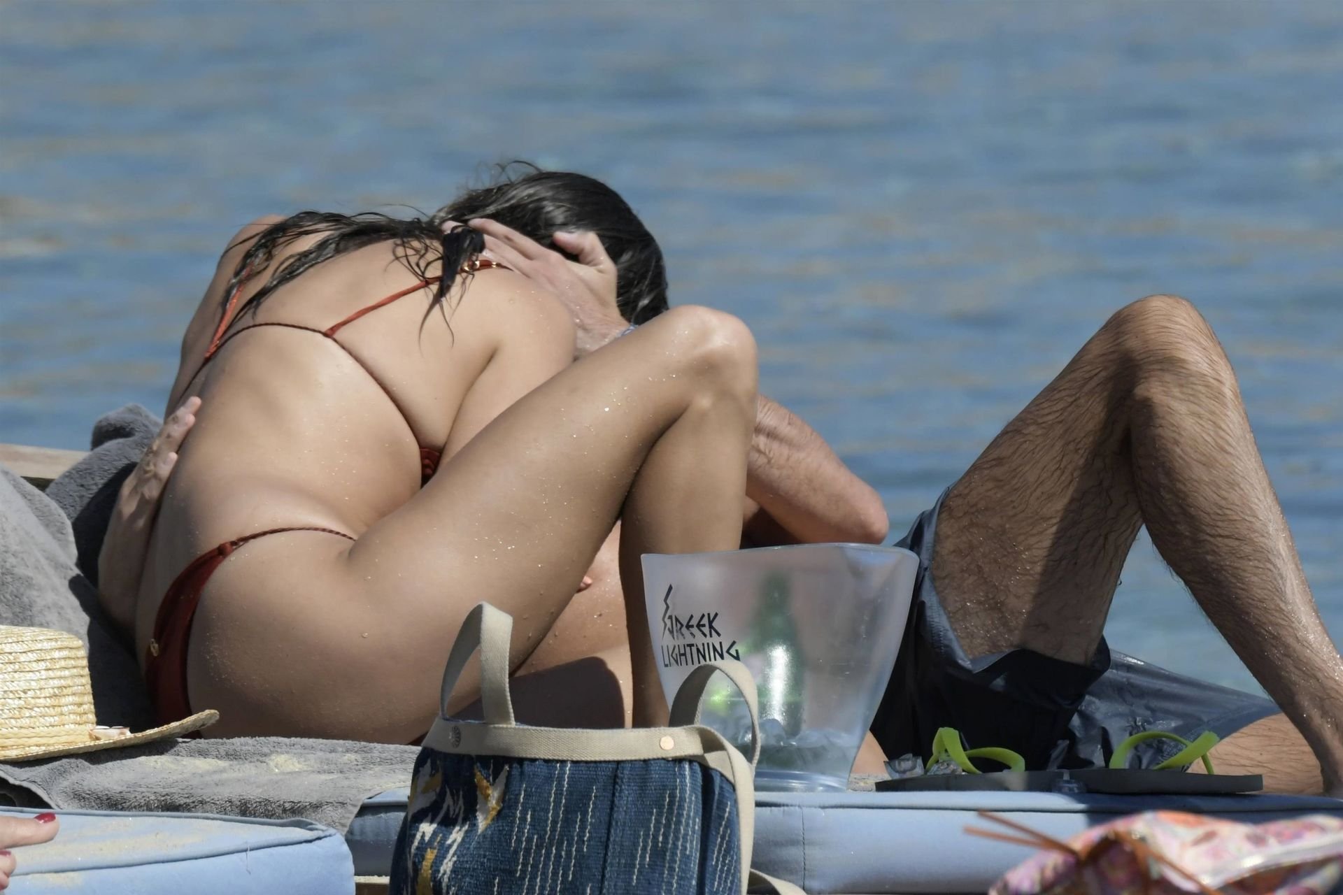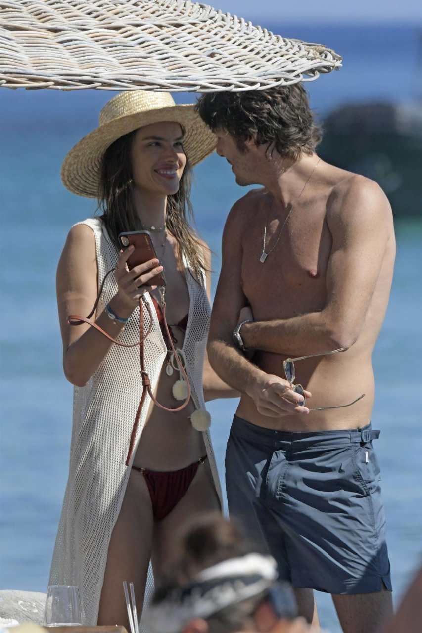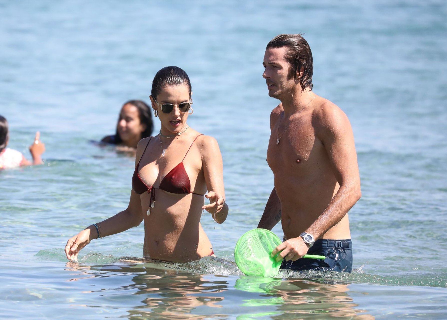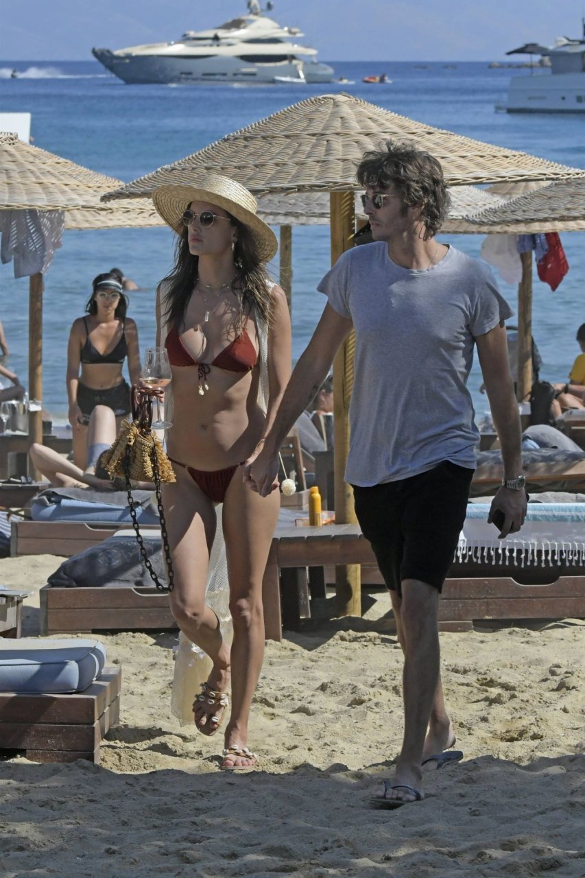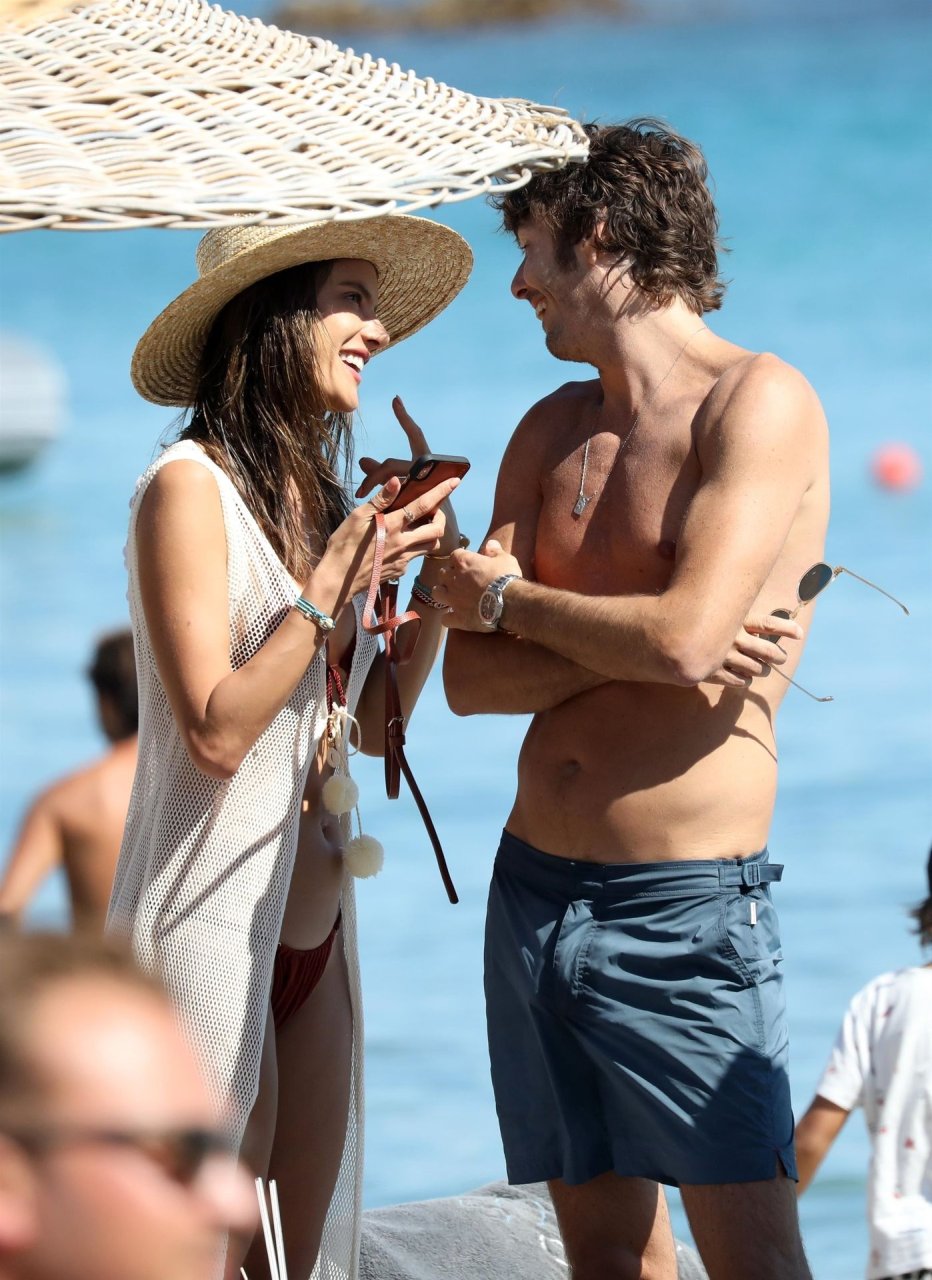 A supermodelo Alessandra Ambrosio e seu novo namorado Nicolo Oddi foram vistos em Mykonos junto com seus amigos Ana Beatriz Barros e seu marido empresário Karim El Chiaty, além do ex-noivo de Ambrosio, Jamie Mazur, e seus filhos Anja e Noah, em 13/07/2019.
