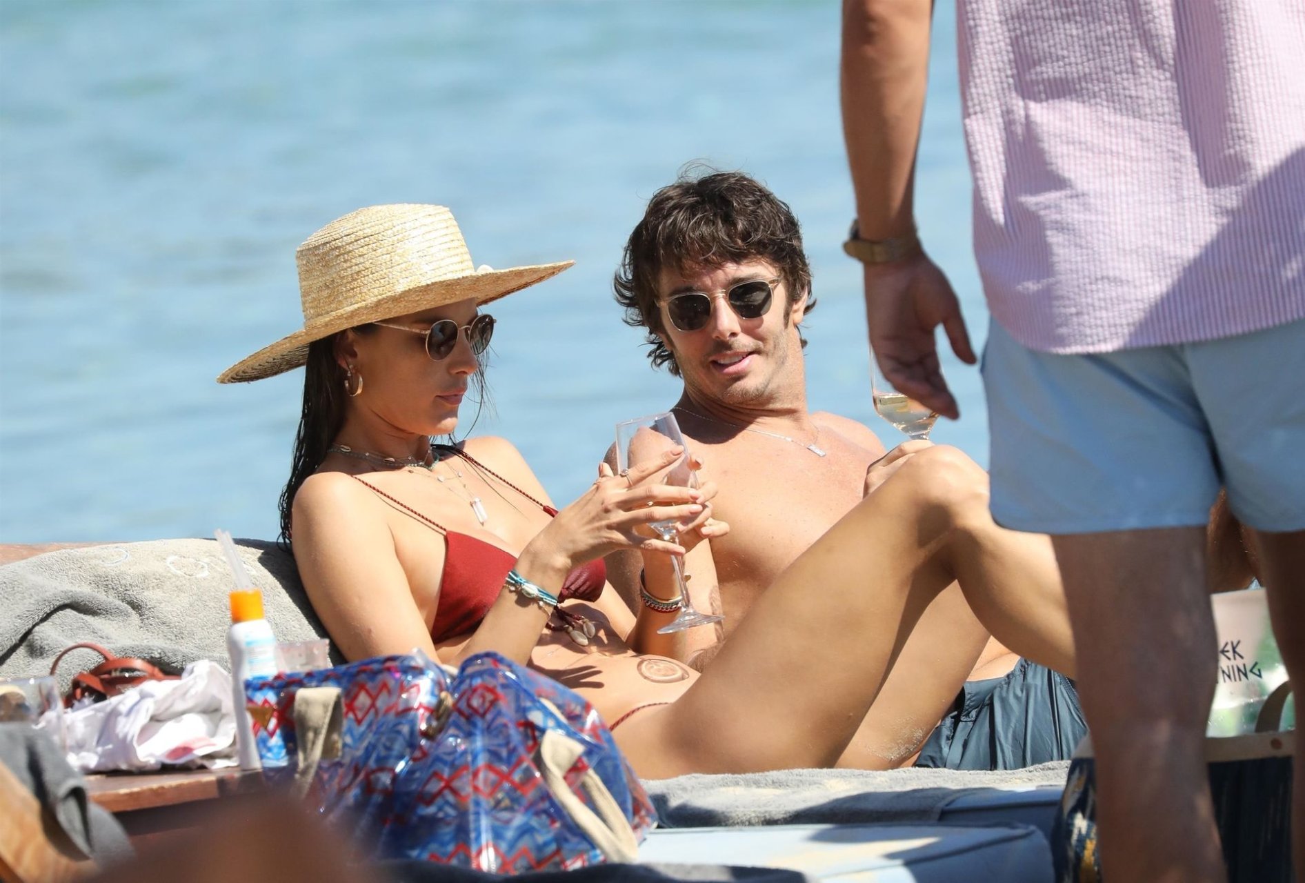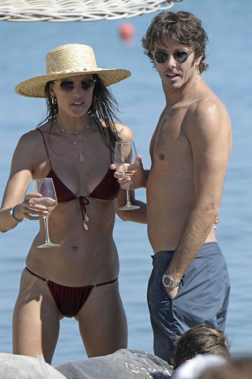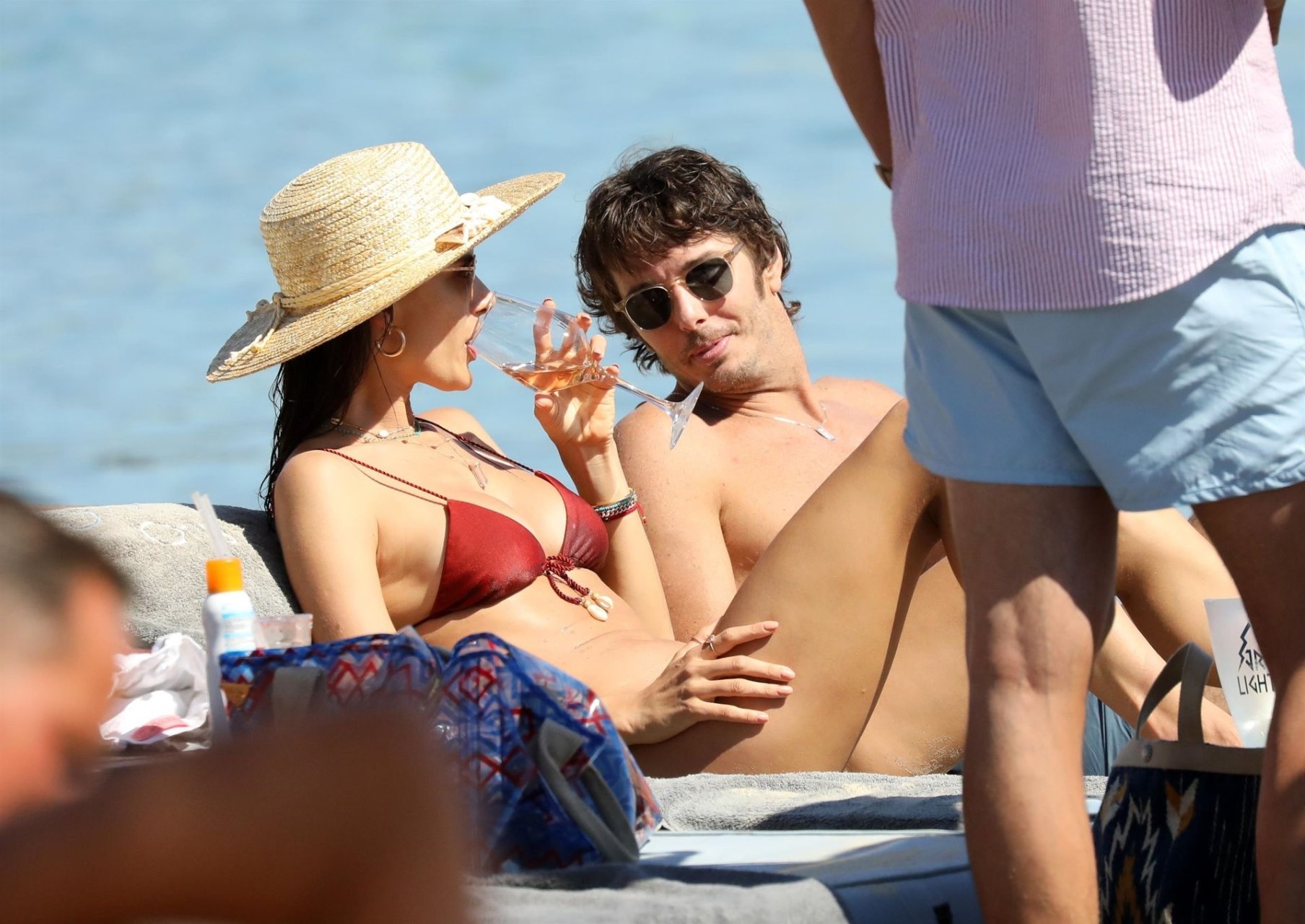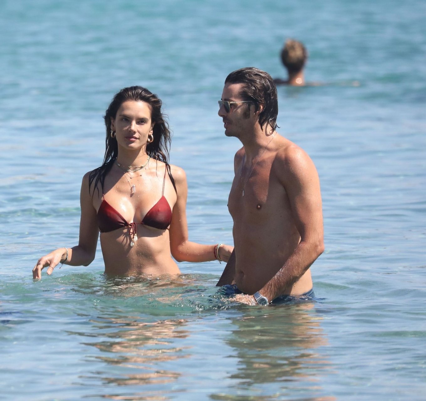 A supermodelo Alessandra Ambrosio e seu novo namorado Nicolo Oddi foram vistos em Mykonos junto com seus amigos Ana Beatriz Barros e seu marido empresário Karim El Chiaty, além do ex-noivo de Ambrosio, Jamie Mazur, e seus filhos Anja e Noah, em 13/07/2019.