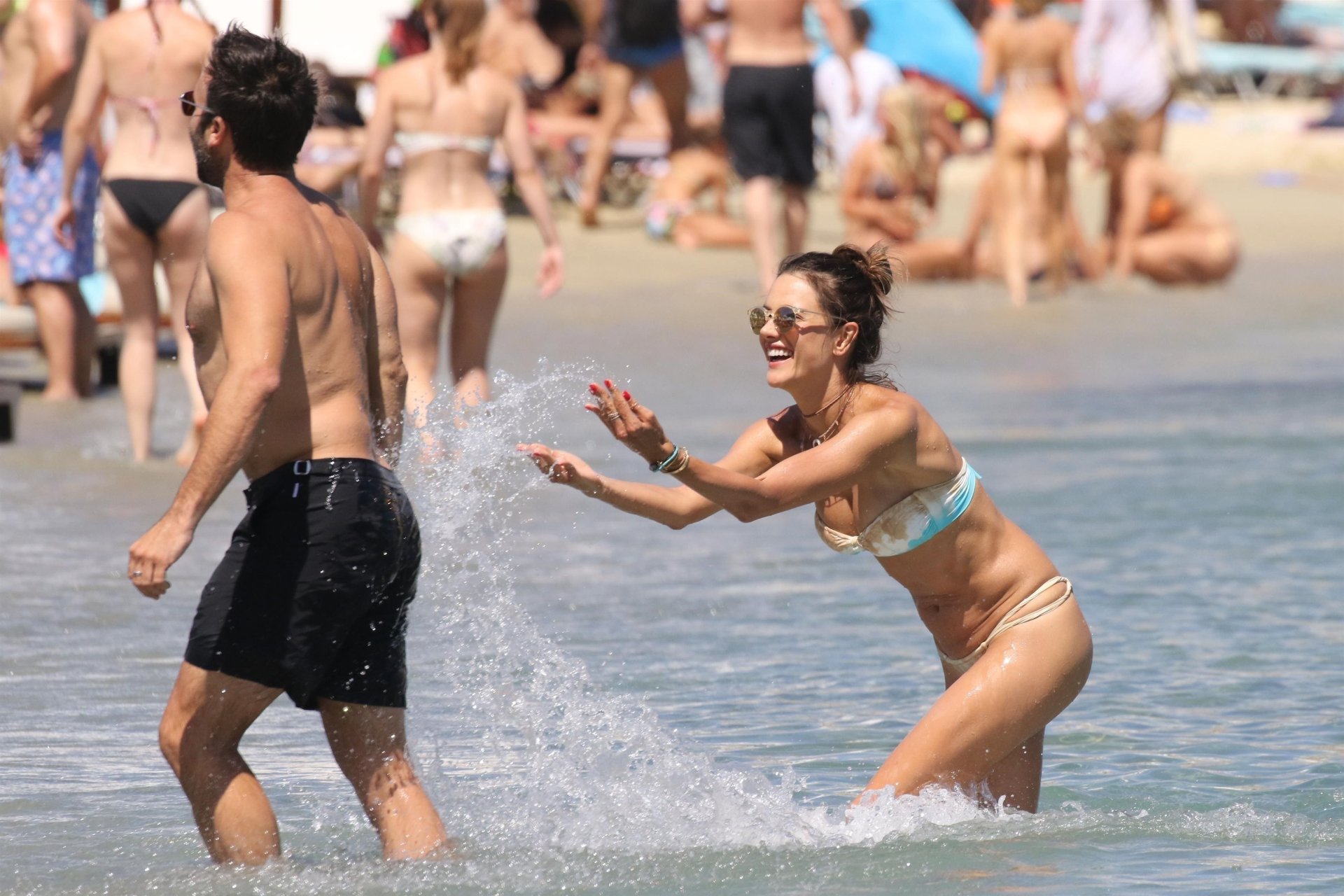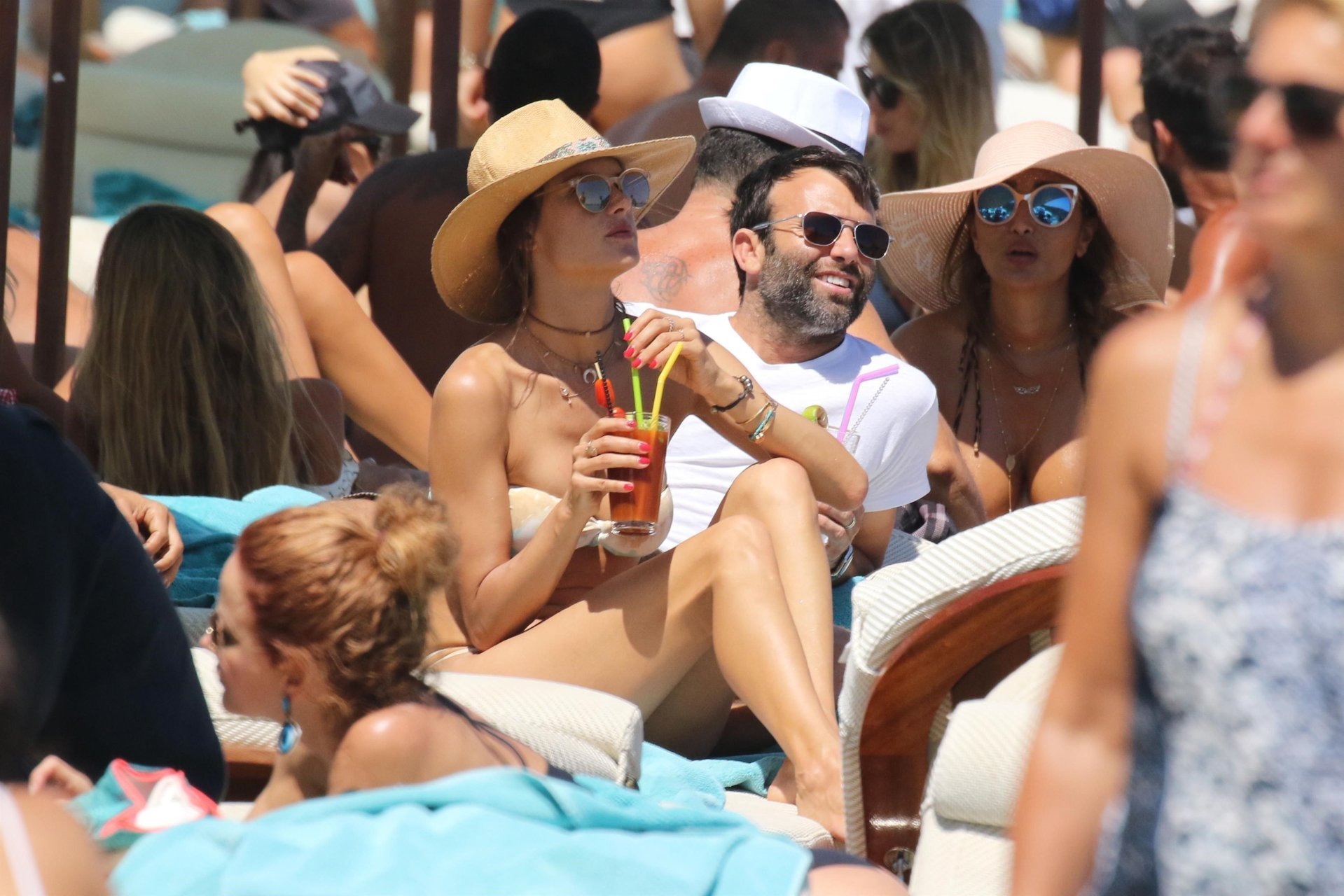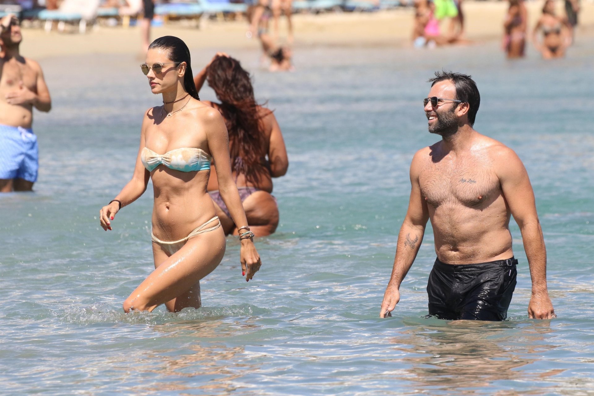 Alessandra Ambrosio e Jamie Mazur aproveitam um dia na praia em Mykonos, 07/05/2017. Alessandra Ambrosio é uma supermodelo brasileira, atriz (Gossip Girl (Série de TV), 2010). Idade: 36.