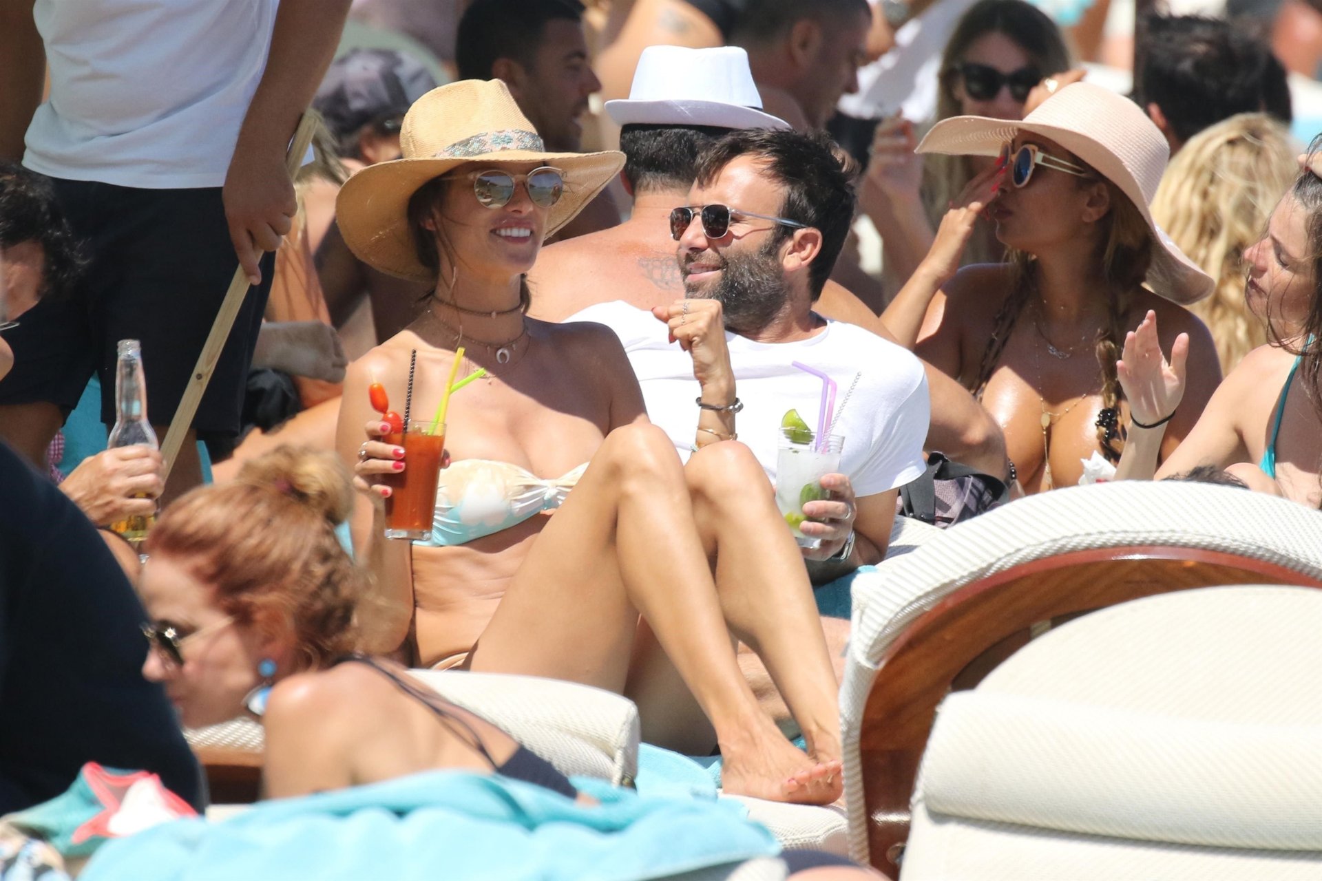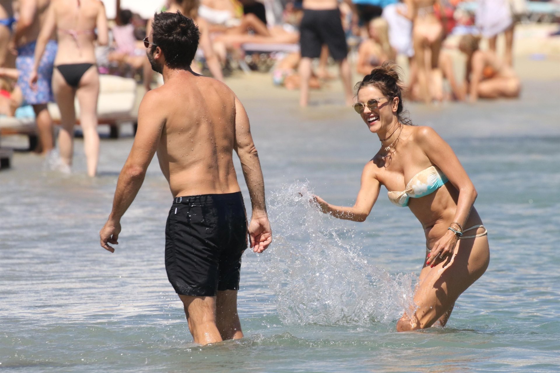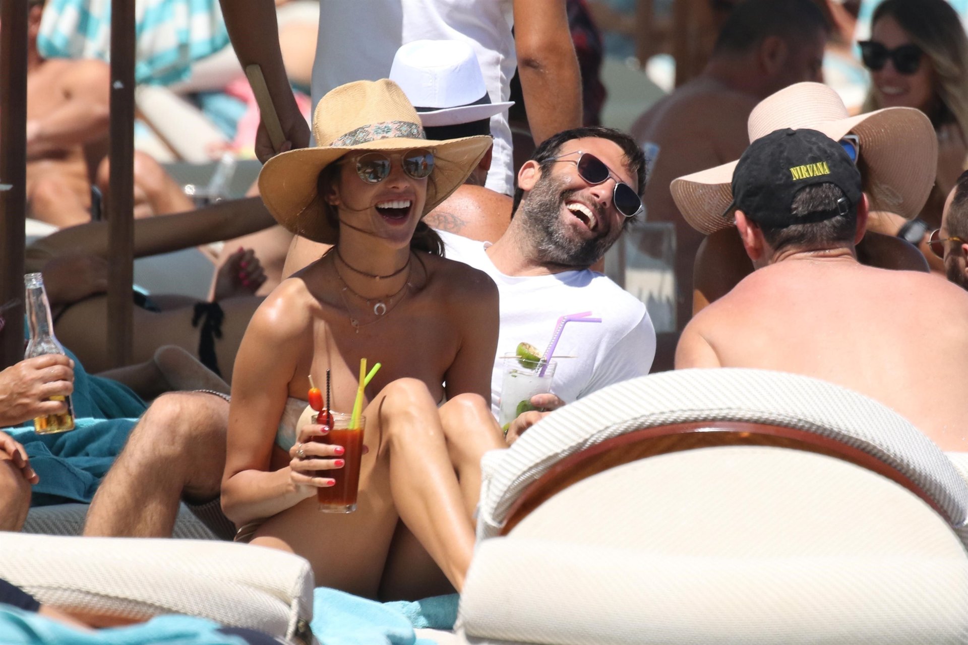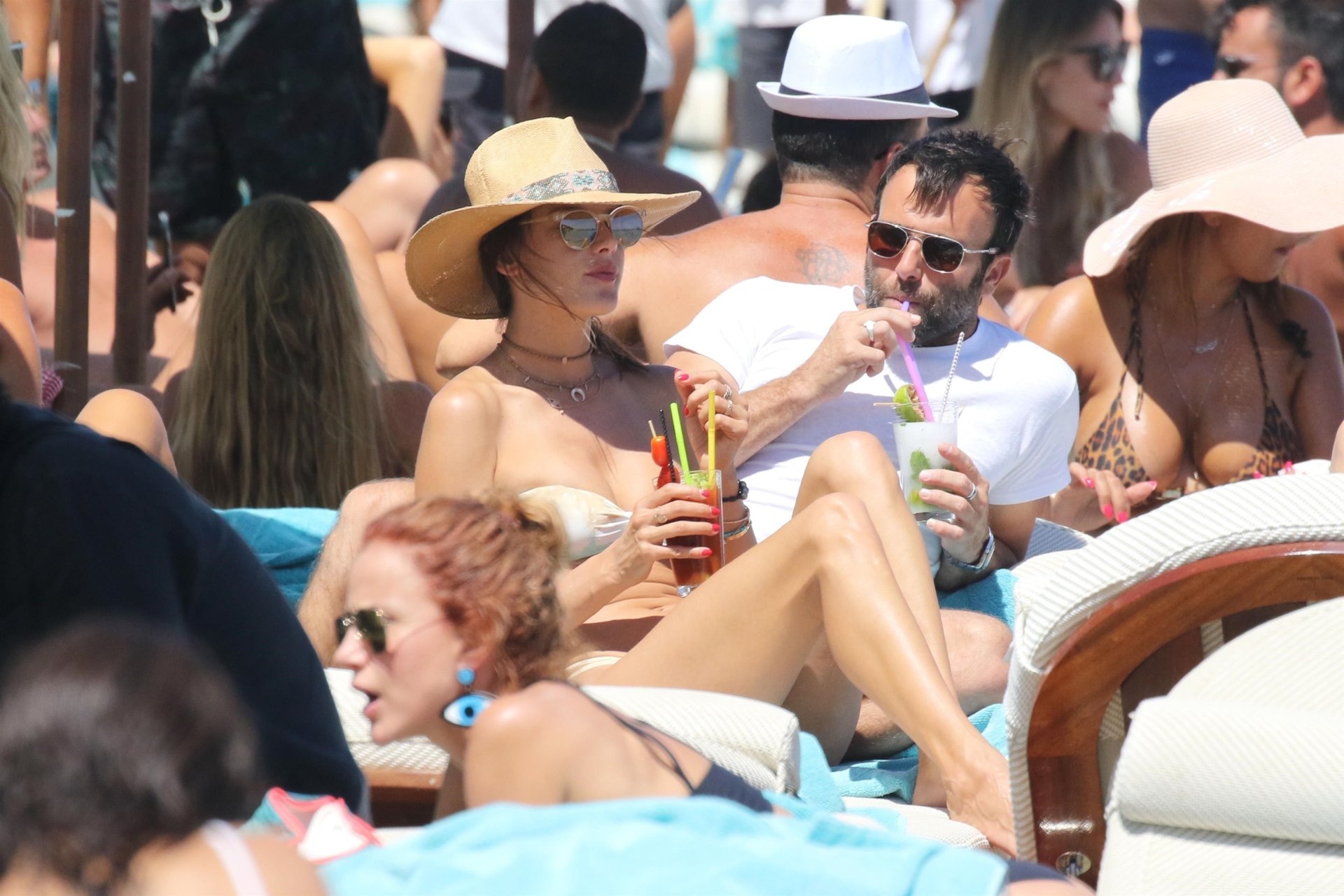Alessandra Ambrosio e Jamie Mazur aproveitam um dia na praia em Mykonos, 07/05/2017. Alessandra Ambrosio é uma supermodelo brasileira, atriz (Gossip Girl (Série de TV), 2010). Idade: 36.