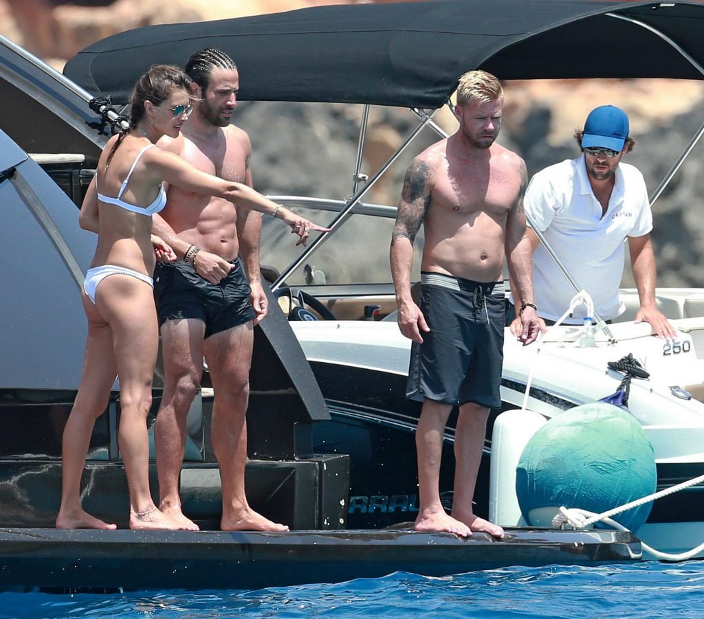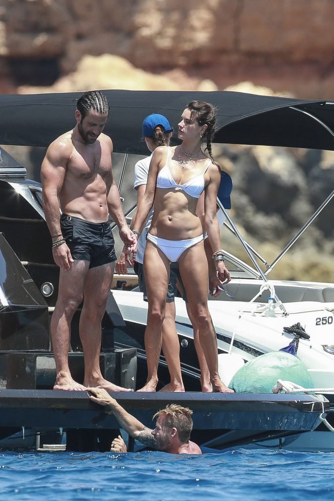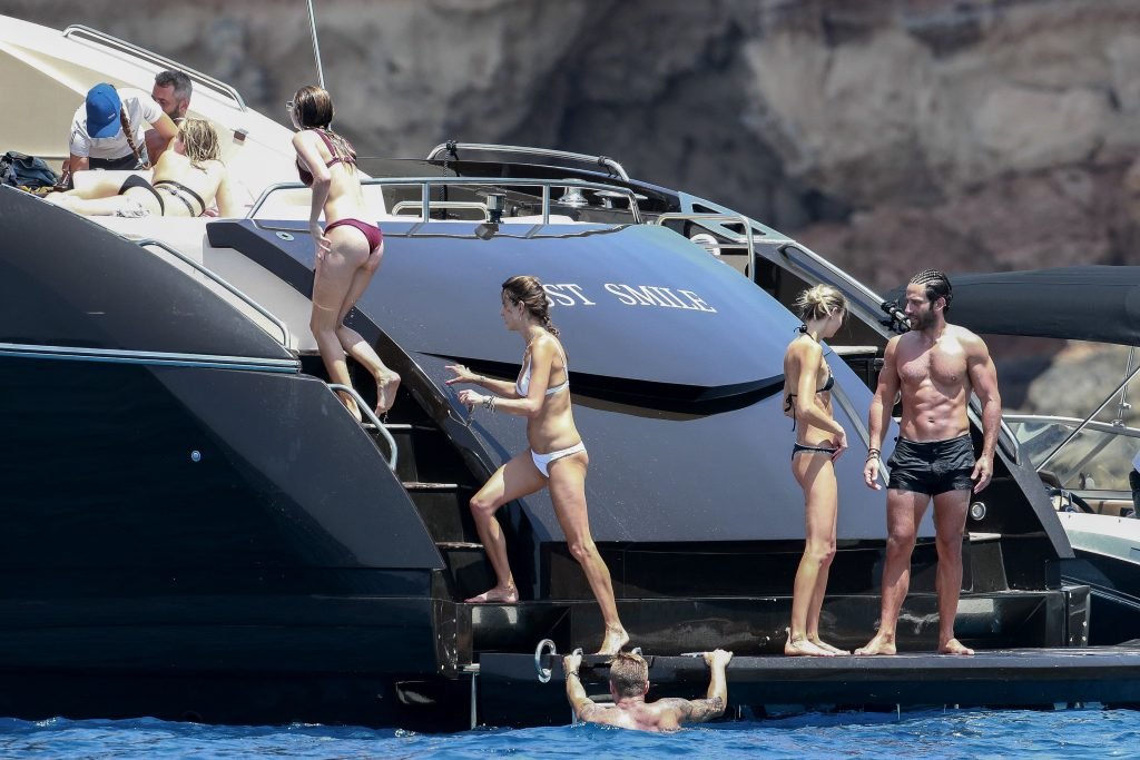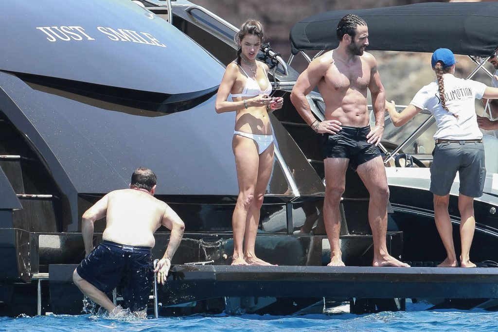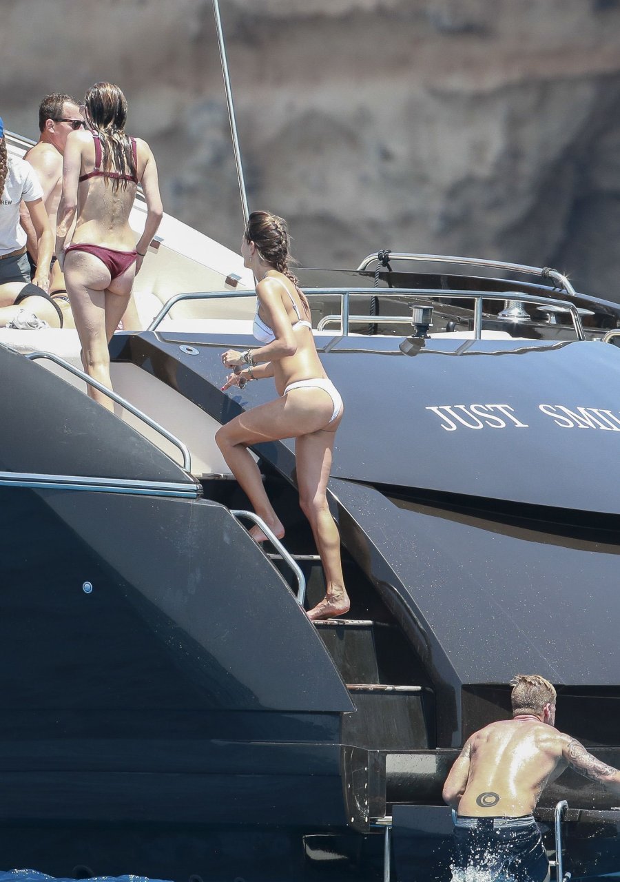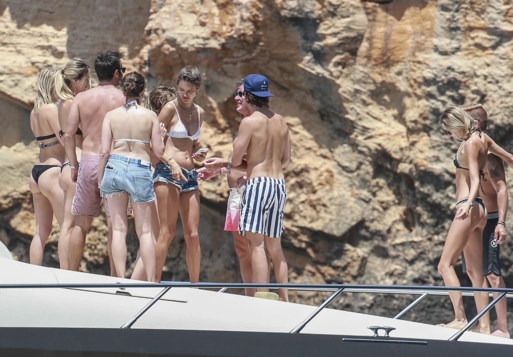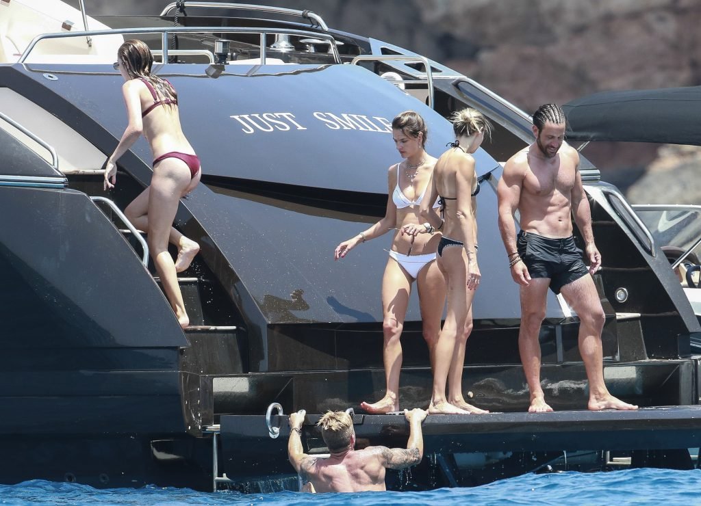 Supermodelo Alessandra Ambrosio com o noivo Jamie Mazur, Talita Correa, Ludi Delfino e outros amigos aproveitaram um belo barco durante as férias em Ibiza, 11/07/2017.