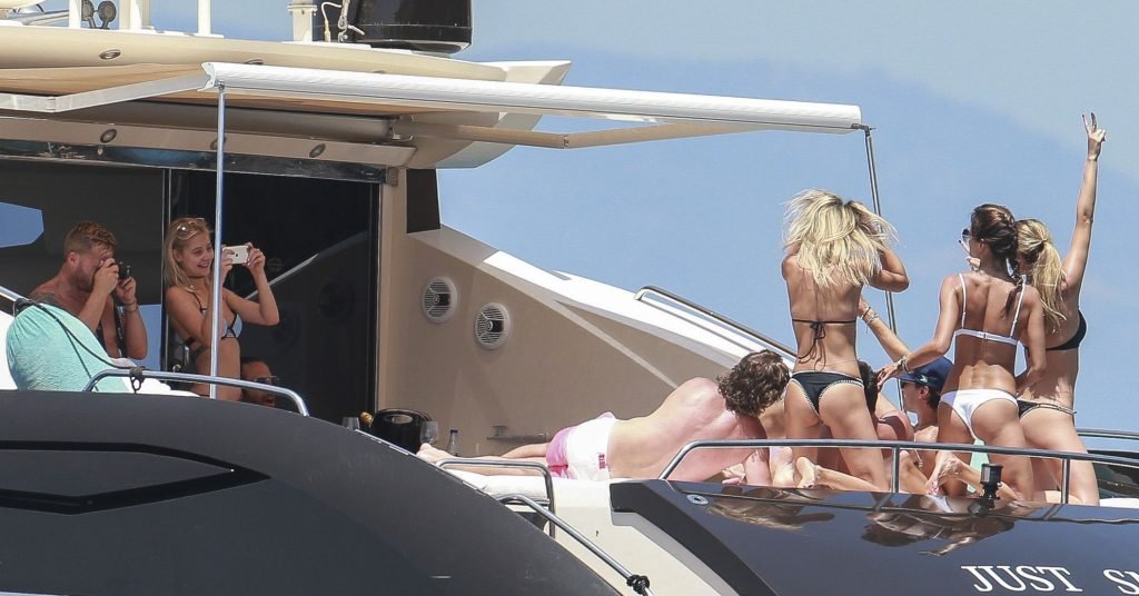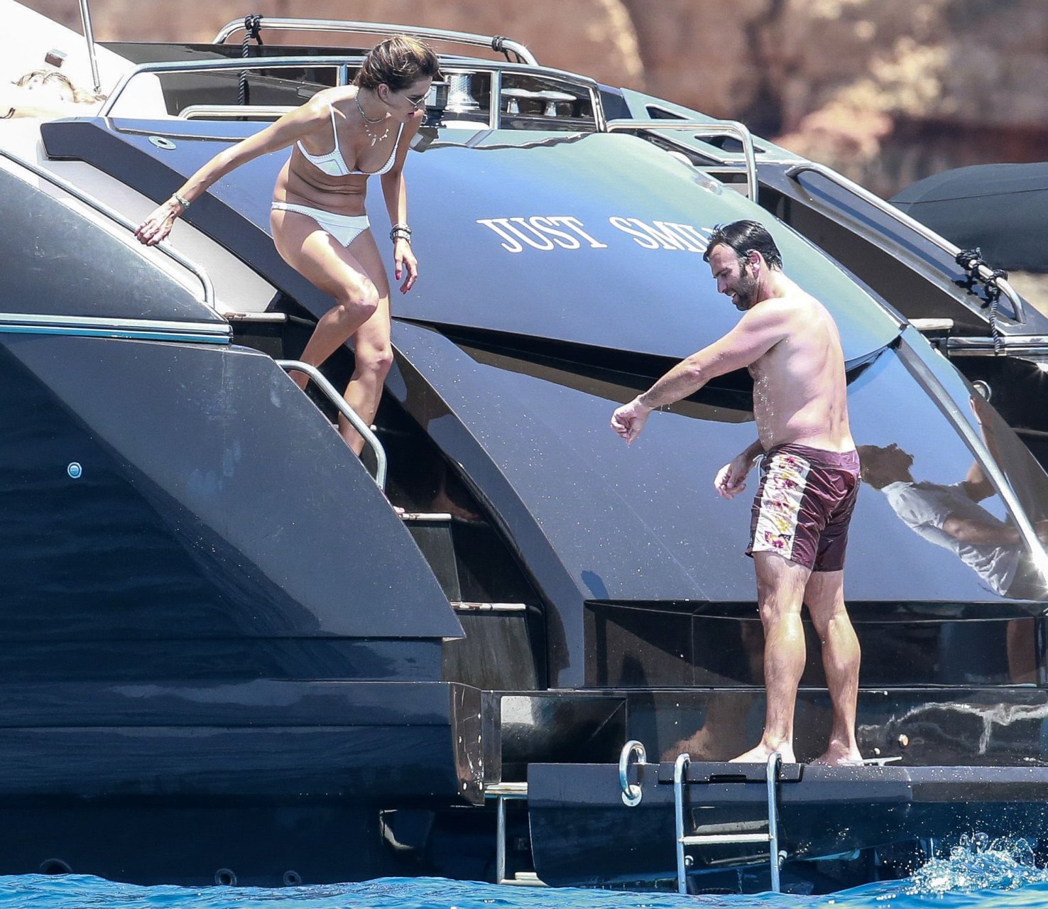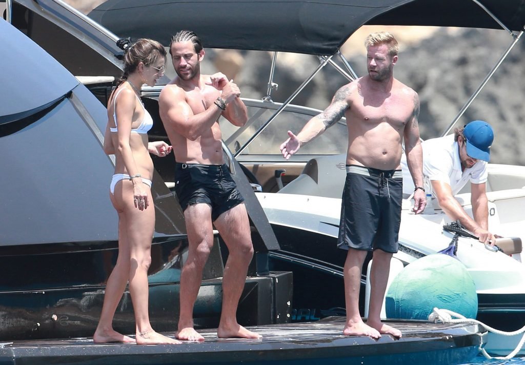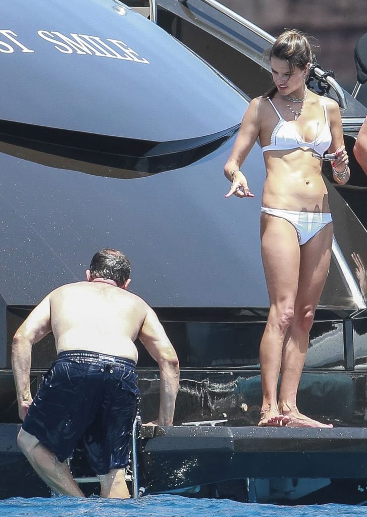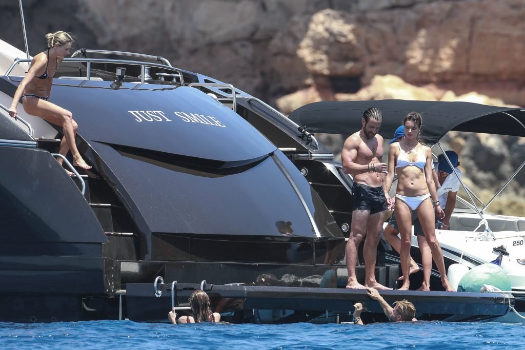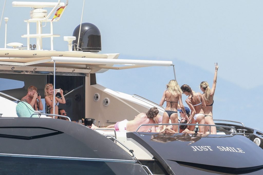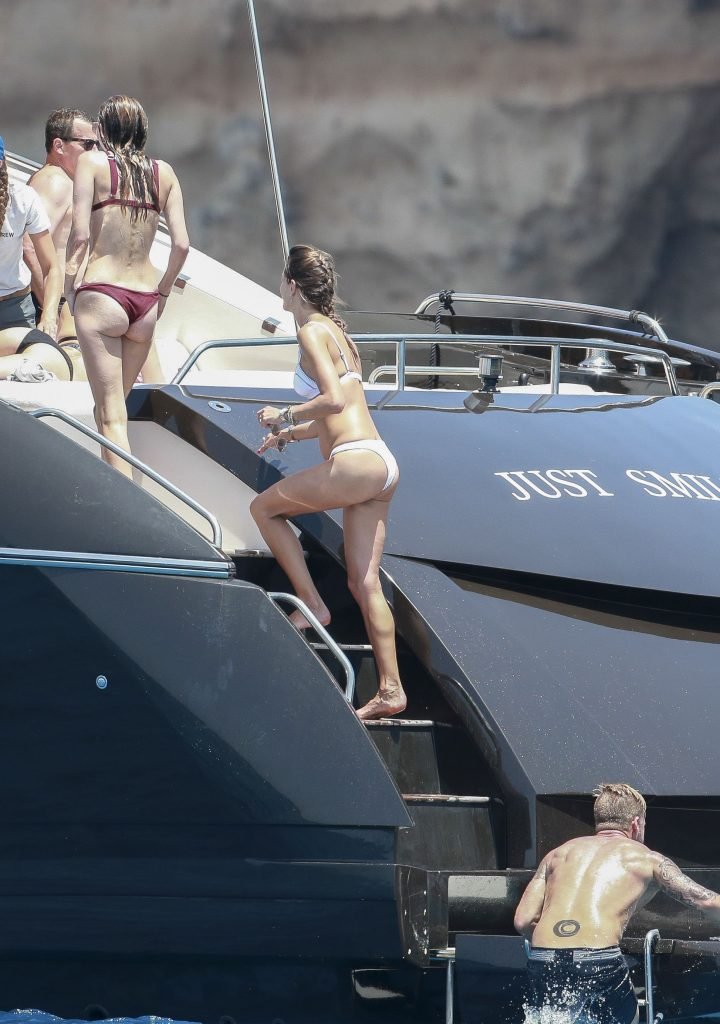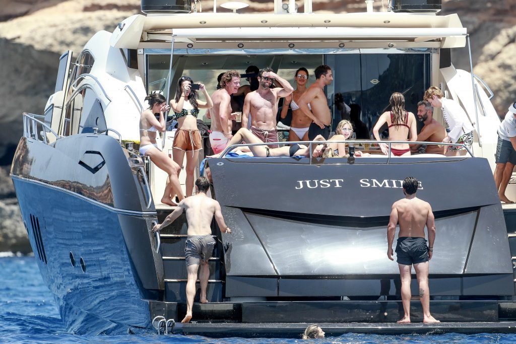 Supermodelo Alessandra Ambrosio com o noivo Jamie Mazur, Talita Correa, Ludi Delfino e outros amigos aproveitaram um belo barco durante as férias em Ibiza, 11/07/2017.