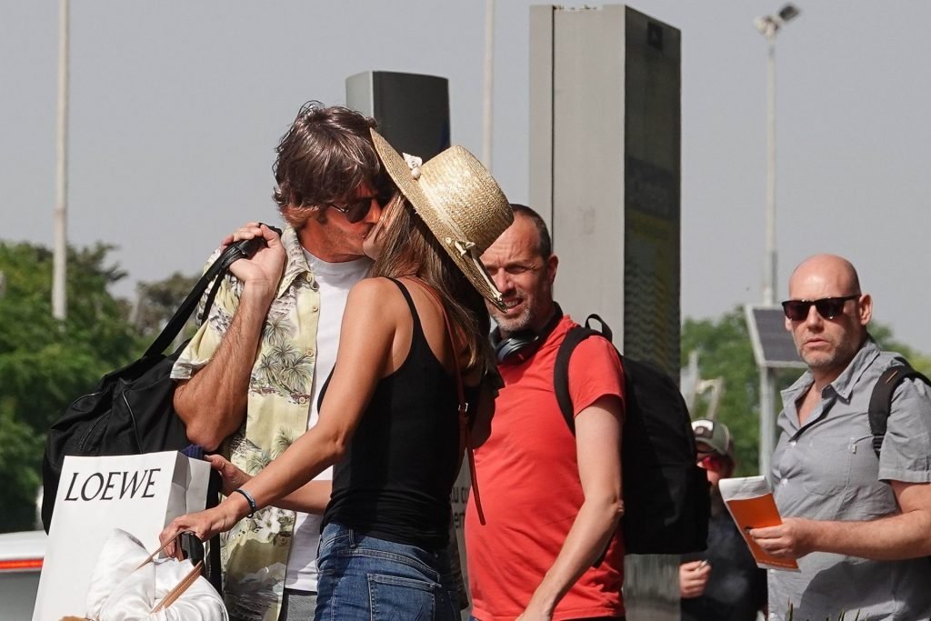 A modelo brasileira Alessandra Ambrosio chegou ao Aeroporto de Ibiza compartilhando um momento íntimo e apaixonado com o namorado, o estilista Nicolo Oddi, enquanto o casal começa suas férias juntos na ilha espanhola, 07/08/2019.
