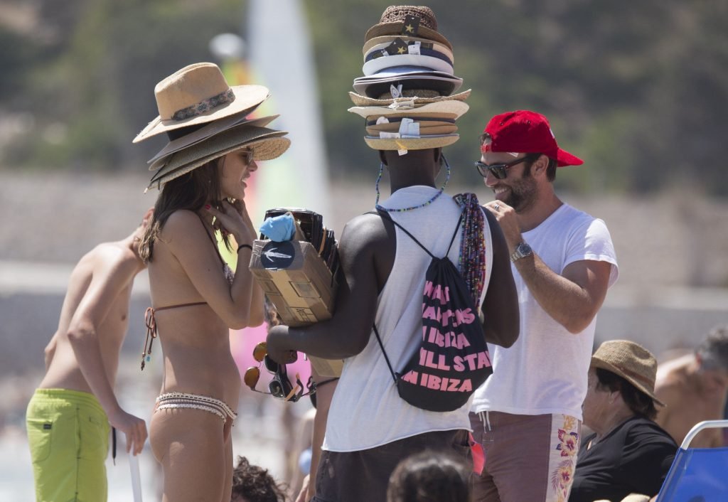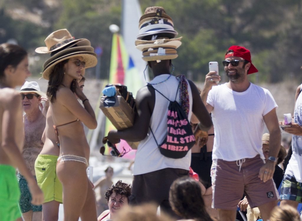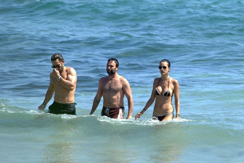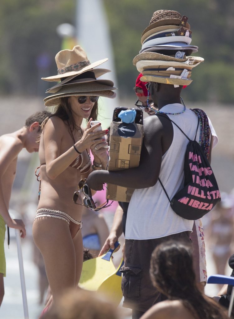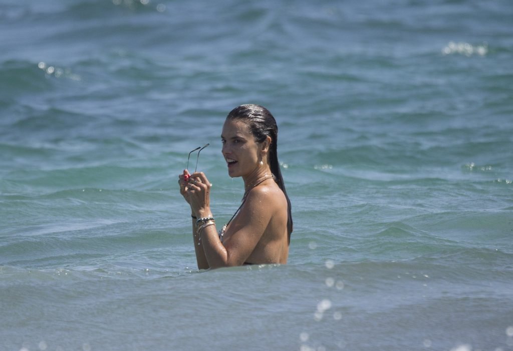 A brasileira Alessandra Ambrosio, de 30 anos, passa um dia com amigos na praia em Ibiza, 09/07/2017. Alessandra Ambrosio é uma top model e atriz brasileira.