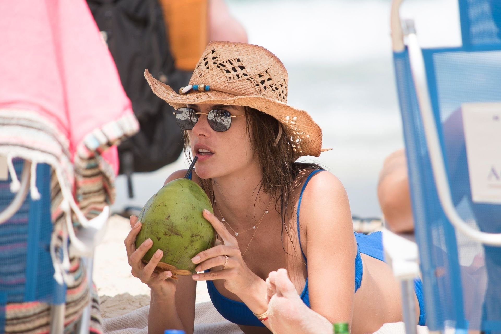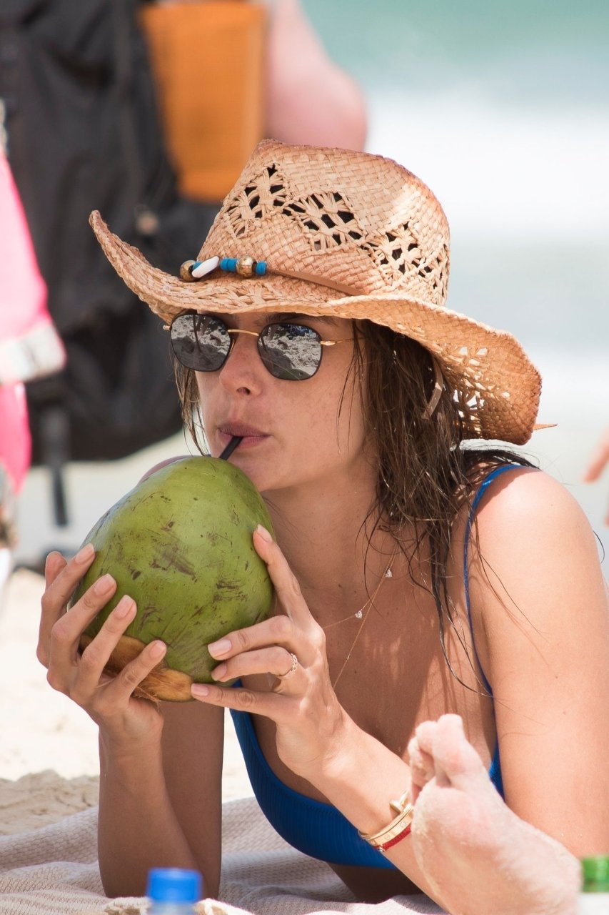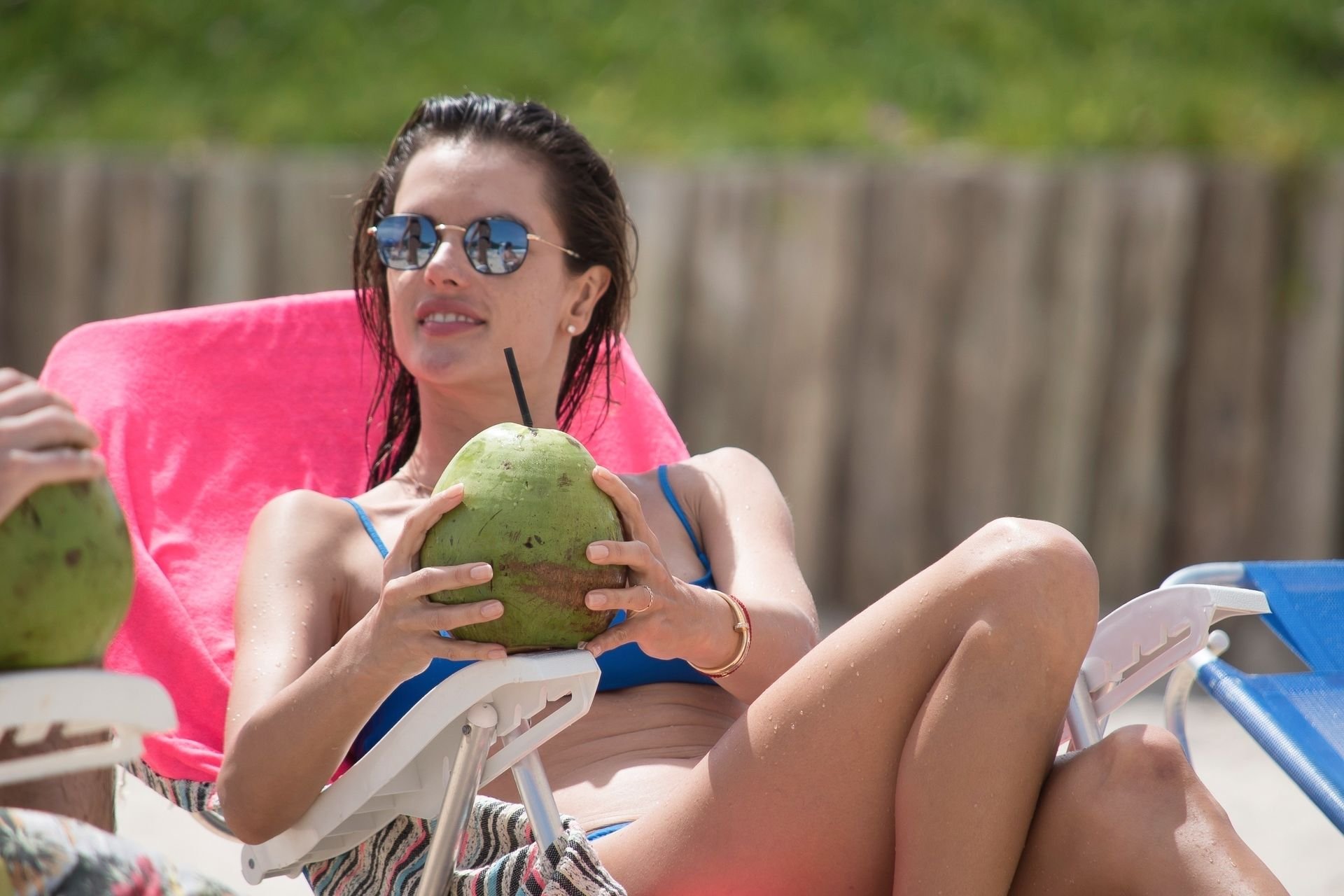 Alessandra Ambrosio aproveita um dia na praia com seu namorado Nicolo Oddi e amigos em Florianópolis, 26/12/2018. A beleza brasileira voou para casa para o feriado de Natal e está continuando sua estadia tropical. Alessandra estava sorridente enquanto aproveitava ao máximo o belo dia, bebendo um pouco de suco de coco fresco, aconchegando-se a Oddi e, mais tarde, tirando selfies com seus amigos.