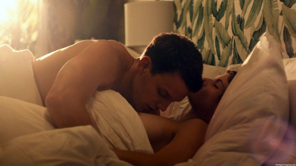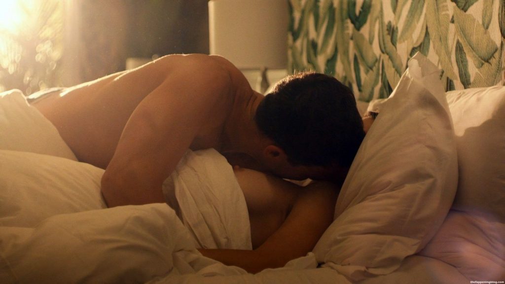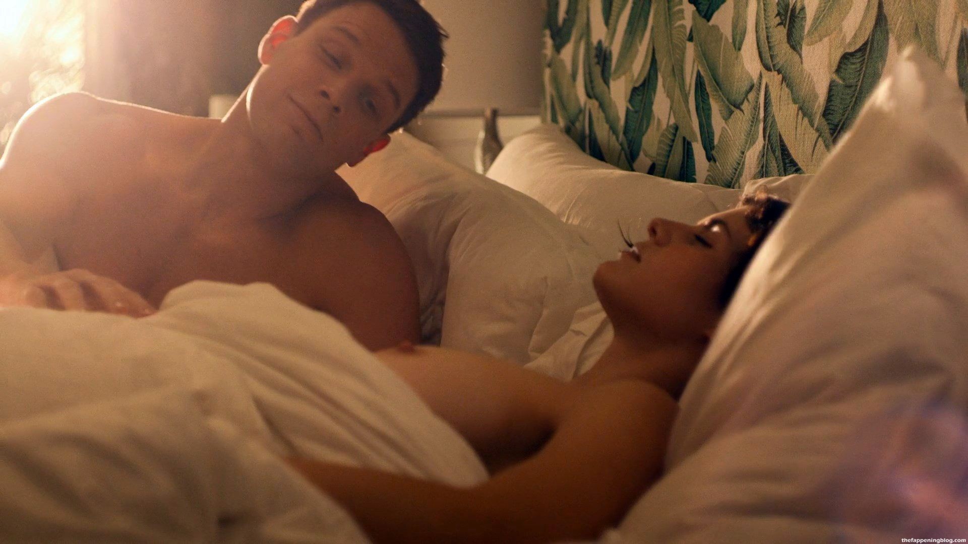 Alexandra Daddario está dormindo nua de costas enquanto um rapaz puxa as cobertas para trás para expor seu seio esquerdo e mamilo e então fica impressionado enquanto observa antes de se virar e começar a beijar seu seio, peito e pescoço para acordá-la até que ela o olha e eles começam a se beijar lentamente.
