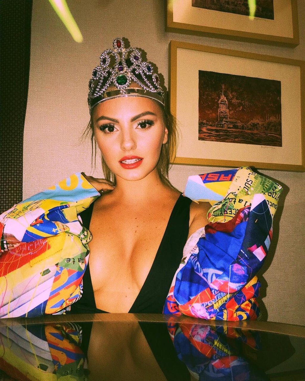 Alexandra Stan adicionou algumas fotos sensuais no Instagram, 09/08/2018. A cantora romena de 29 anos exibiu seu belo decote usando uma coroa na Turquia. Ela é uma Rainha Incrível!