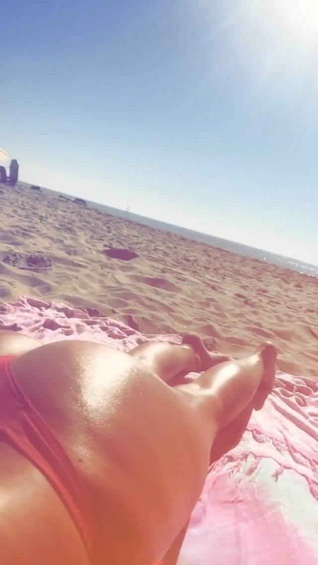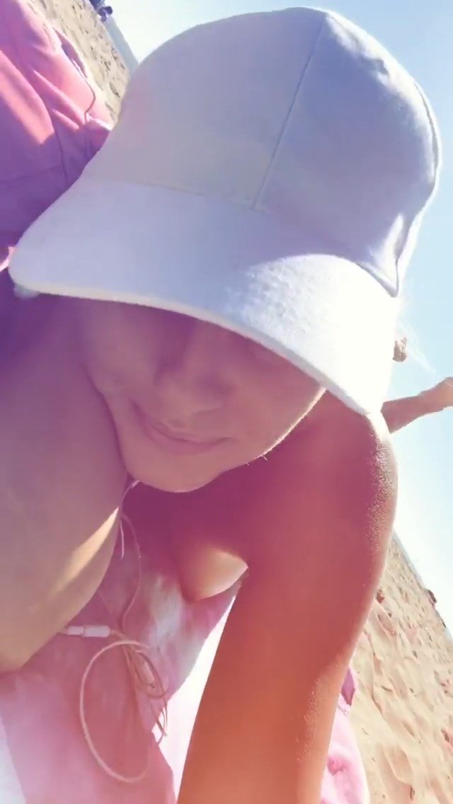Ela está na Califórnia, onde andar sem parte de cima é legal, meu amigo