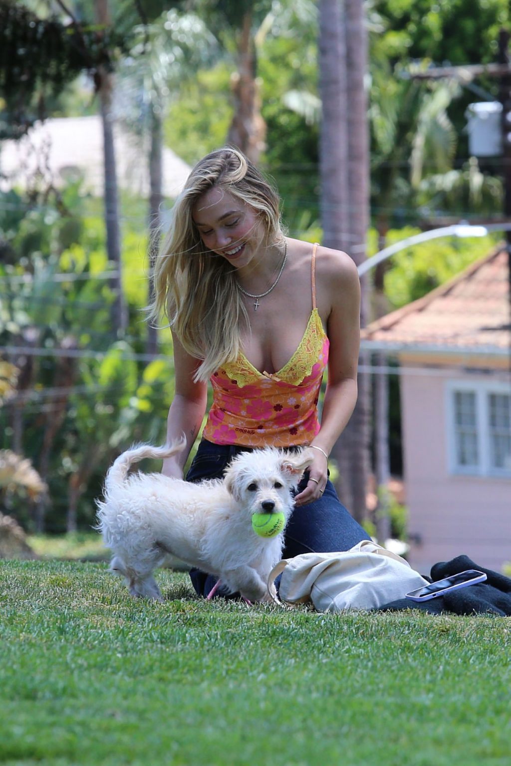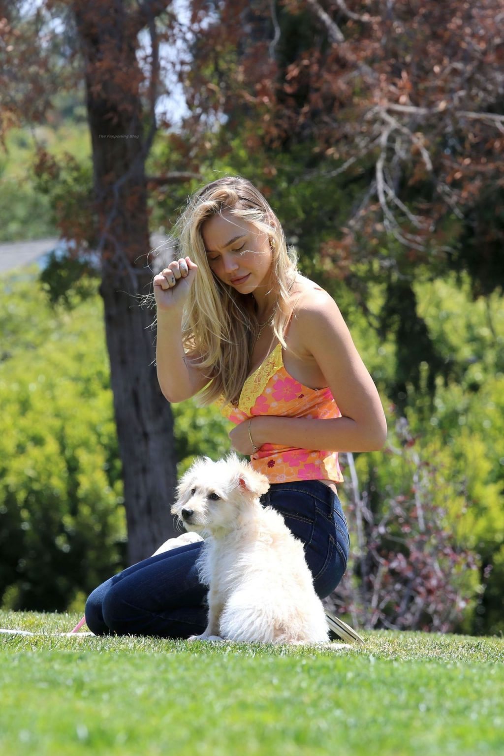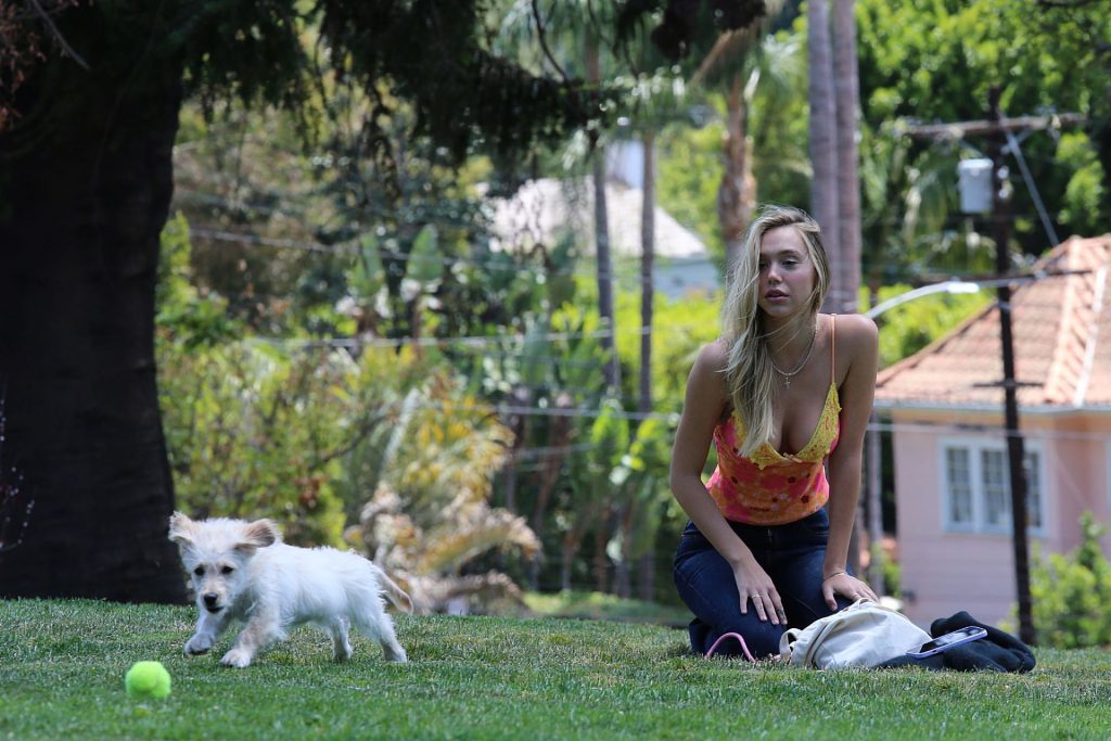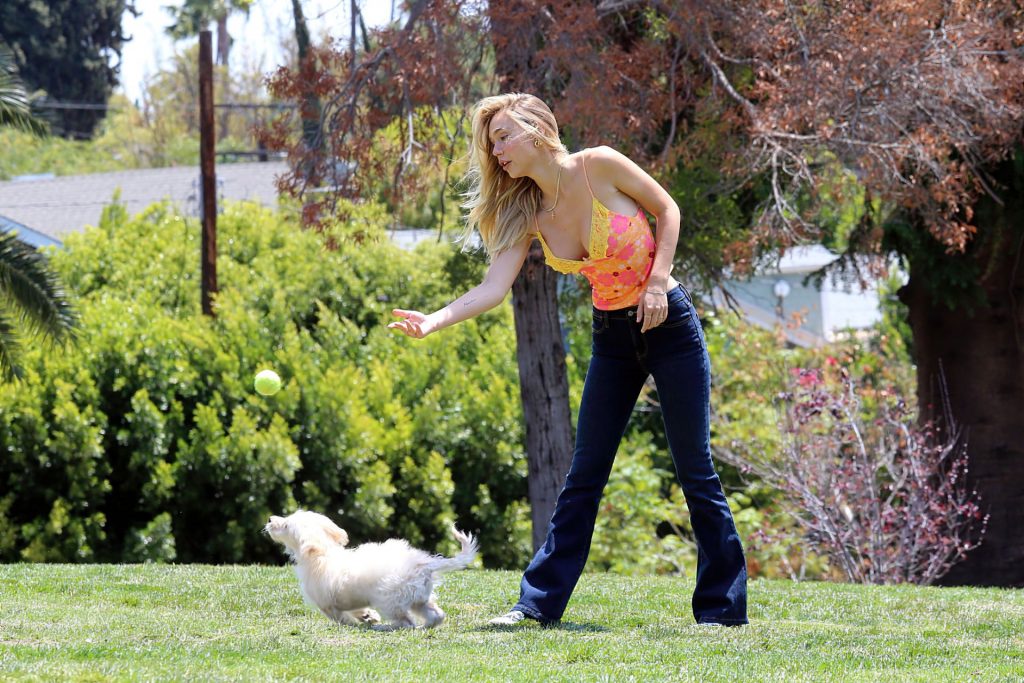Alexis Ren é vista se divertindo com seu cachorro Angel em um parque local, 28/04/2021.