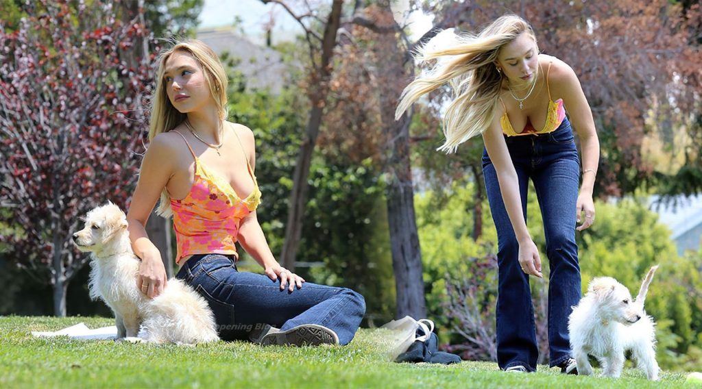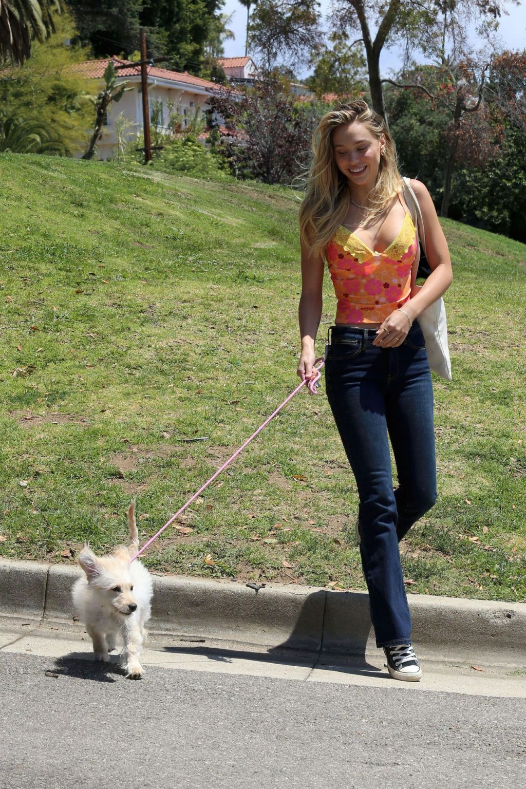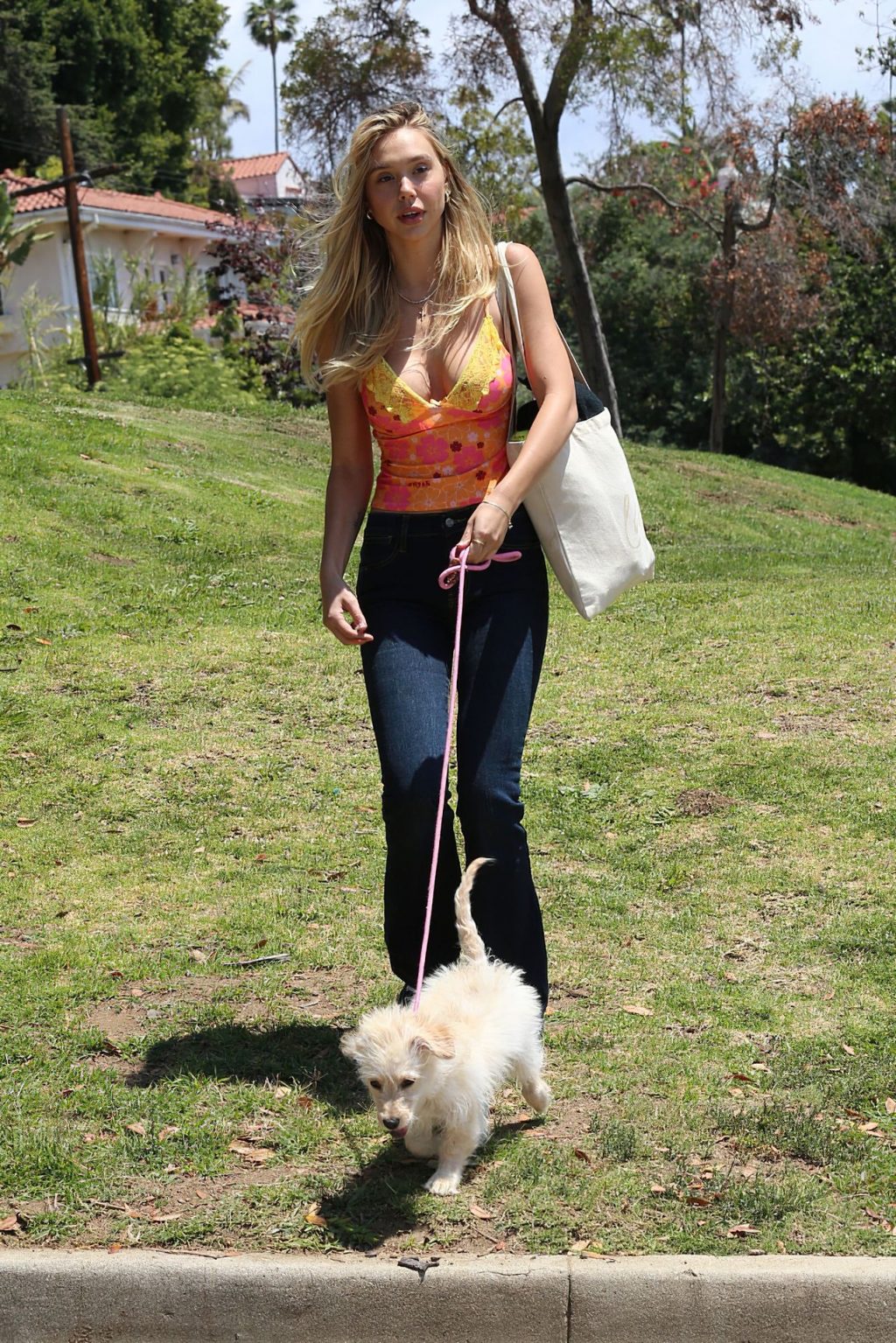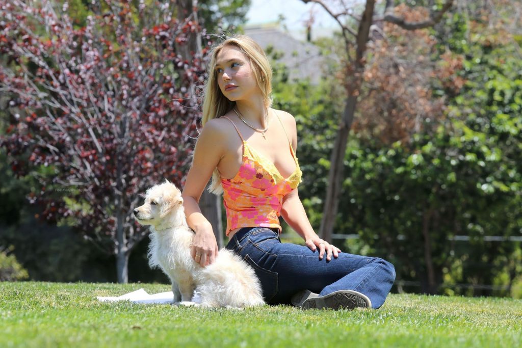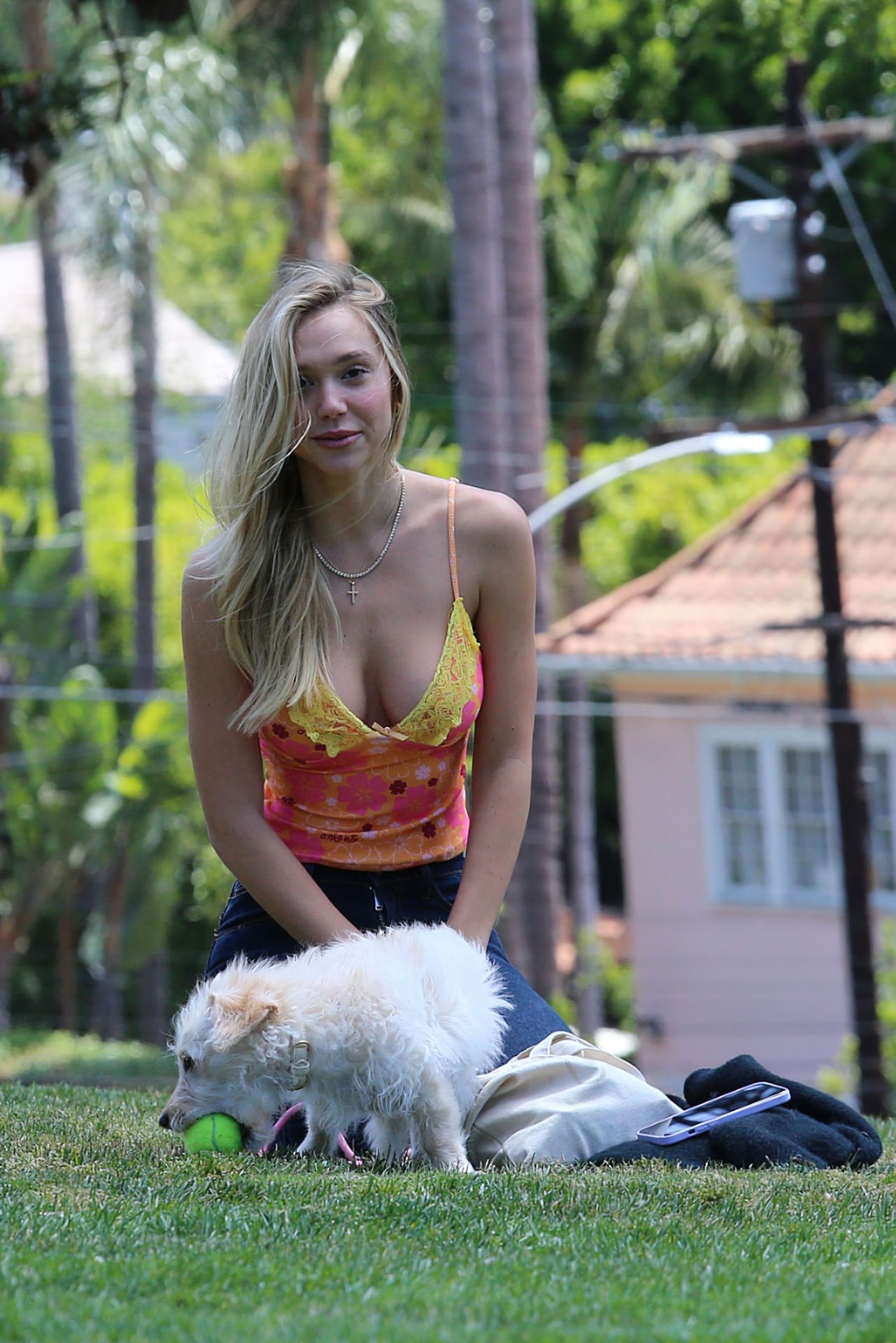 Alexis Ren é vista se divertindo com seu cachorro Angel em um parque local, 28/04/2021.