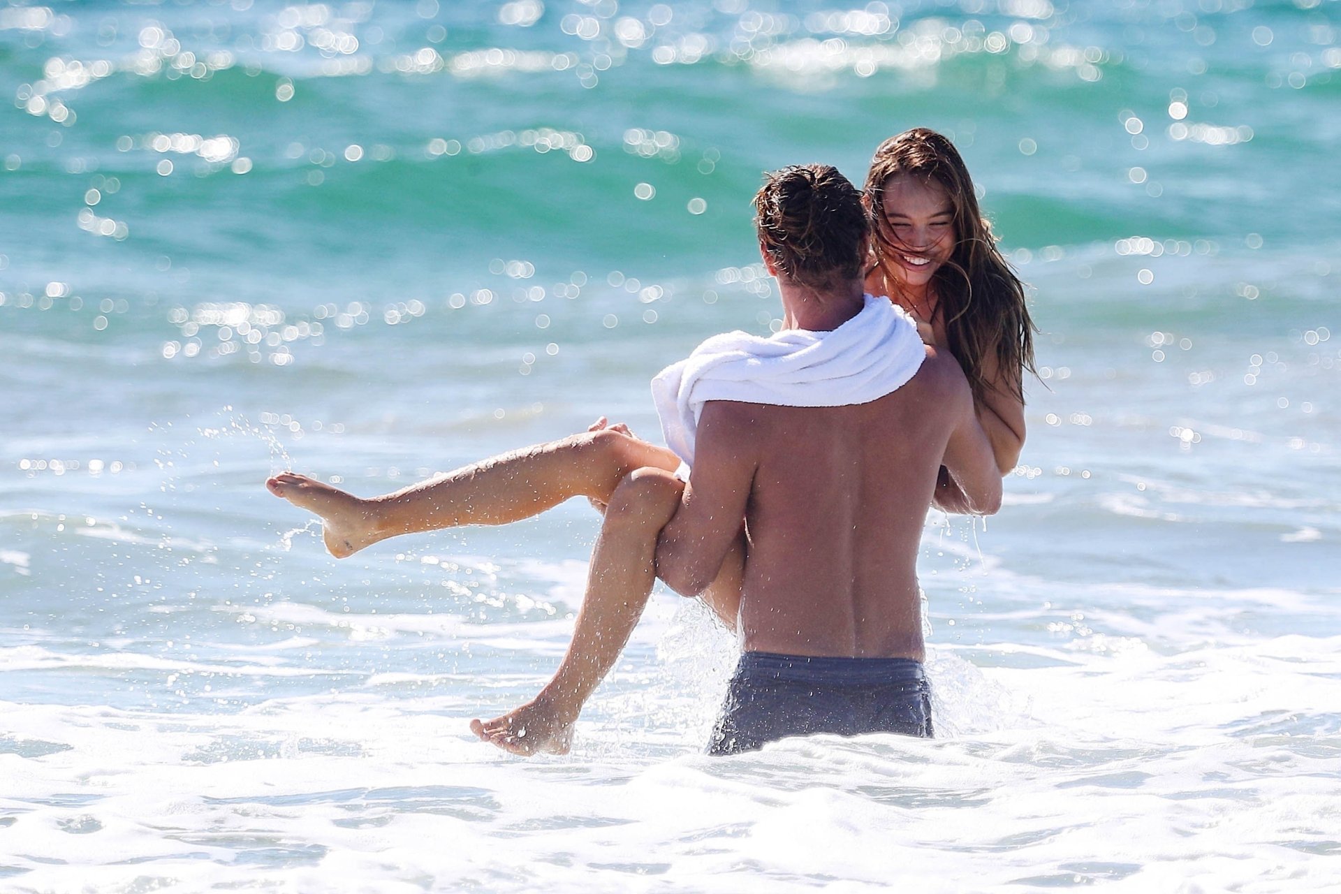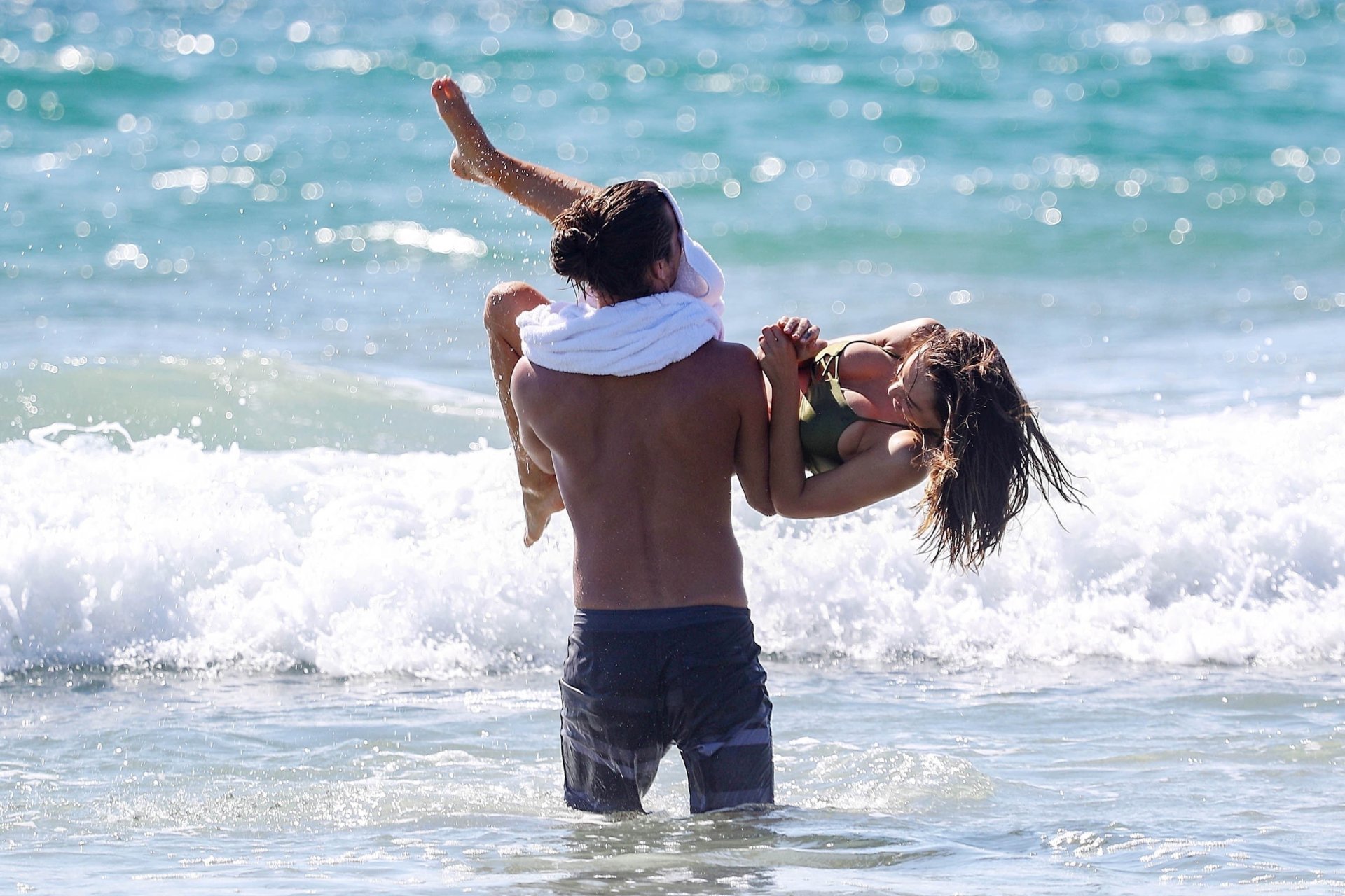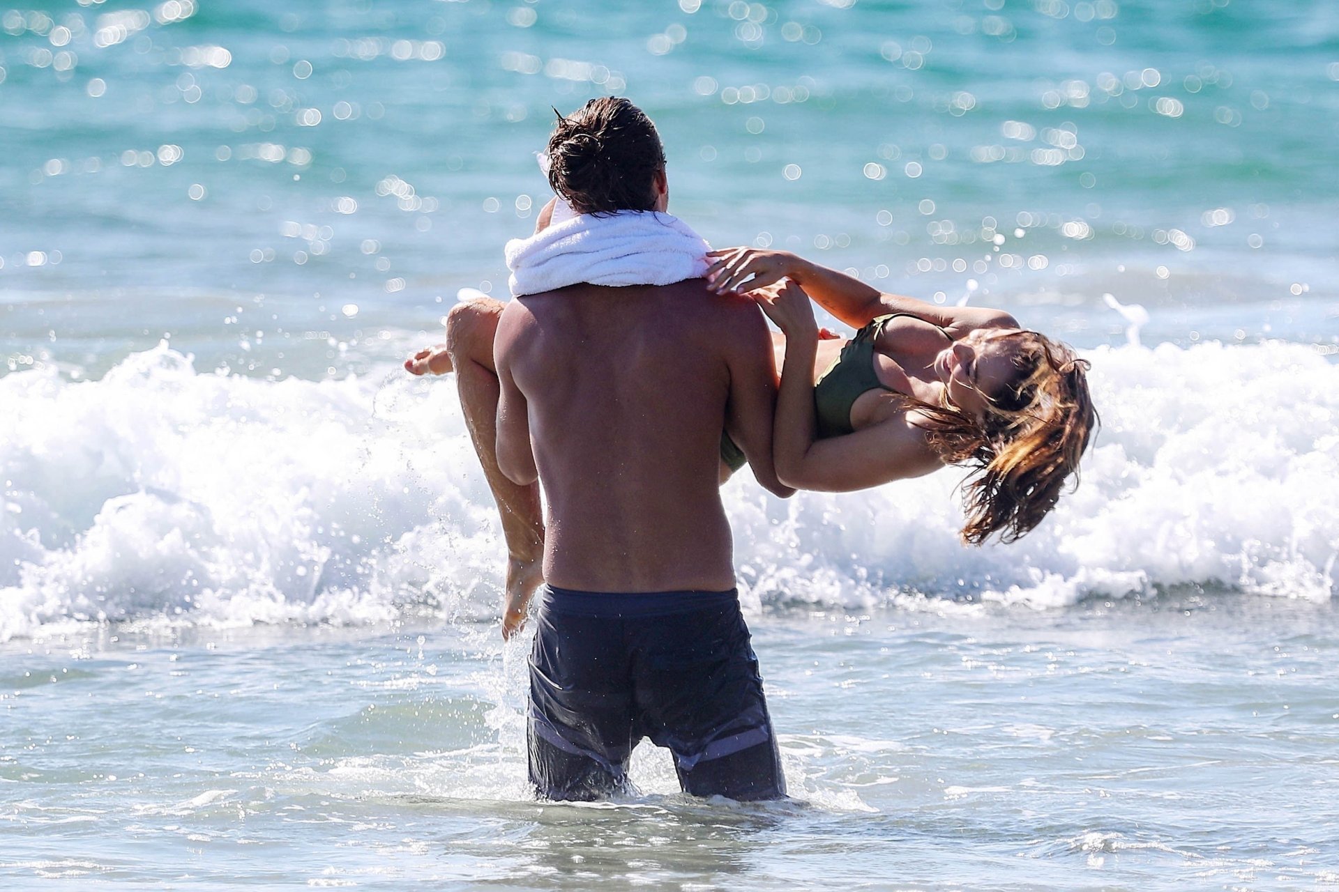 A participante de “Dancing With The Stars”, Alexis Ren, passa um dia muito feliz na praia com um homem misterioso em Santa Monica, 30/09/2018. A modelo de 21 anos exibe seu físico tonificado usando um biquíni verde.