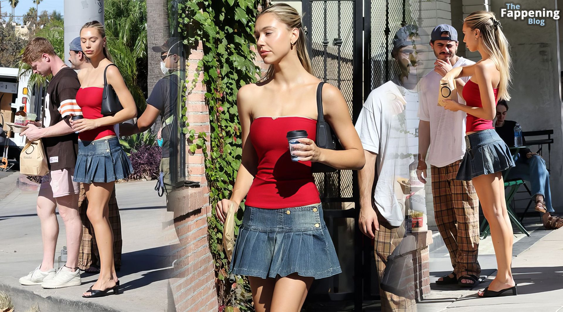 Prepare-se para ficar impressionado com o visual arrasador de Alexis Ren em Studio City, usando uma minissaia e um top tomara que caia que destacam suas pernas incríveis e seus seios quentes.