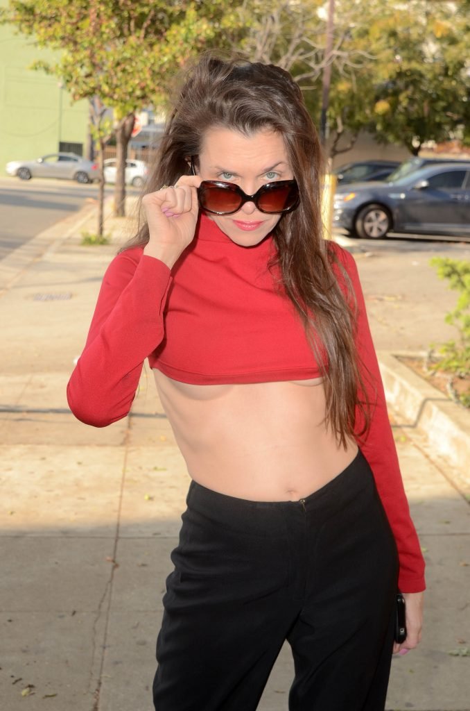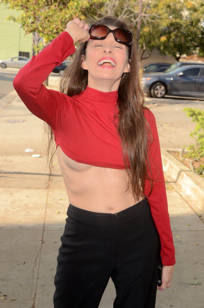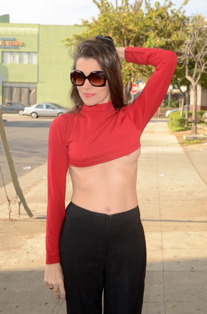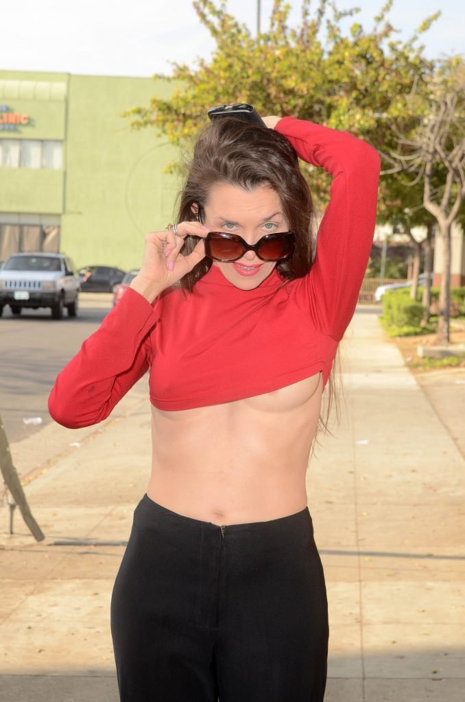 Alicia Arden foi vista em Hollywood usando uma camisa ousada com under-boob, 11/06/2017. Alicia Arden é uma atriz americana (General Hospital, Baywatch). Idade: 48.