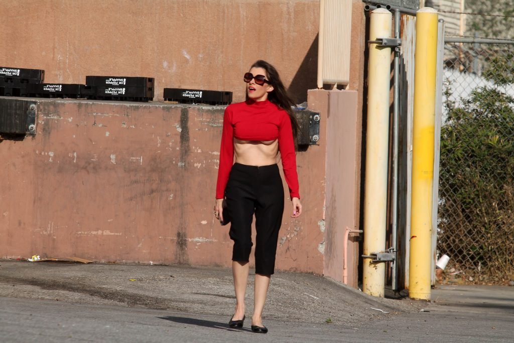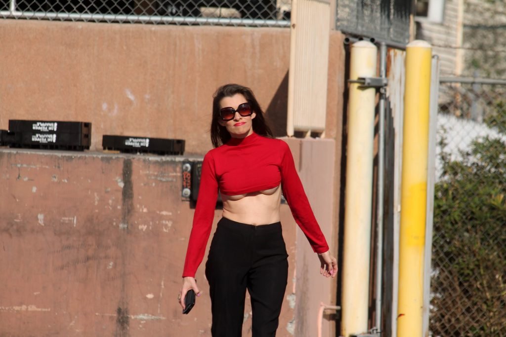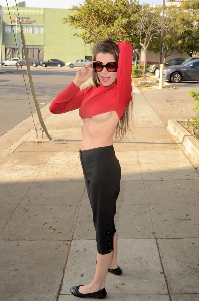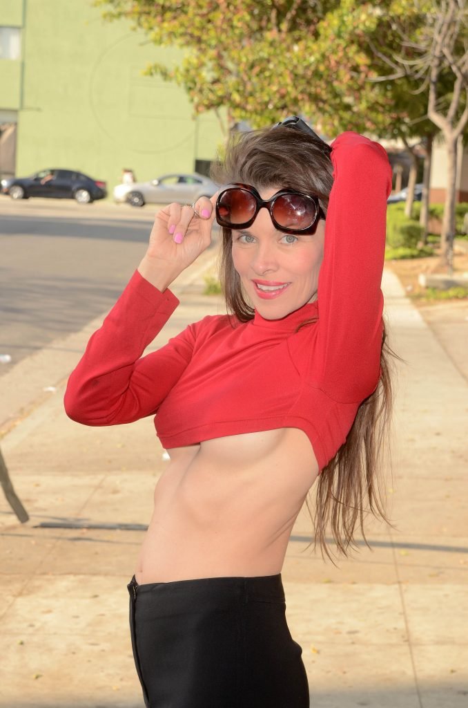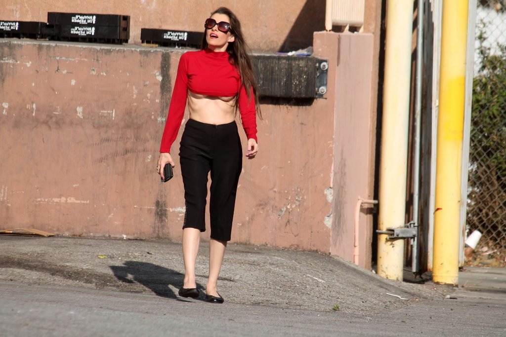 Alicia Arden foi vista em Hollywood usando uma camisa ousada com under-boob, 11/06/2017. Alicia Arden é uma atriz americana (General Hospital, Baywatch). Idade: 48.