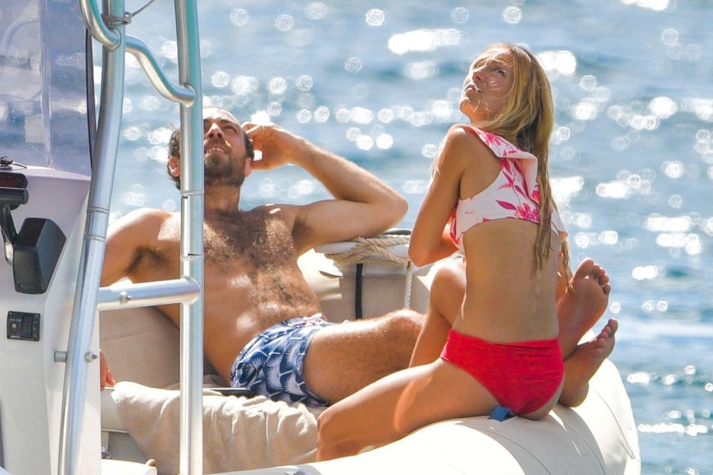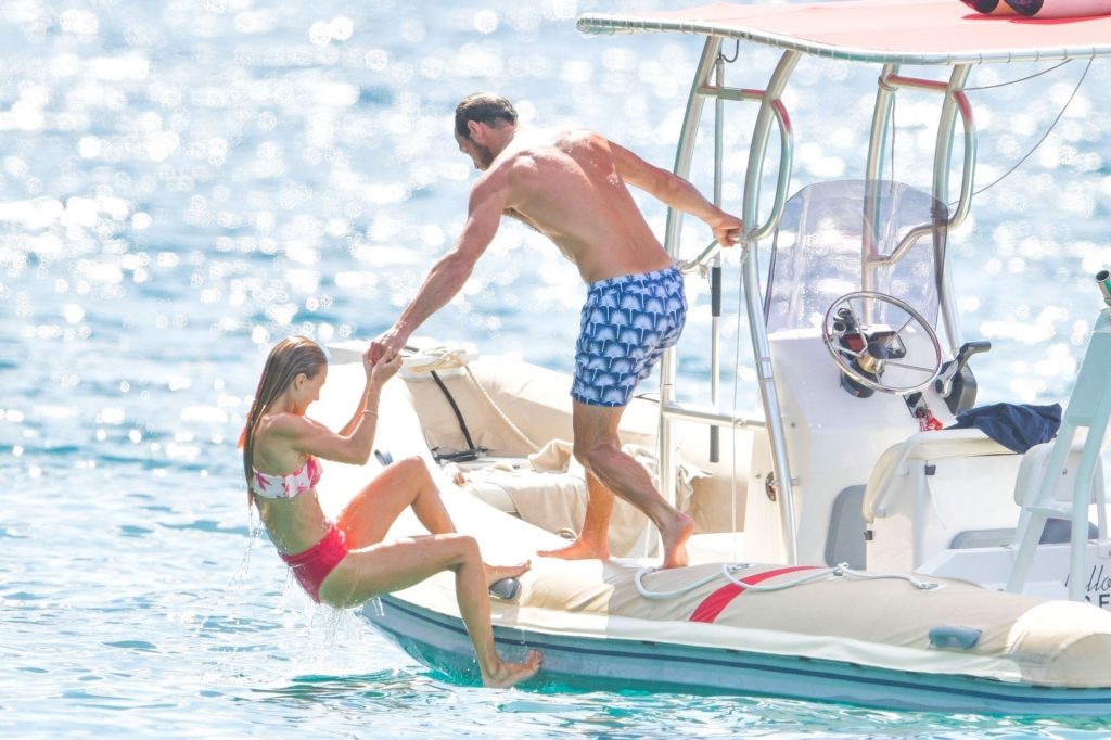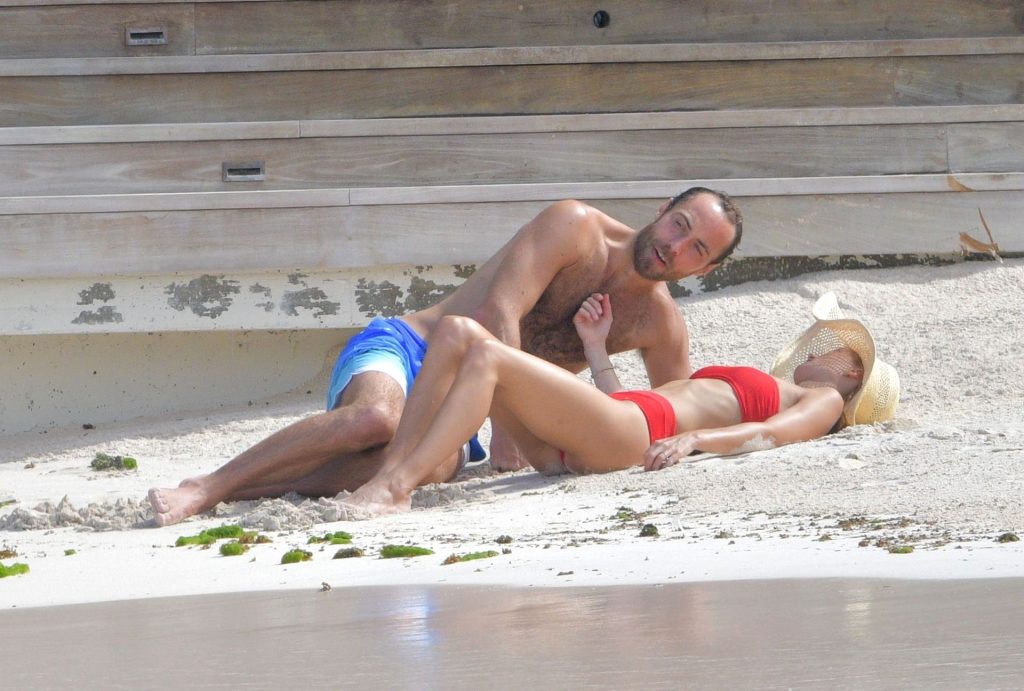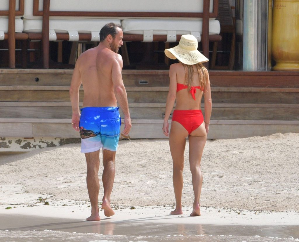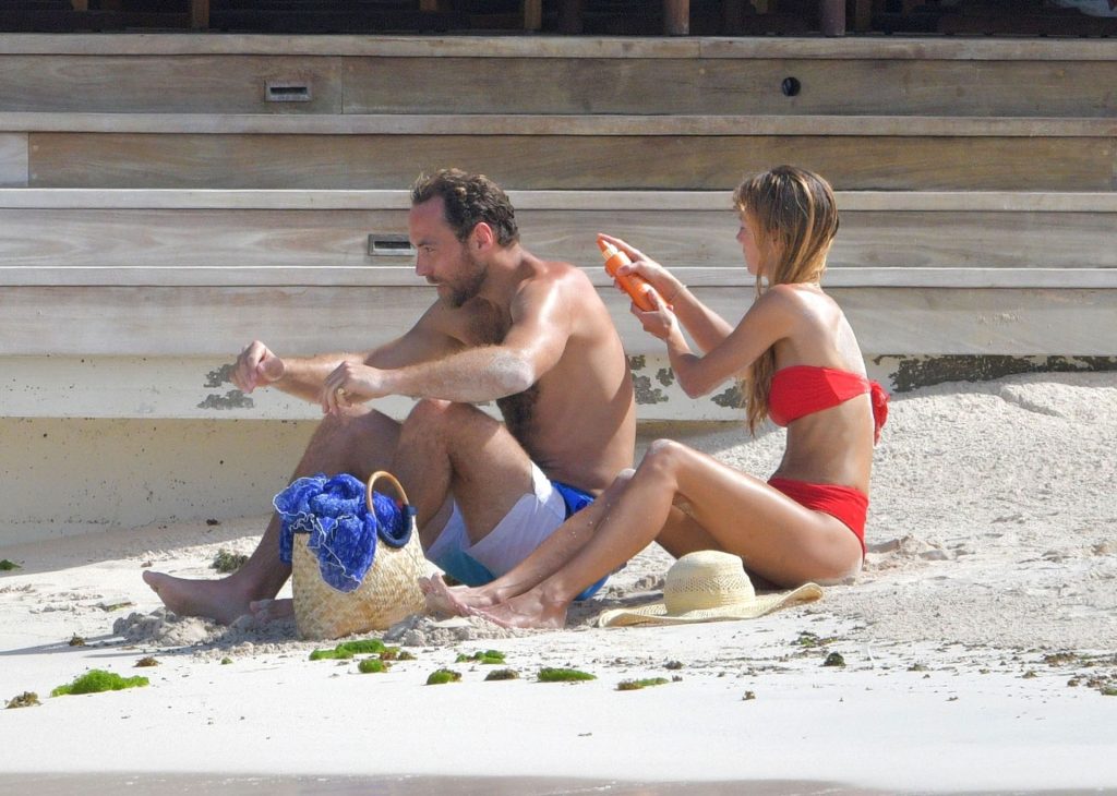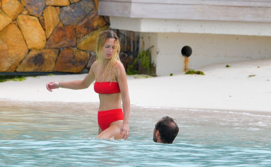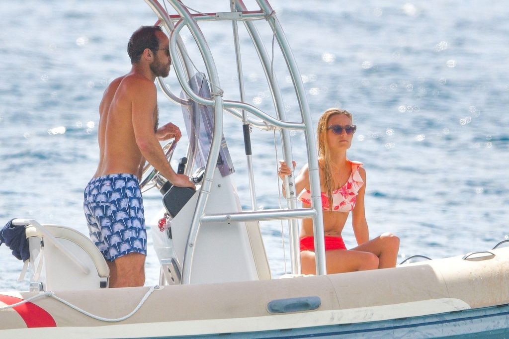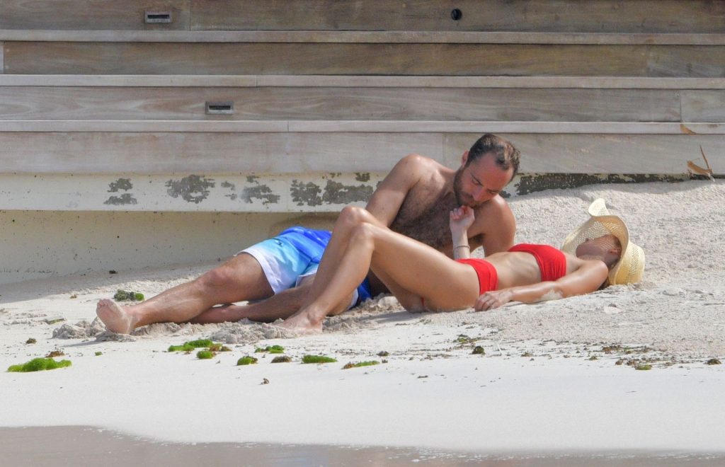 The couple looked very much in love as they chilled around their idyllic setting holding hands and they took a walk on the beach and a dip in the sea.