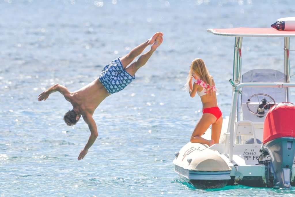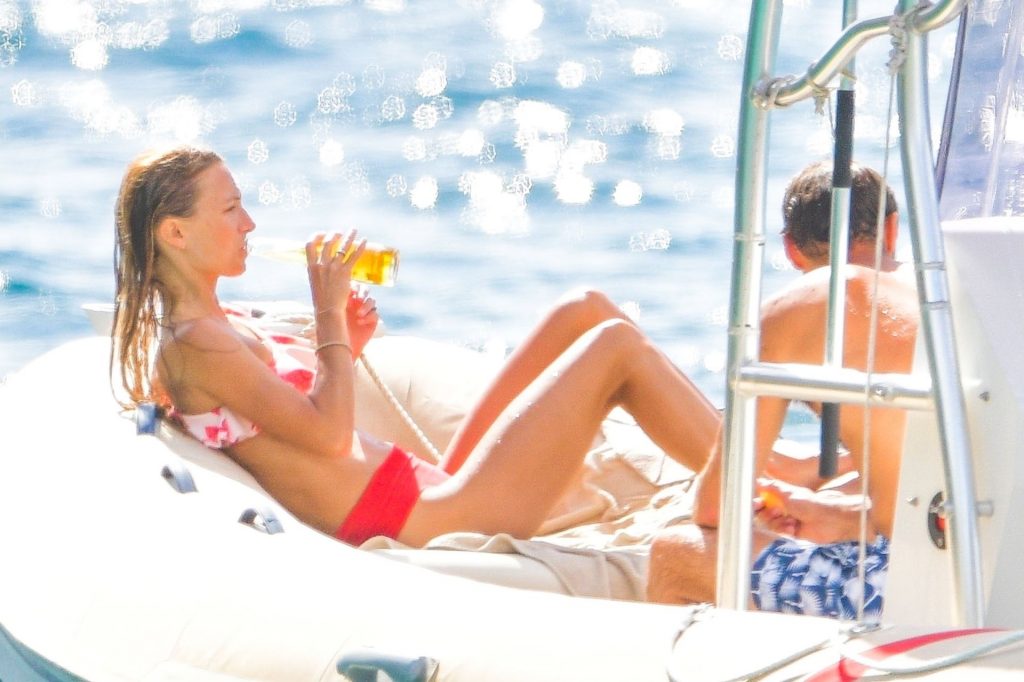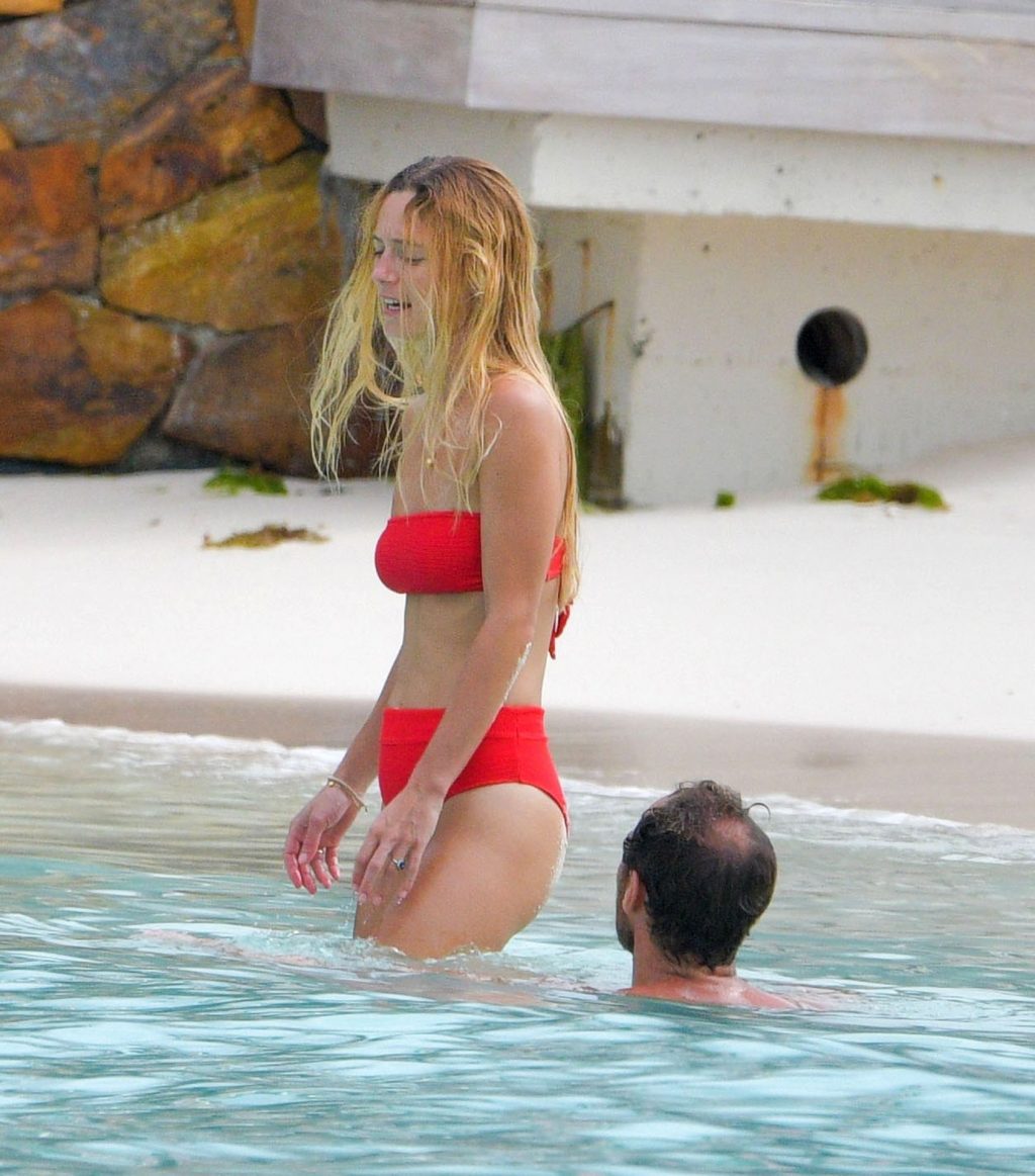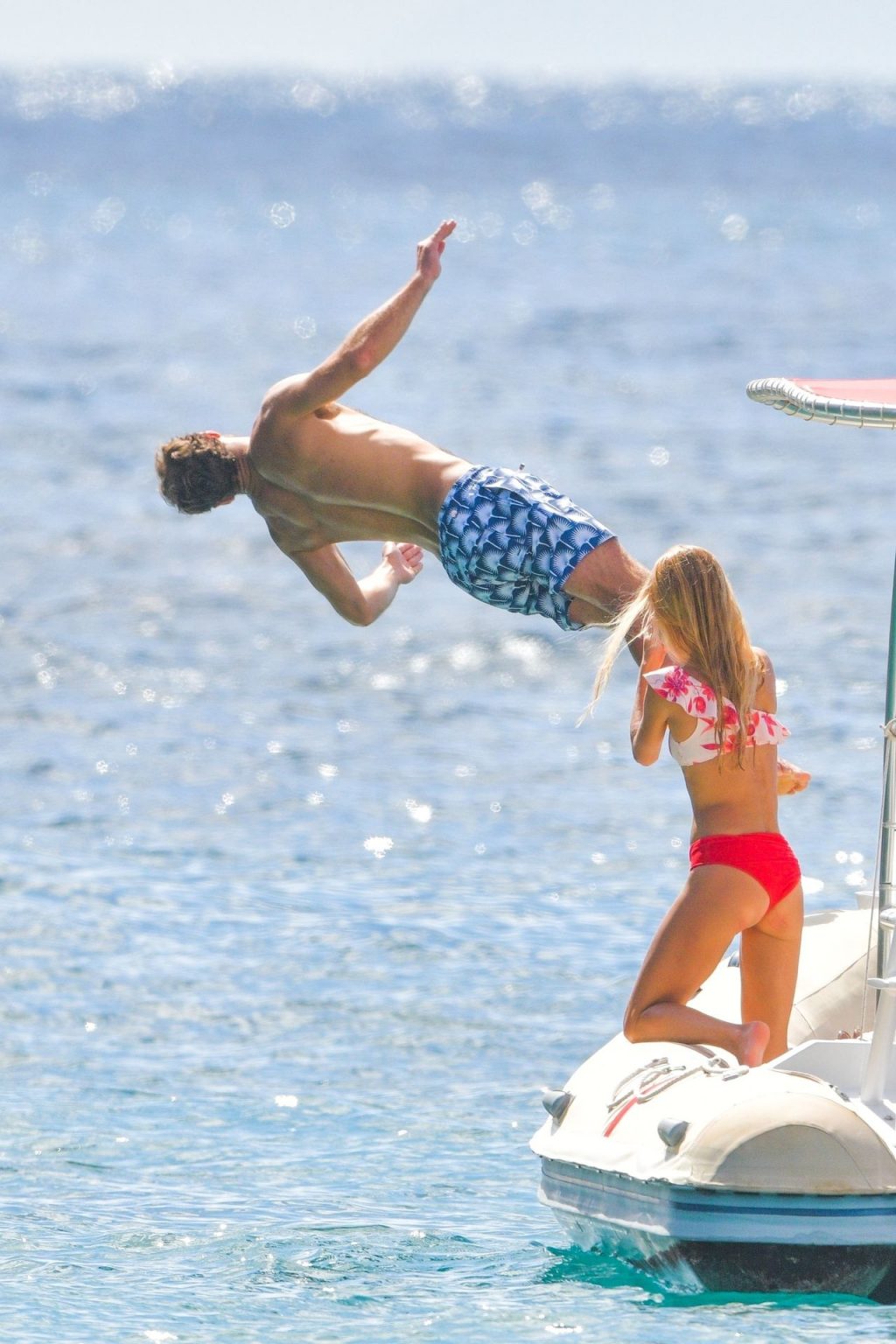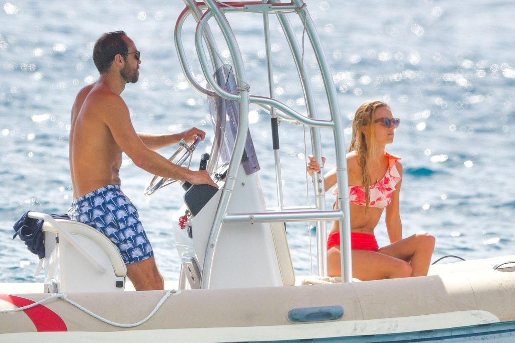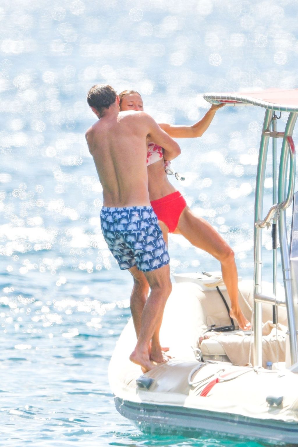 The couple looked very much in love as they chilled around their idyllic setting holding hands and they took a walk on the beach and a dip in the sea.