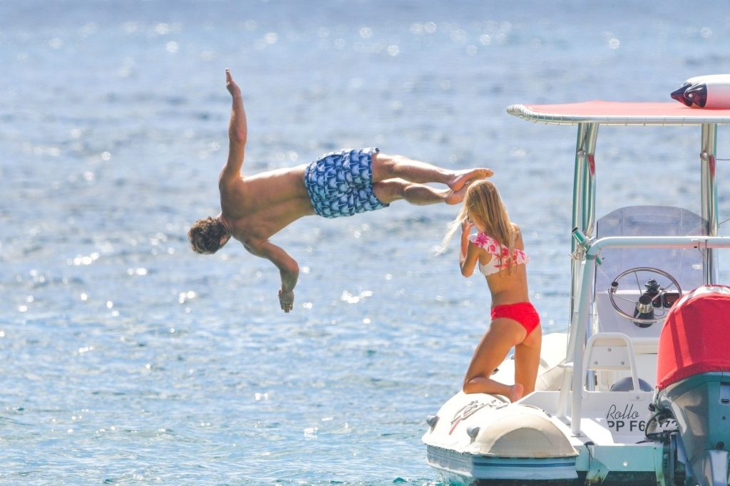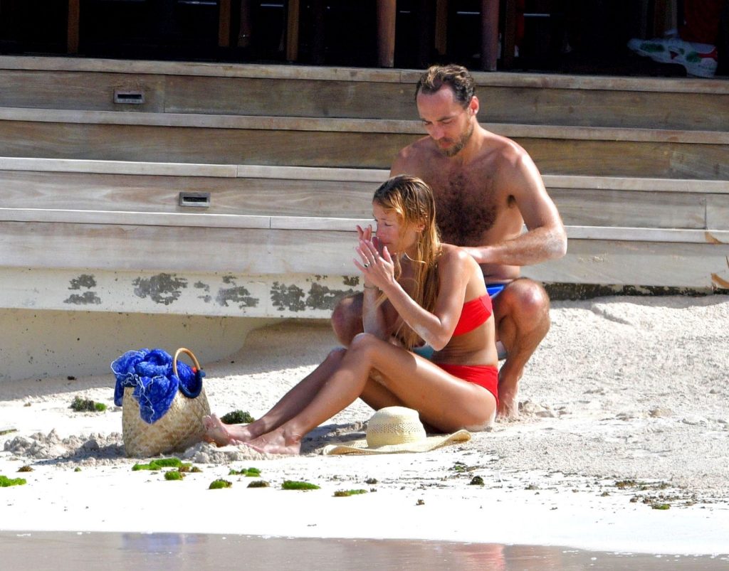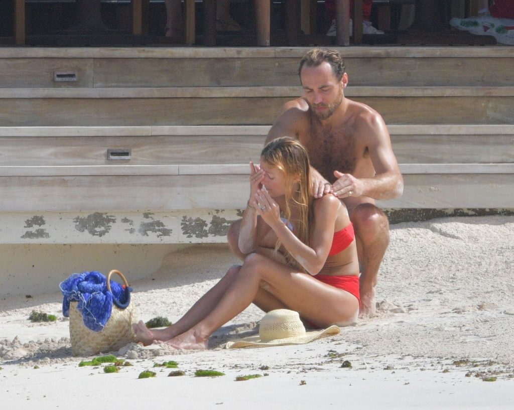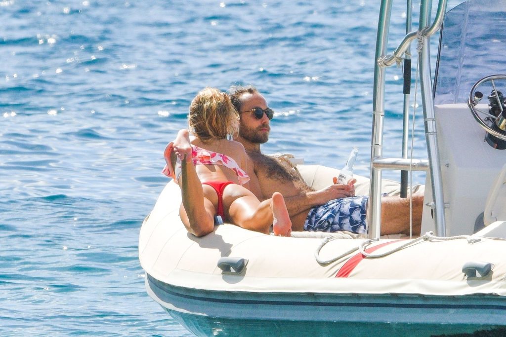James Middleton e Alizée Thevenet pareciam estar aproveitando o sol e fazendo um piquenique em um barco em St. Barth, França, 01/05/2020.